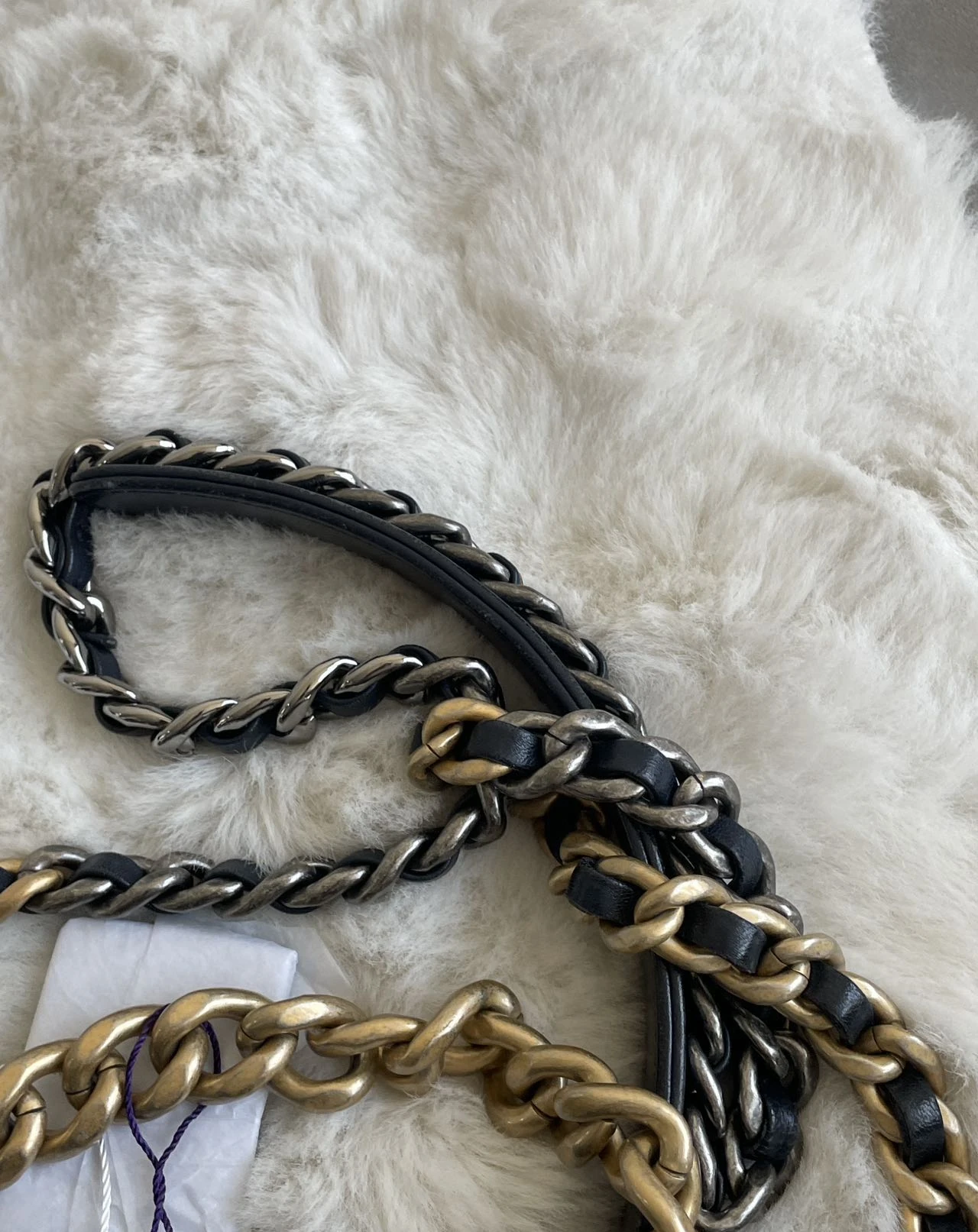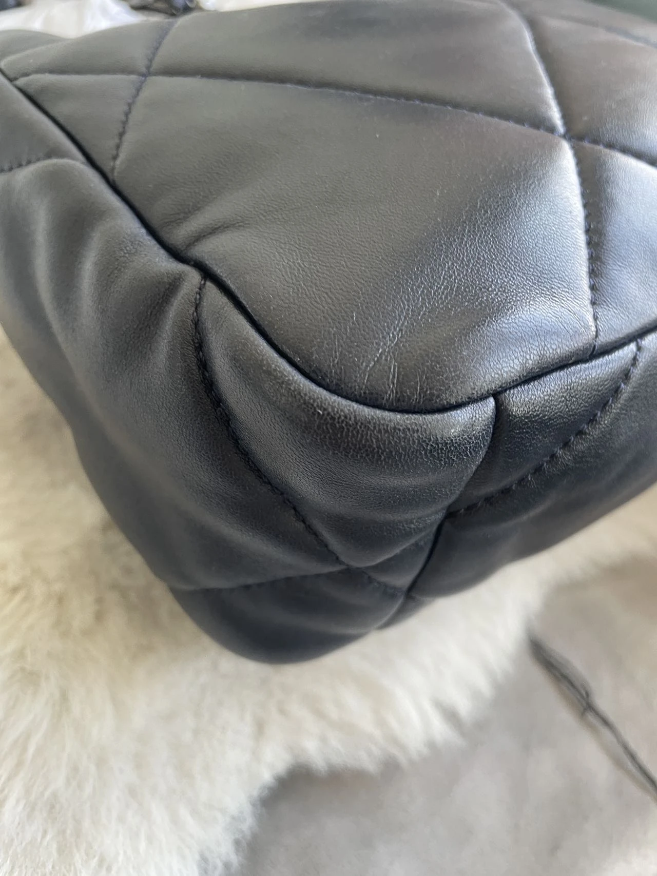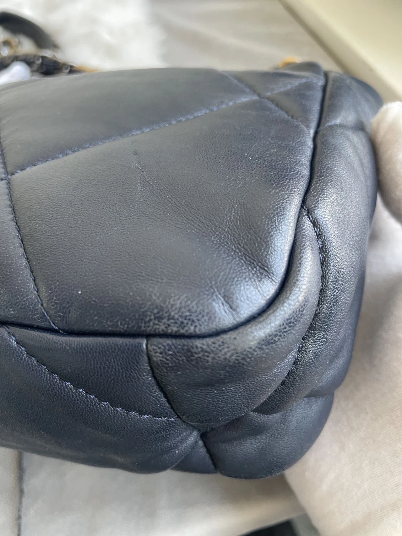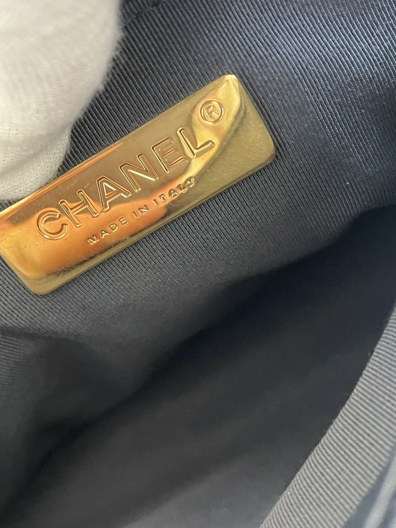 CHANEL Small 19 Navy Blue Lambskin Handbag features a deep navy blue lambskin that gives off a soft, luxurious sheen. This compact yet chic bag retains the iconic quilted pattern while embodying a modern, effortless elegance.