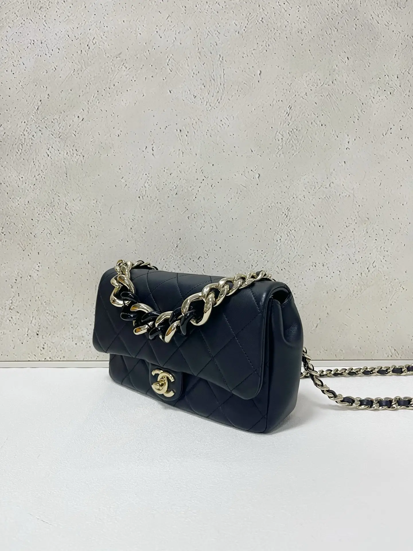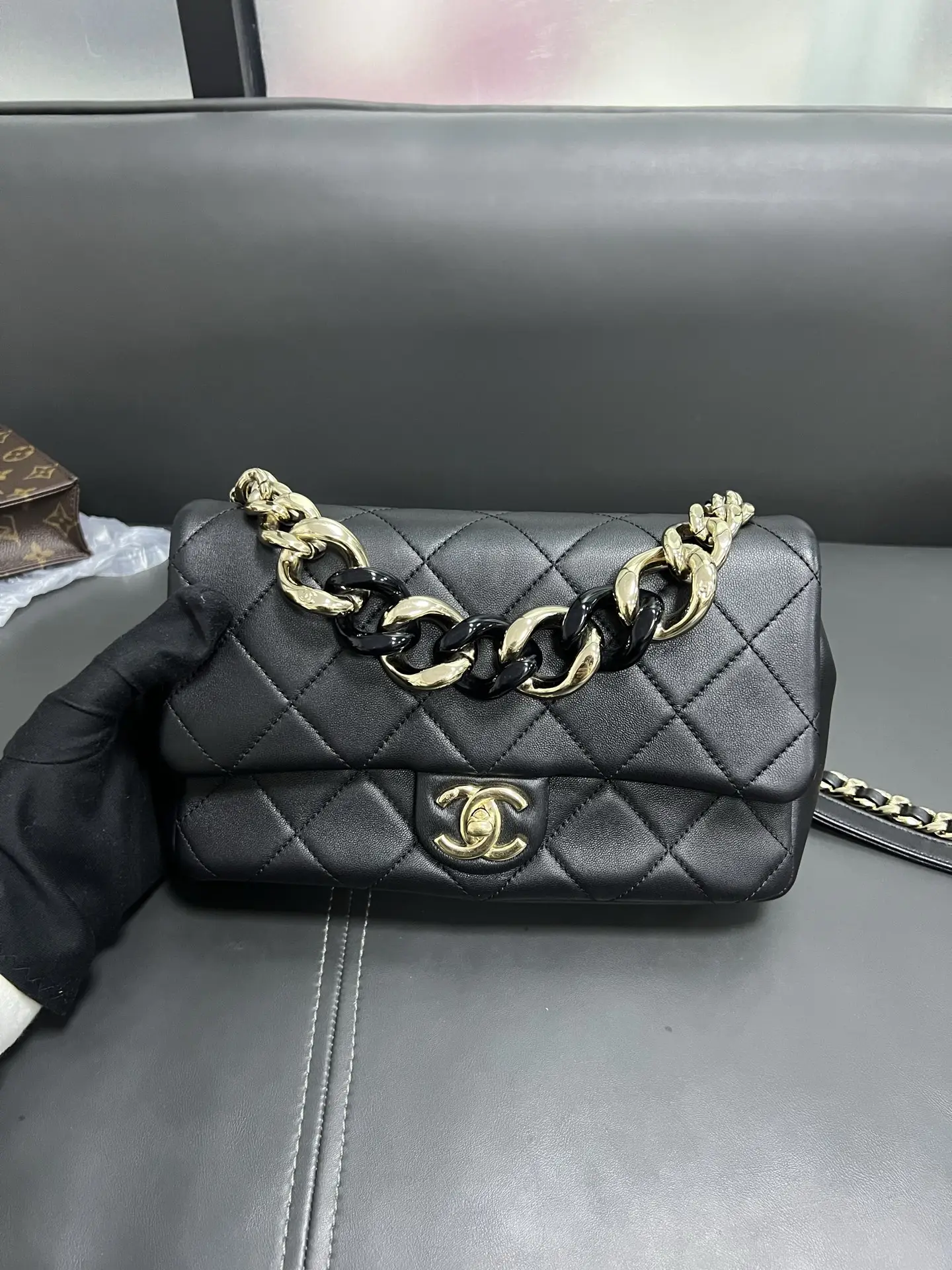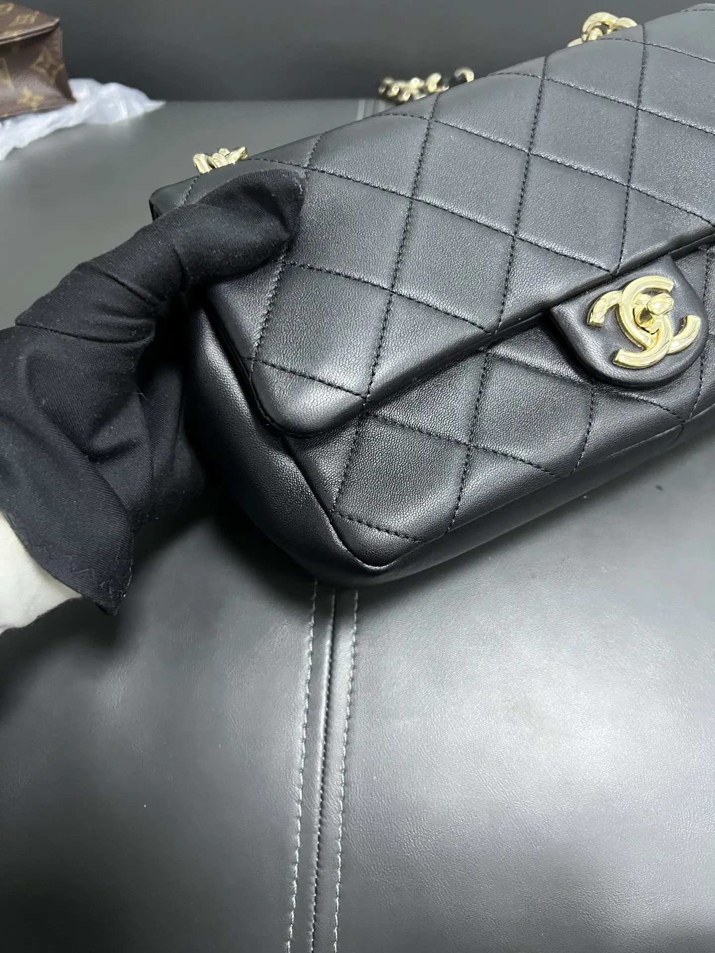 Be the first to review “CHANEL Small Classic Flap Bag Black Lambskin Elegant Chain Single Flap Bag”