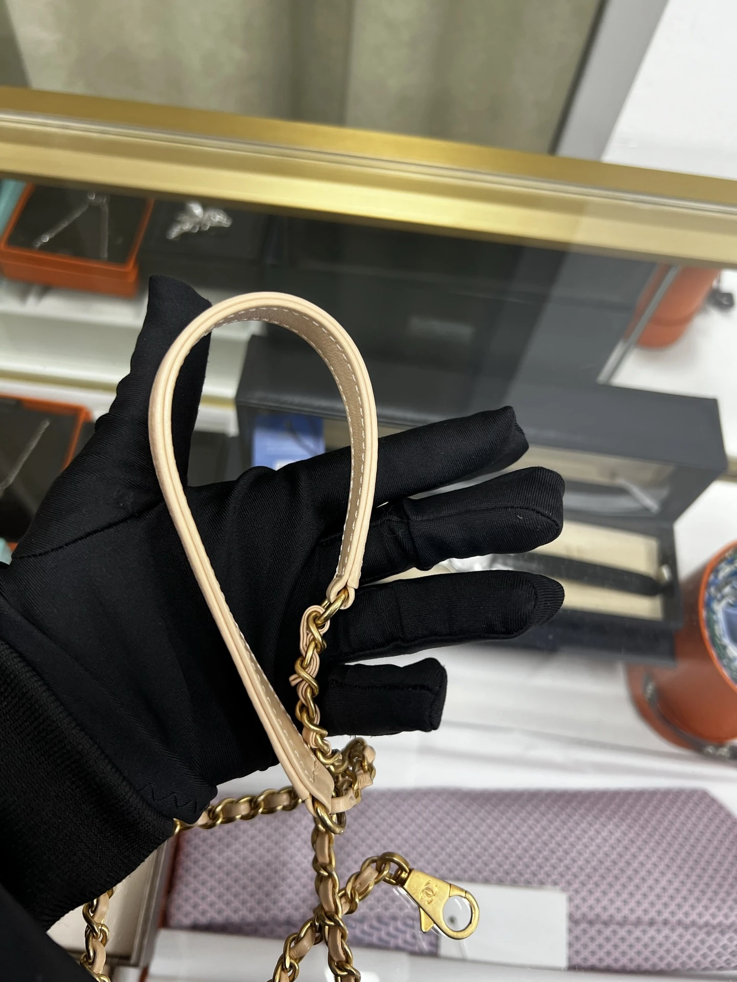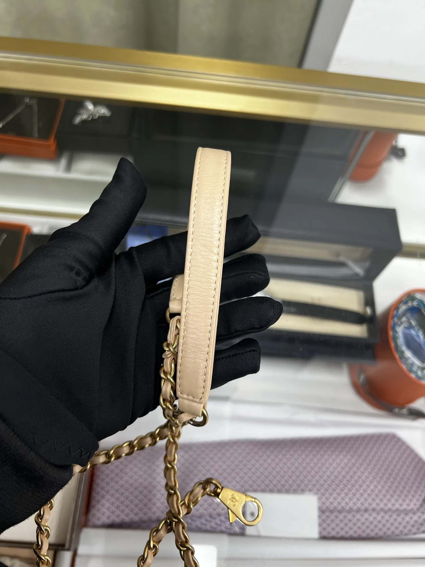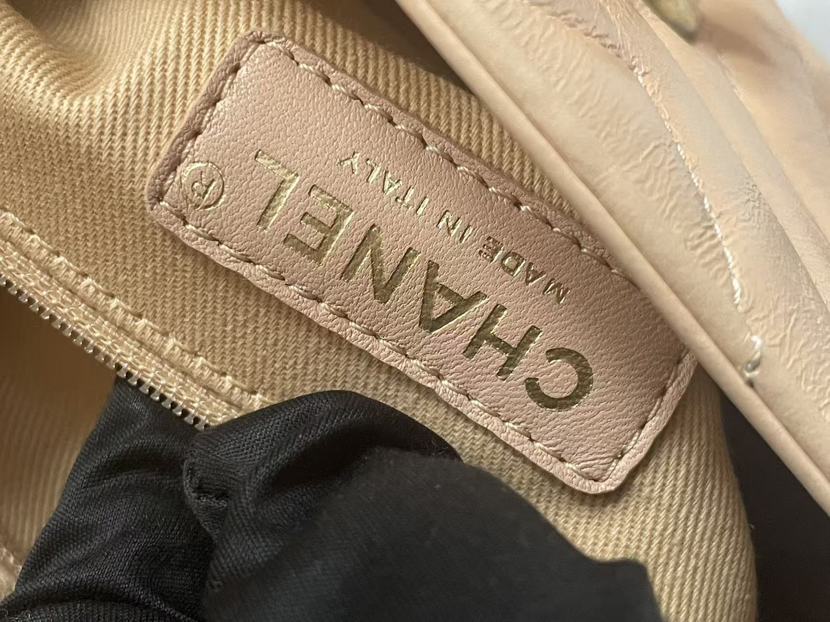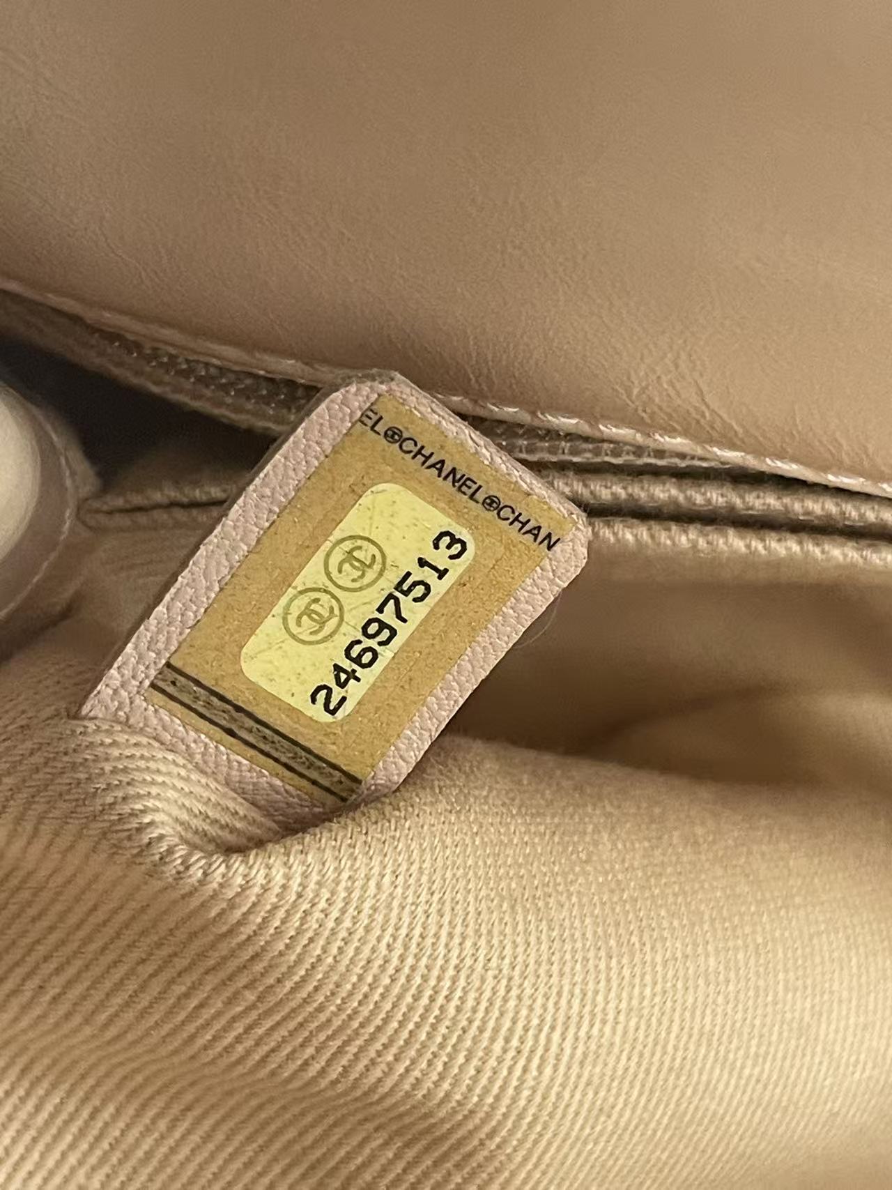 This Chanel Coco Handle bag is crafted in elegant beige/nude chevron quilted leather with gold hardware. Featuring a structured silhouette, signature CC turn lock, and top handle with detachable strap, it offers timeless Chanel sophistication.