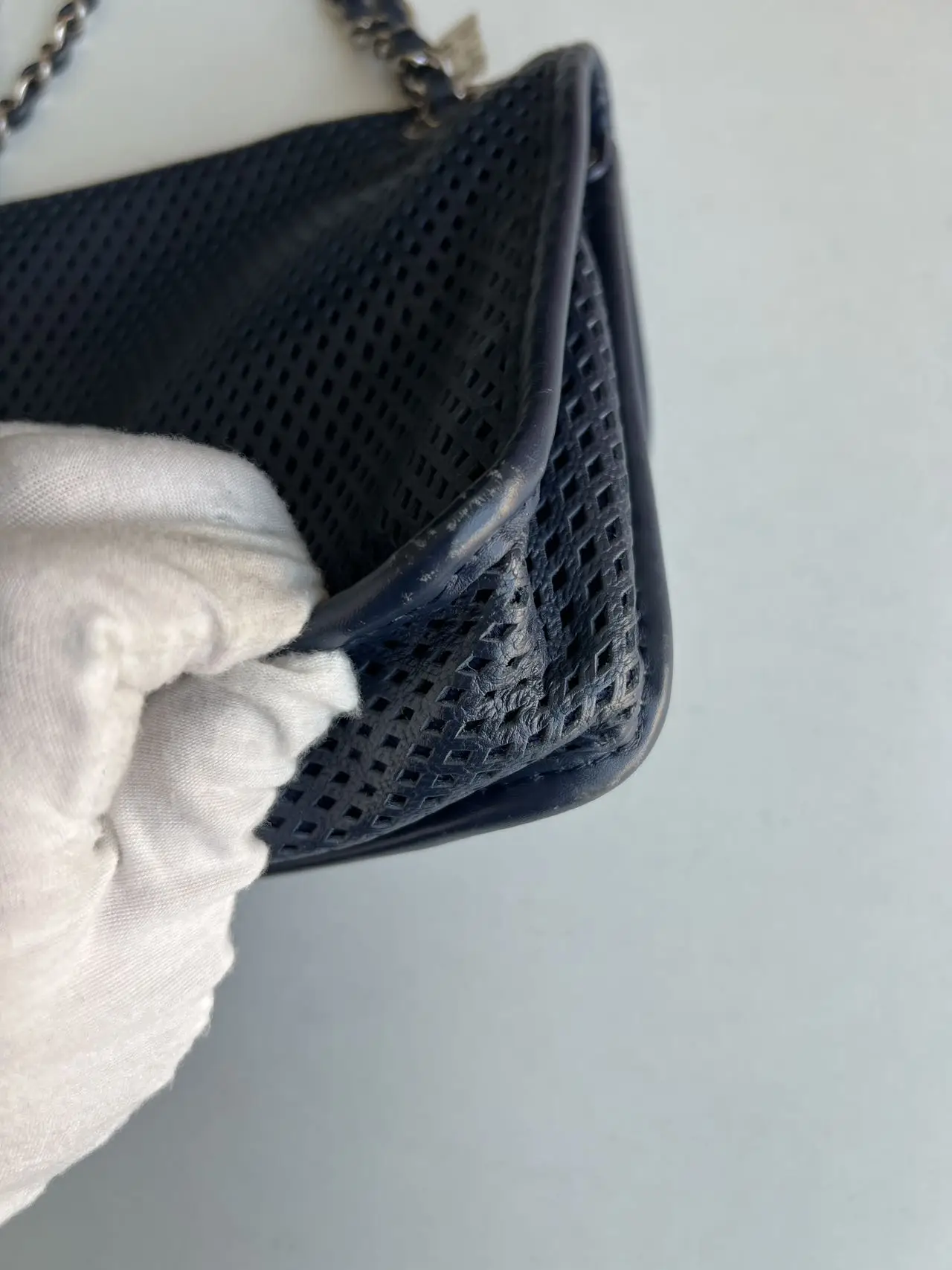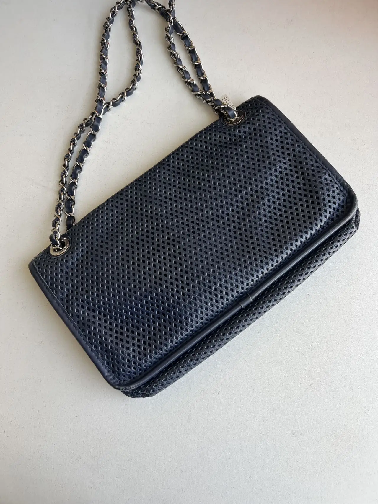 The Chanel Up In The Air Flap Bag in blue leather is a seasonal statement of modern elegance, typically featuring an innovative and structured silhouette, where crisp leather, contemporary quilting, and the iconic CC closure converge to create a fresh, architectural take on the classic flap design.