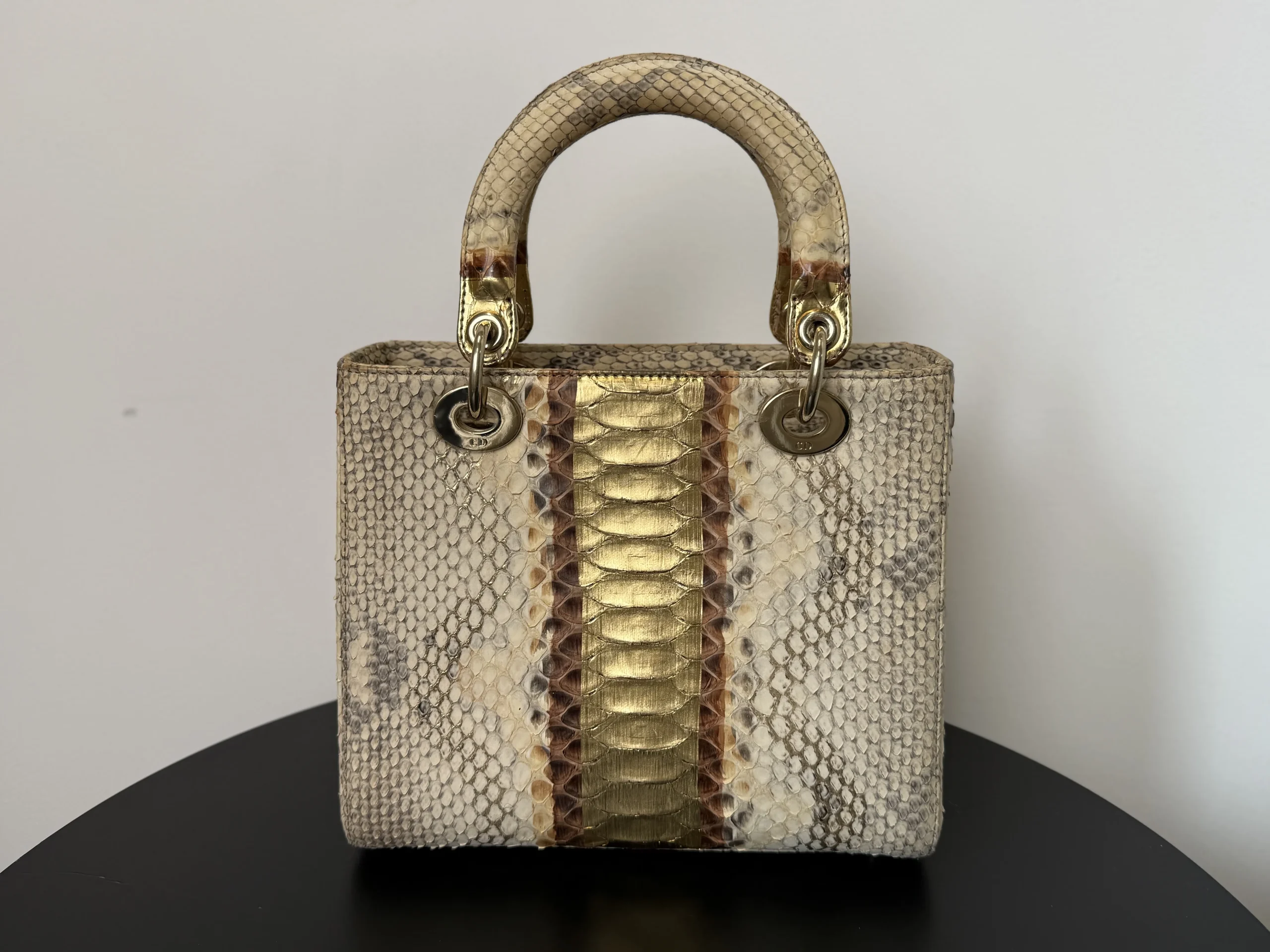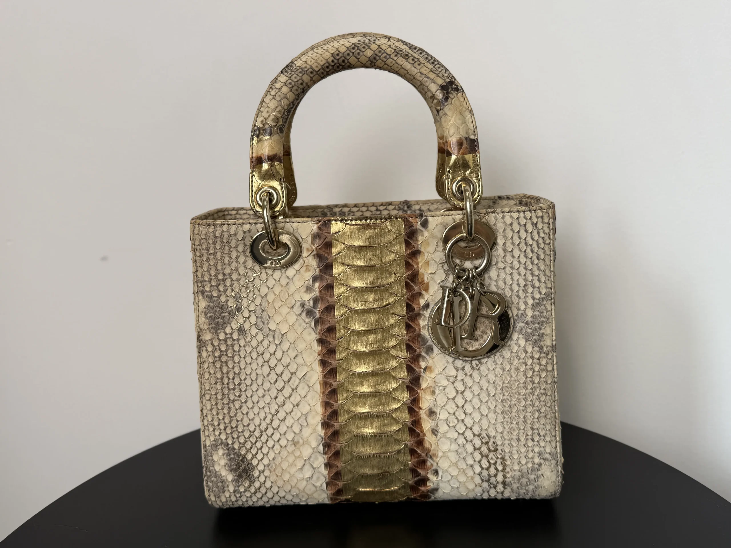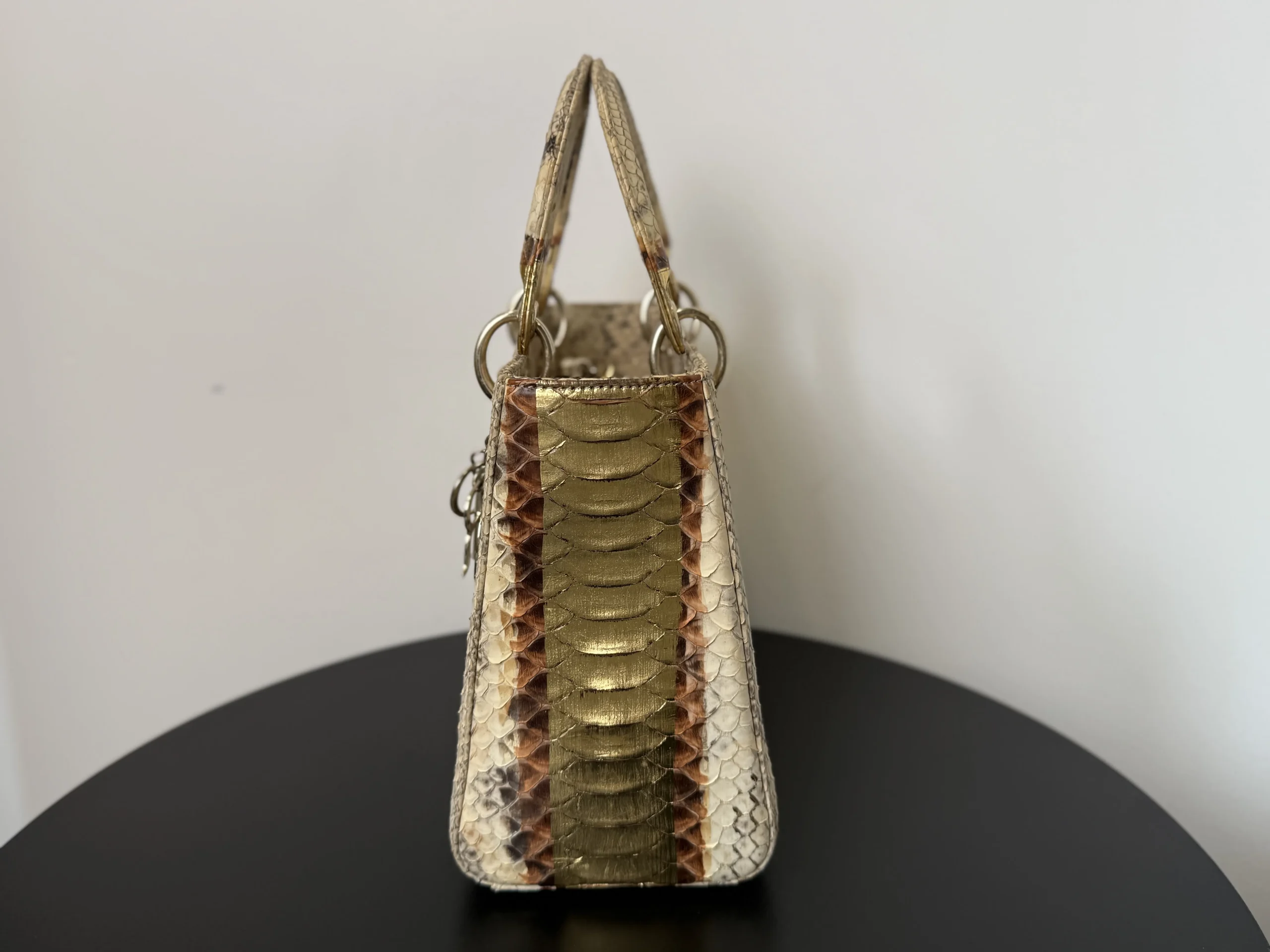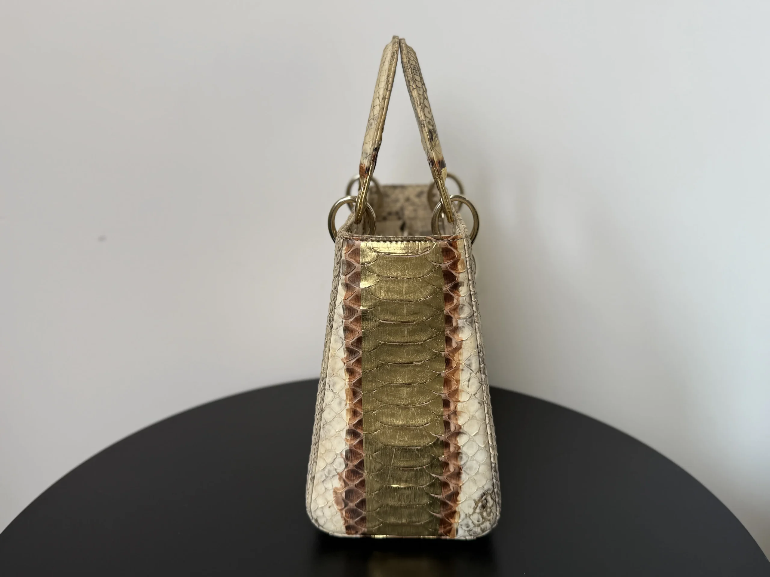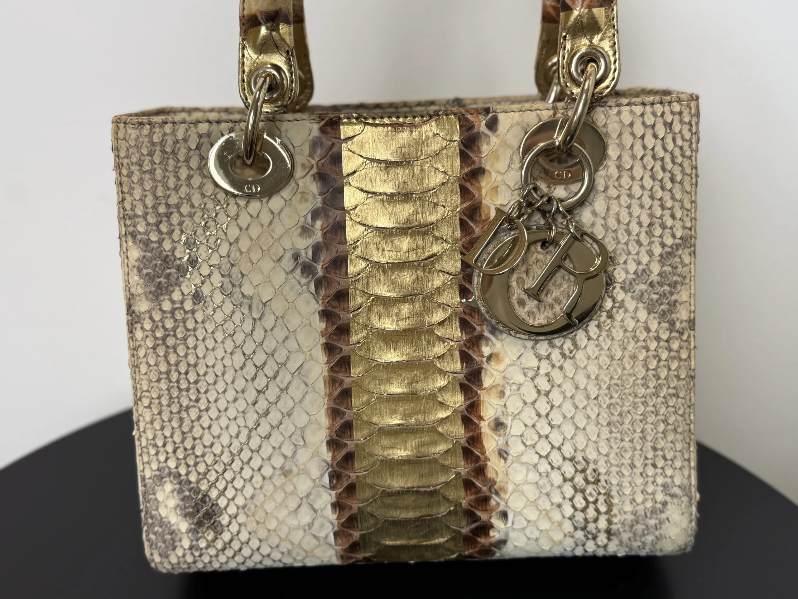 Authentic DIOR Gold Royal Python Medium Lady Dior Bag from the rare Royal Collection, crafted in luxurious exotic python leather. A highly sought-after limited edition piece, known for its refined gold tones and distinctive texture. With a DIOR boutique retail price of £10,300, this exceptional design is part of Dior’s precious exotic leather collection and is extremely difficult to source on the market. Now available at just £2,599 — offering outstanding value within the UK pre-loved market. Available at our London pre-loved luxury boutique, with viewing welcome.