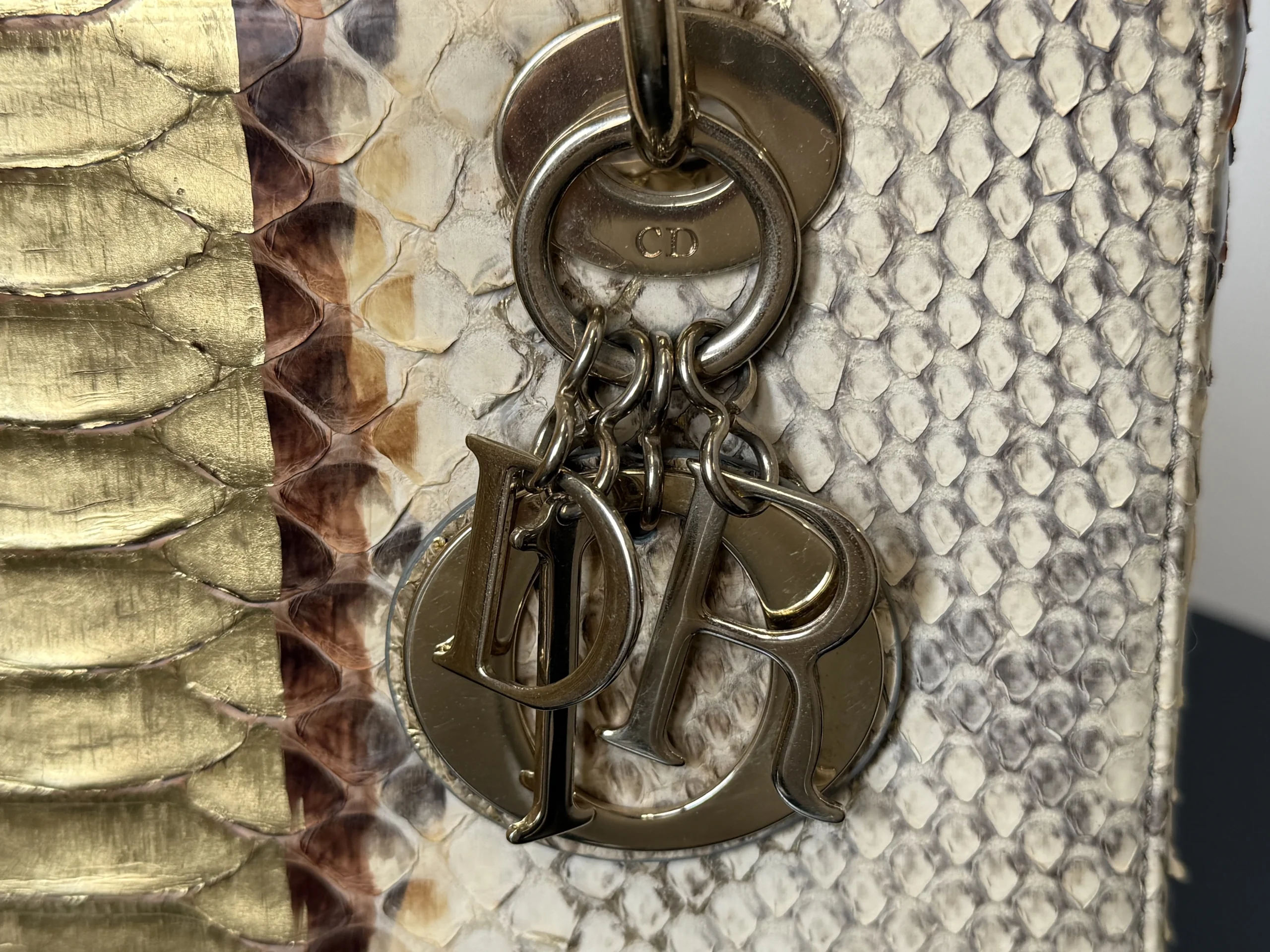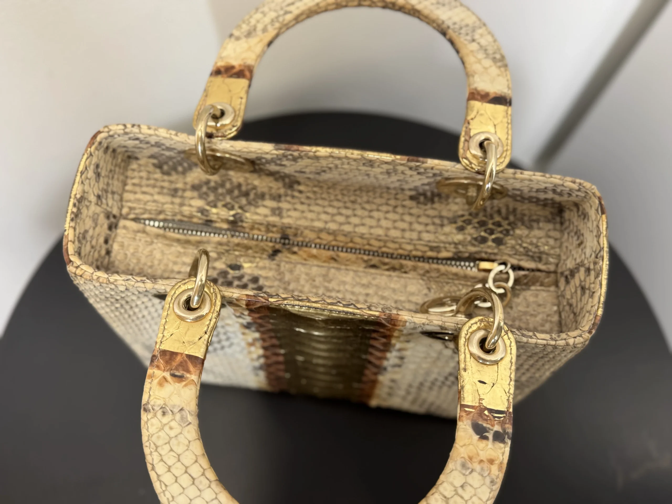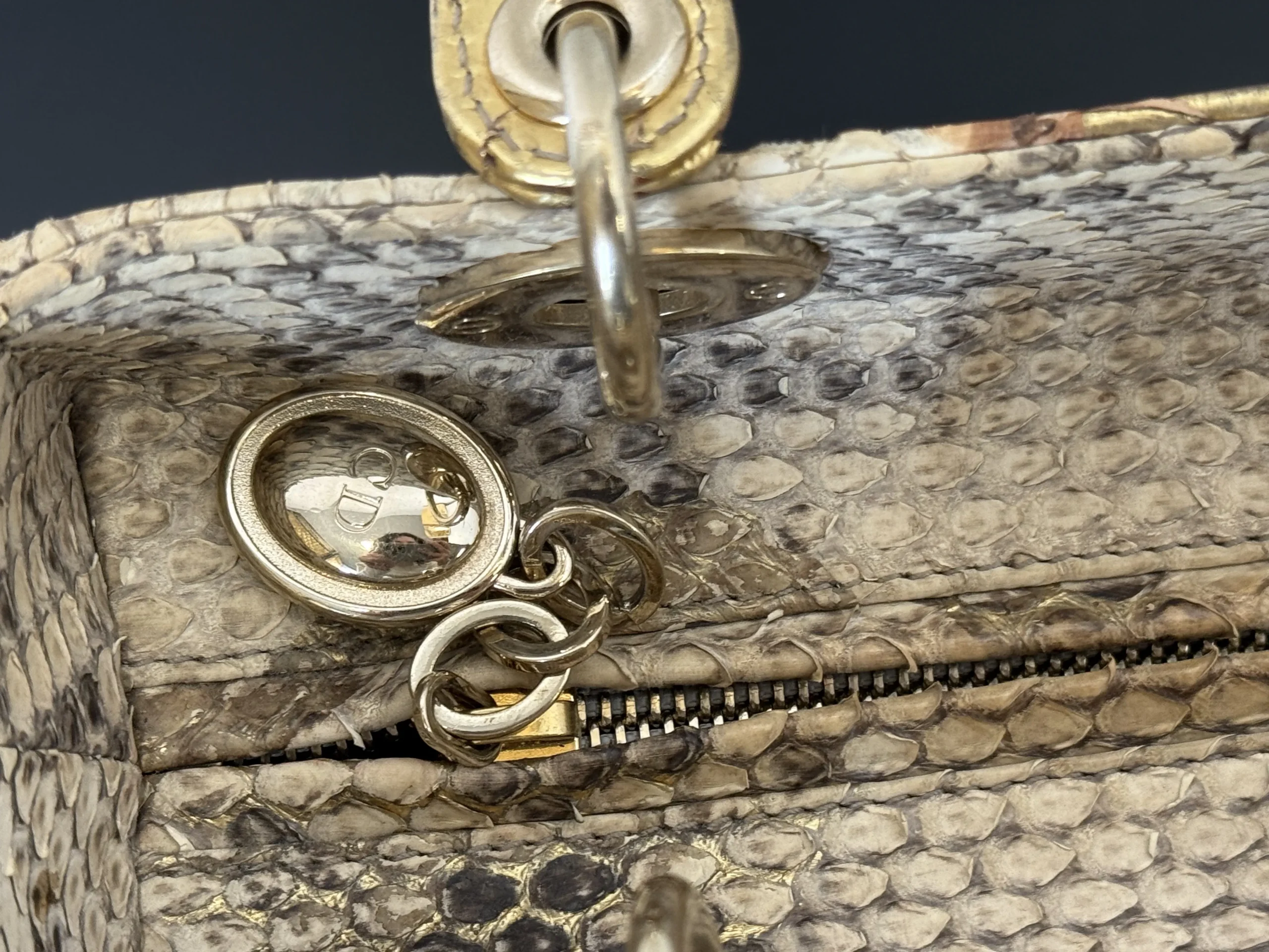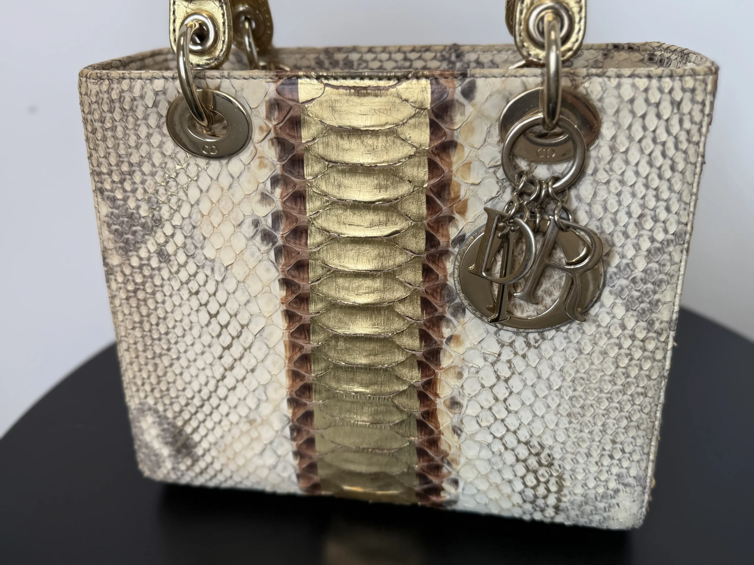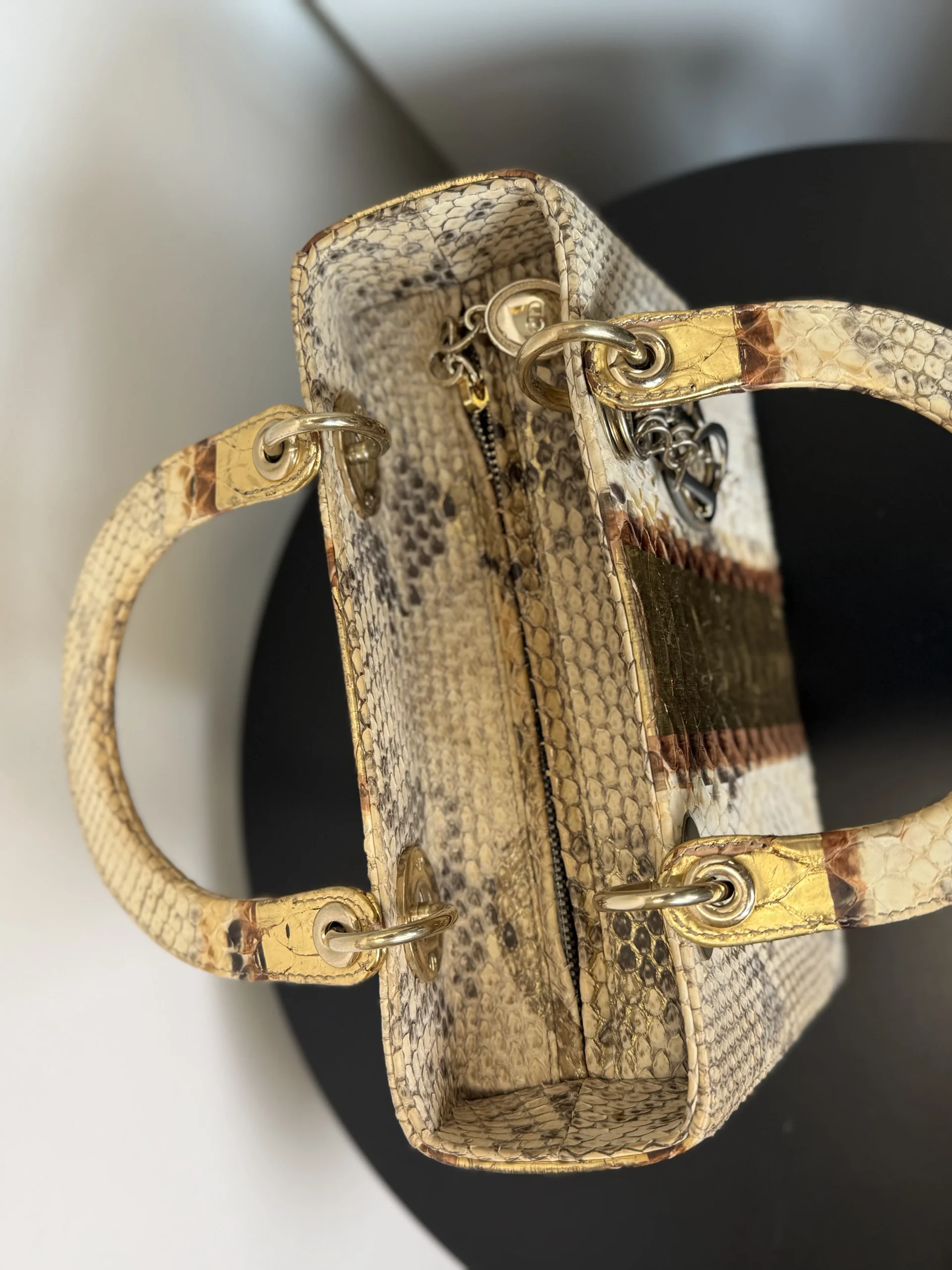 Authentic DIOR Gold Royal Python Medium Lady Dior Bag from the rare Royal Collection, crafted in luxurious exotic python leather. A highly sought-after limited edition piece, known for its refined gold tones and distinctive texture. With a DIOR boutique retail price of £10,300, this exceptional design is part of Dior’s precious exotic leather collection and is extremely difficult to source on the market. Now available at just £2,599 — offering outstanding value within the UK pre-loved market. Available at our London pre-loved luxury boutique, with viewing welcome.