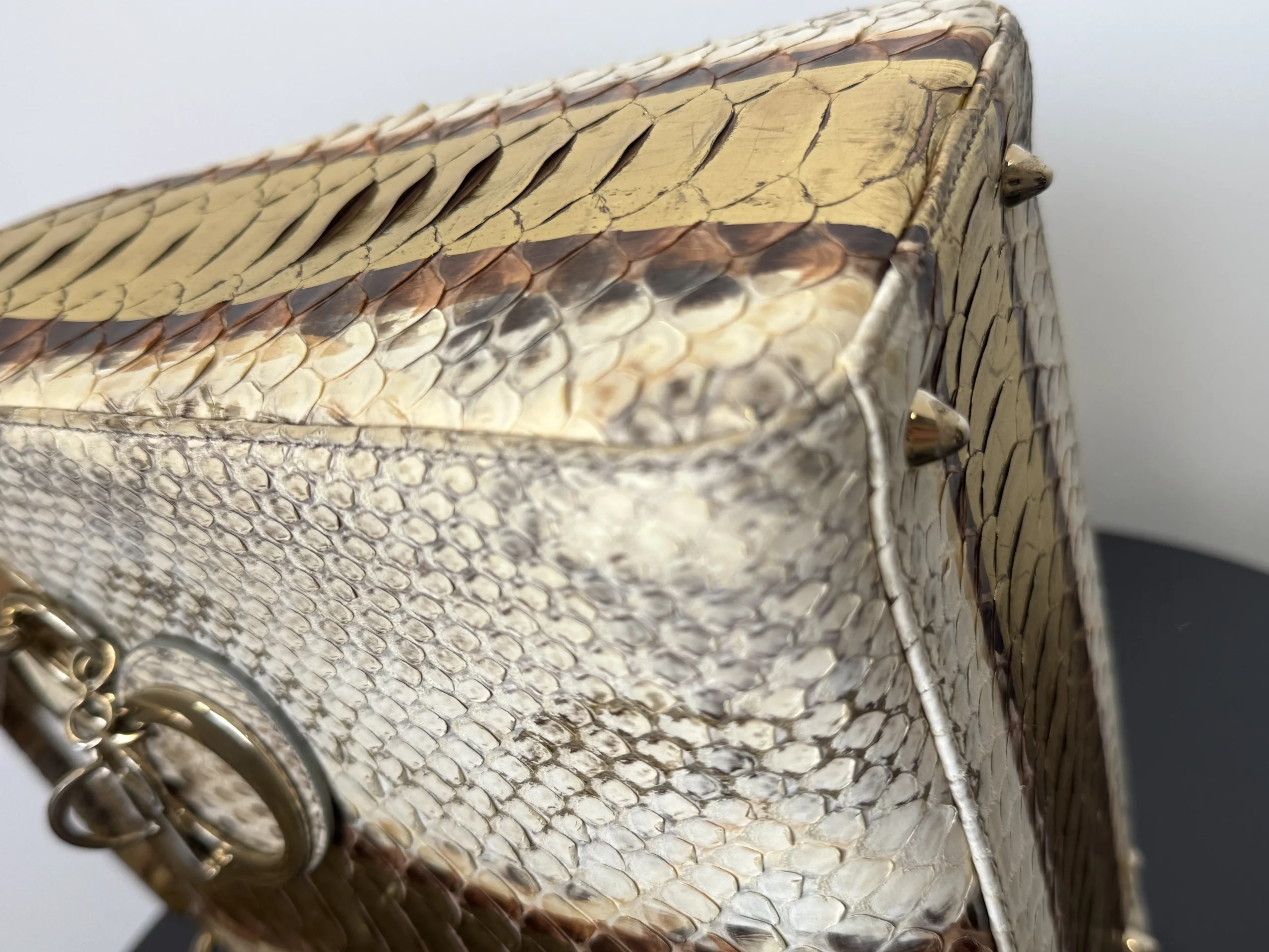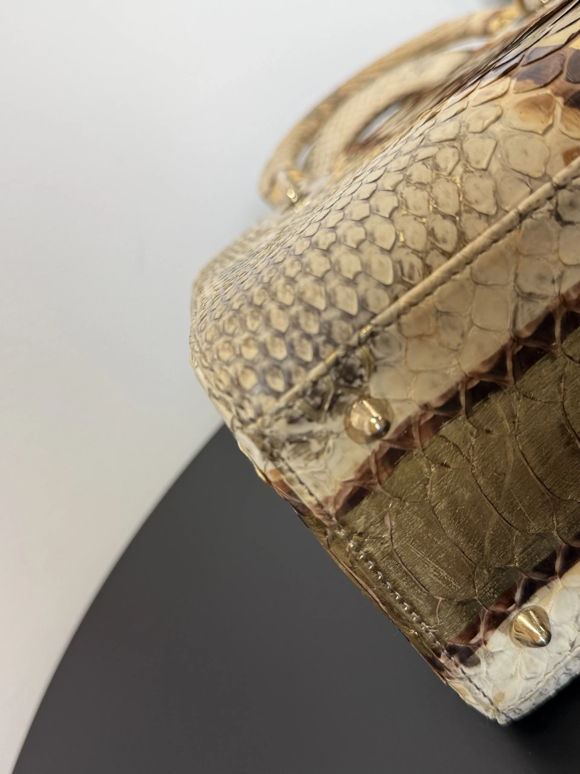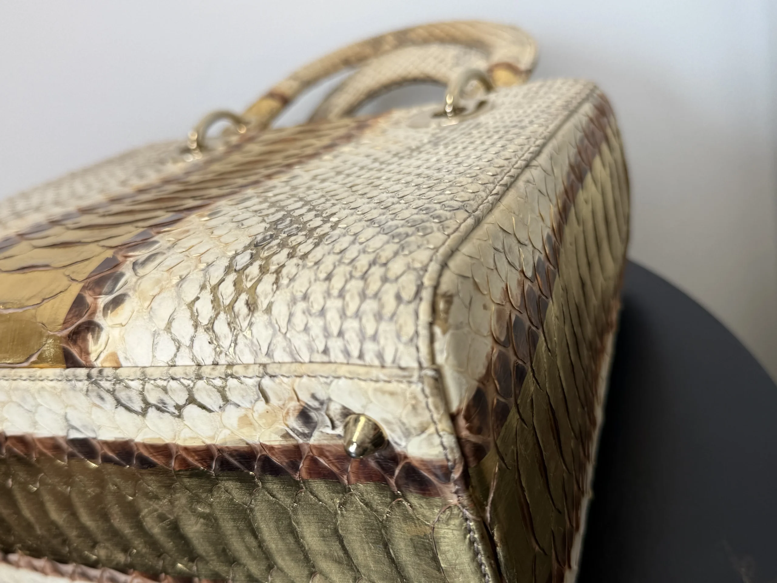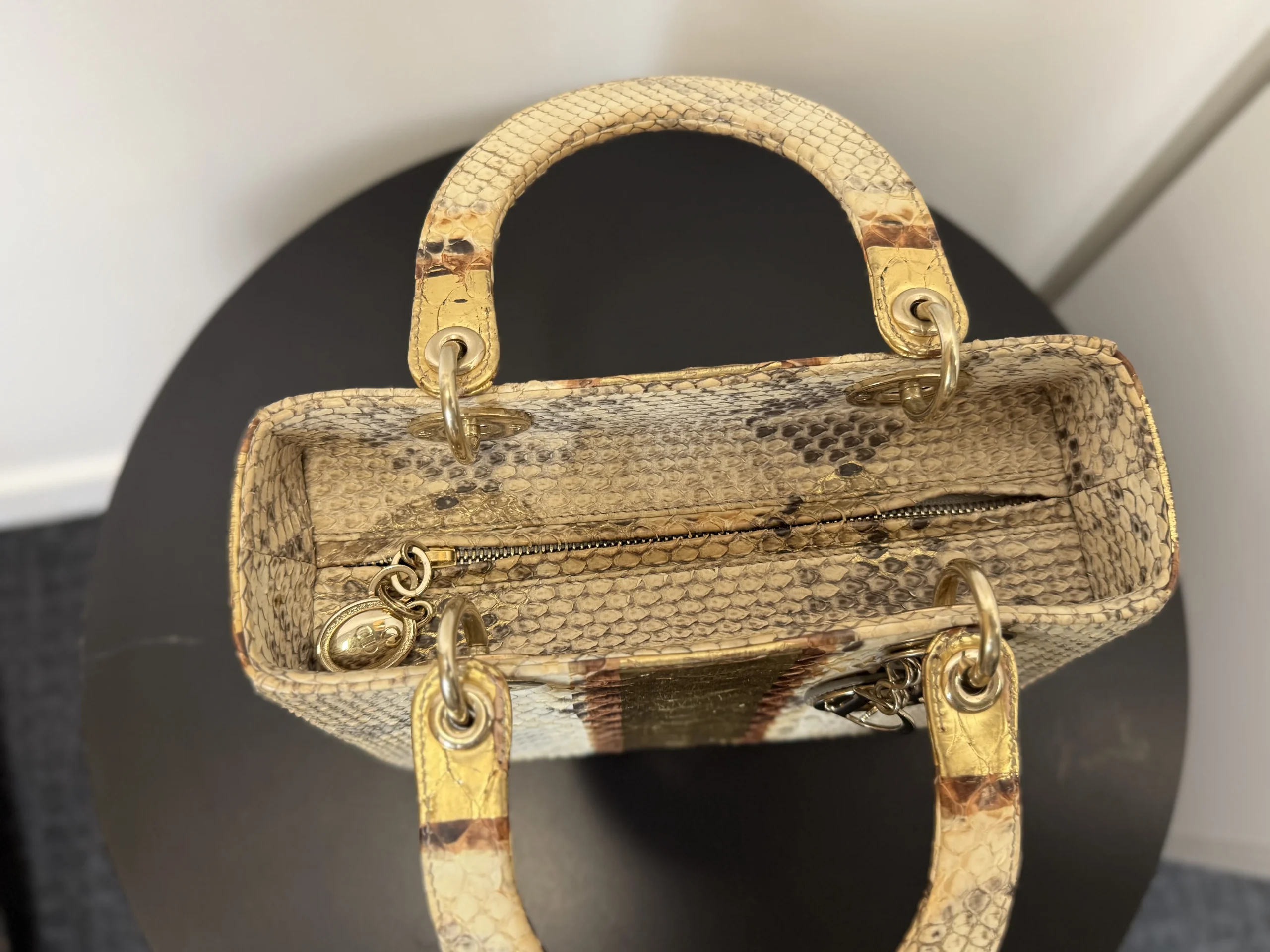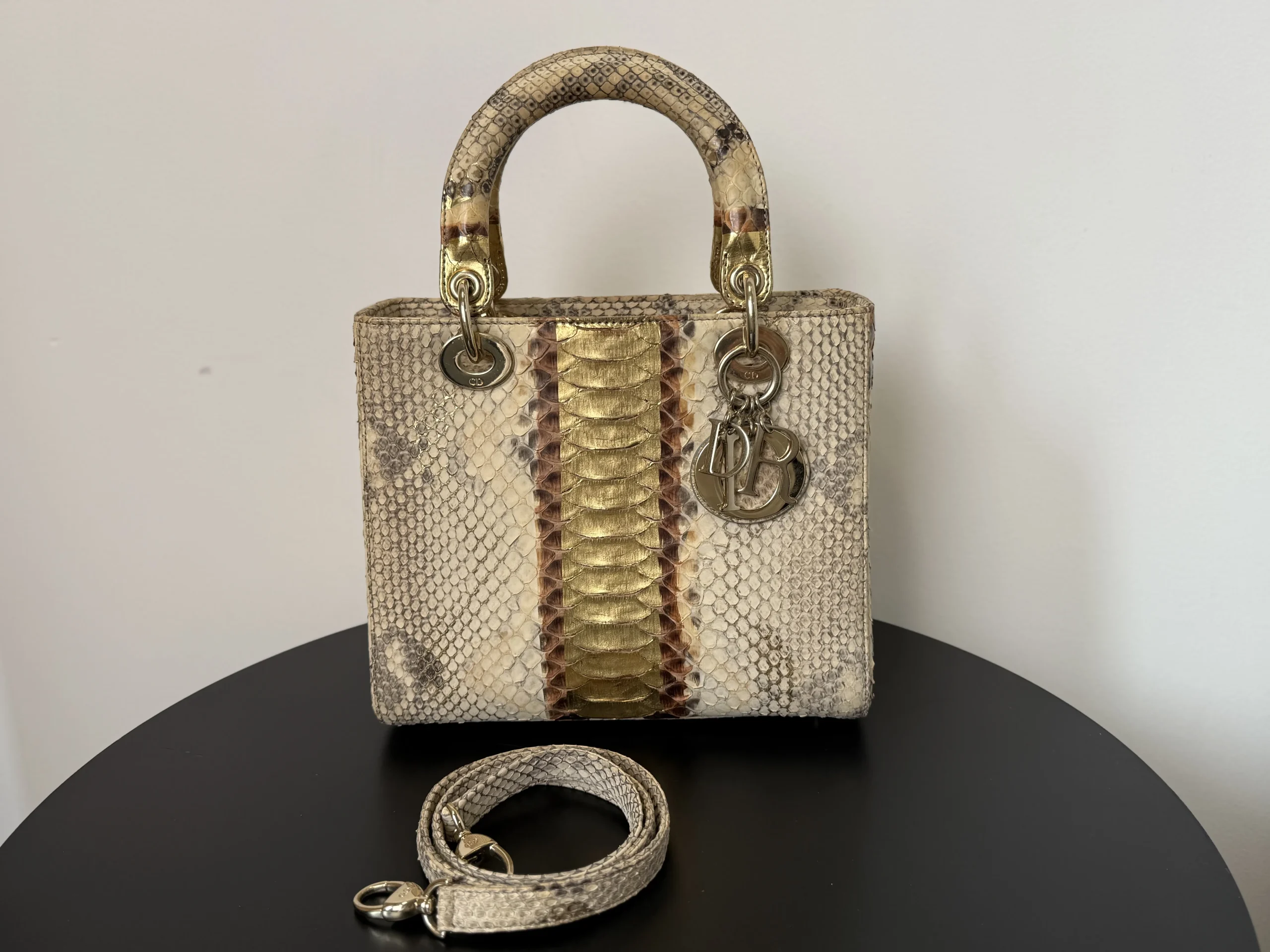 Authentic DIOR Gold Royal Python Medium Lady Dior Bag from the rare Royal Collection, crafted in luxurious exotic python leather. A highly sought-after limited edition piece, known for its refined gold tones and distinctive texture. With a DIOR boutique retail price of £10,300, this exceptional design is part of Dior’s precious exotic leather collection and is extremely difficult to source on the market. Now available at just £2,599 — offering outstanding value within the UK pre-loved market. Available at our London pre-loved luxury boutique, with viewing welcome.