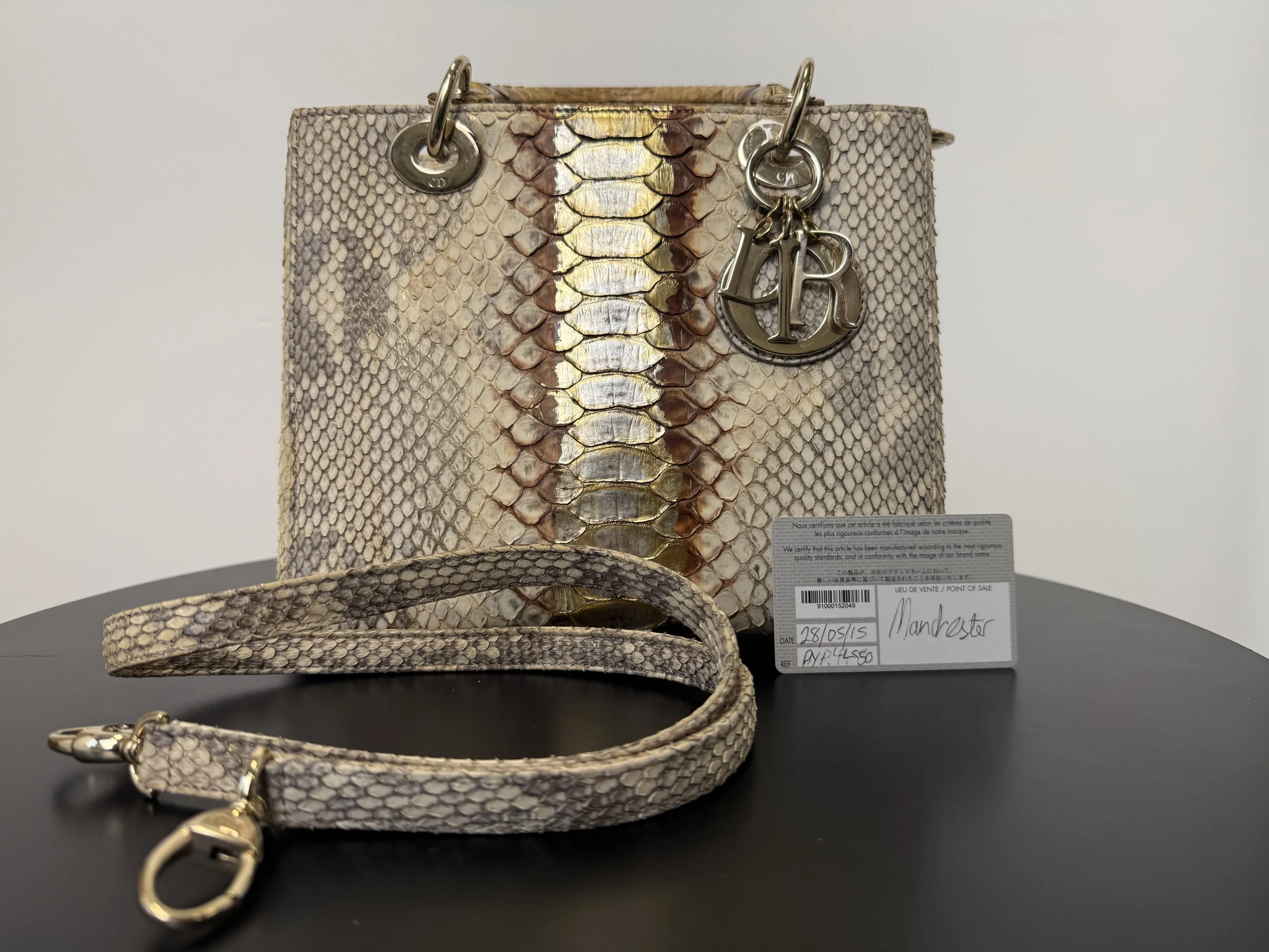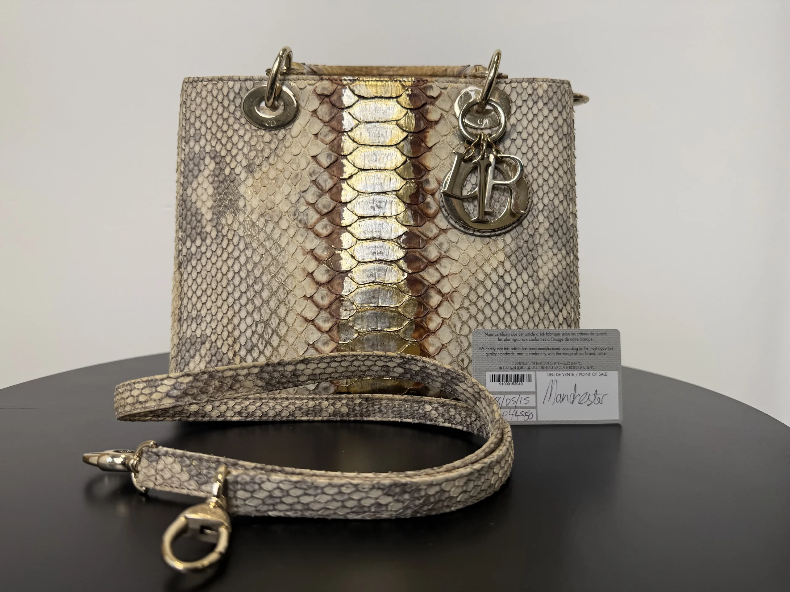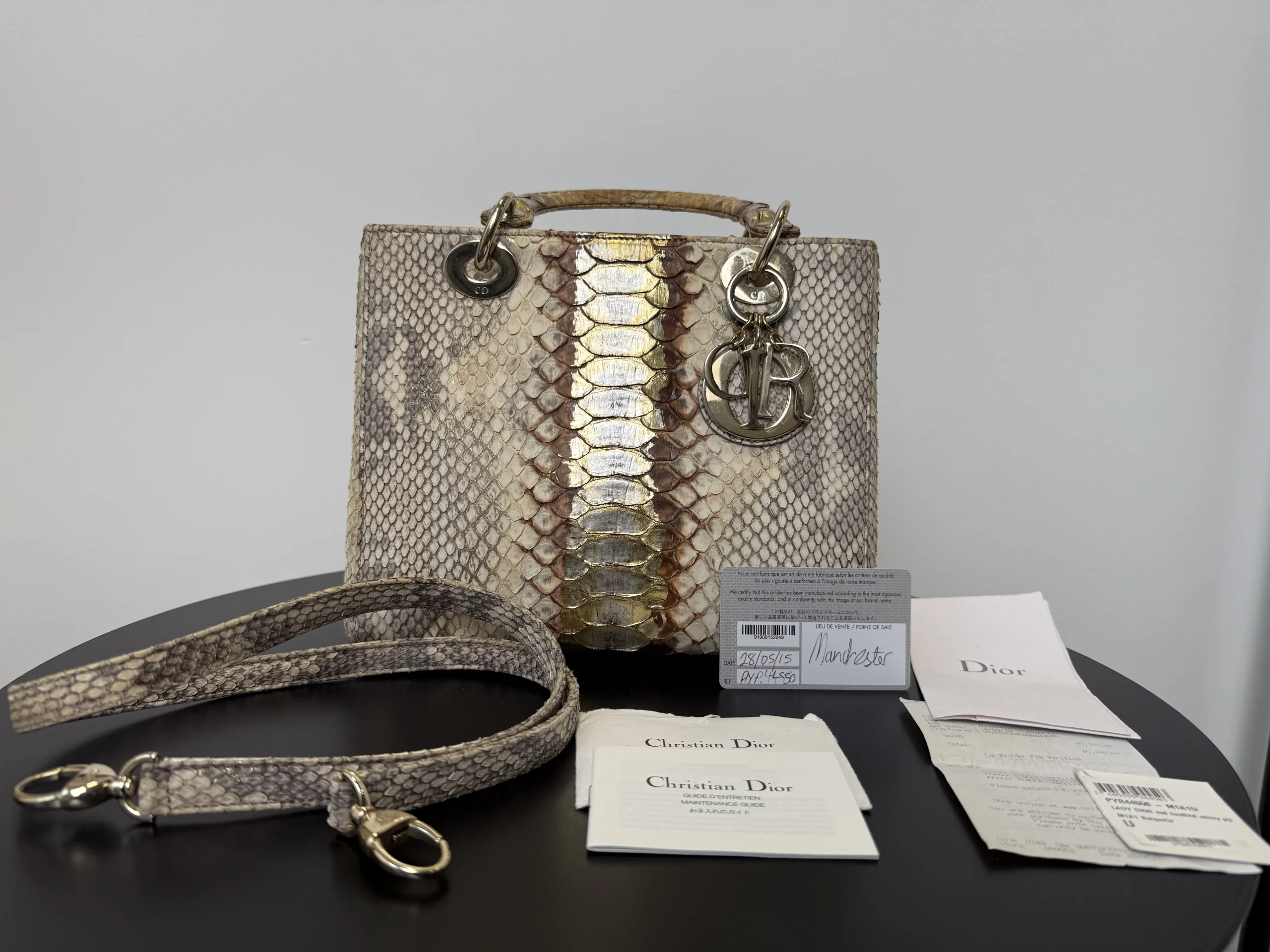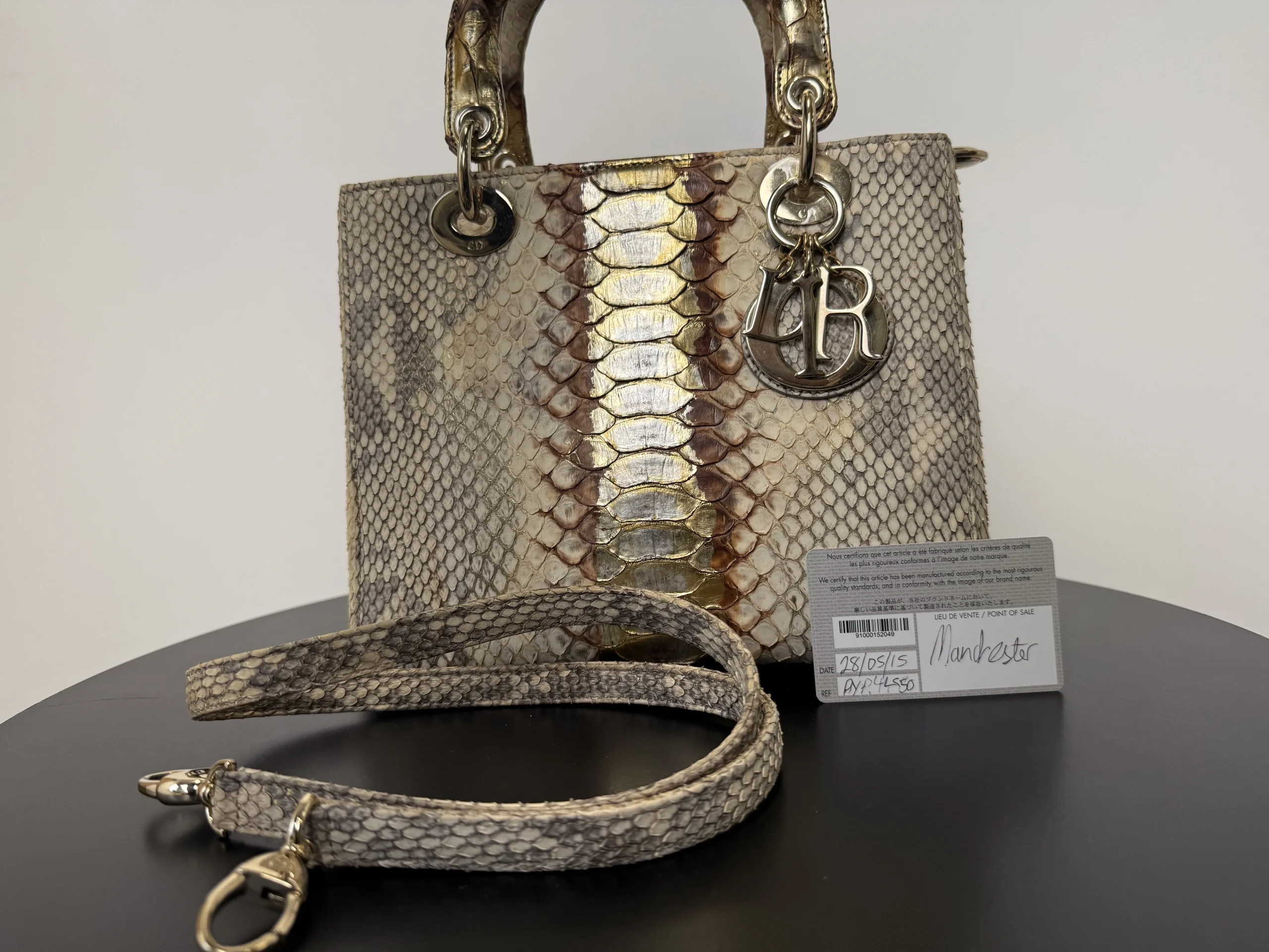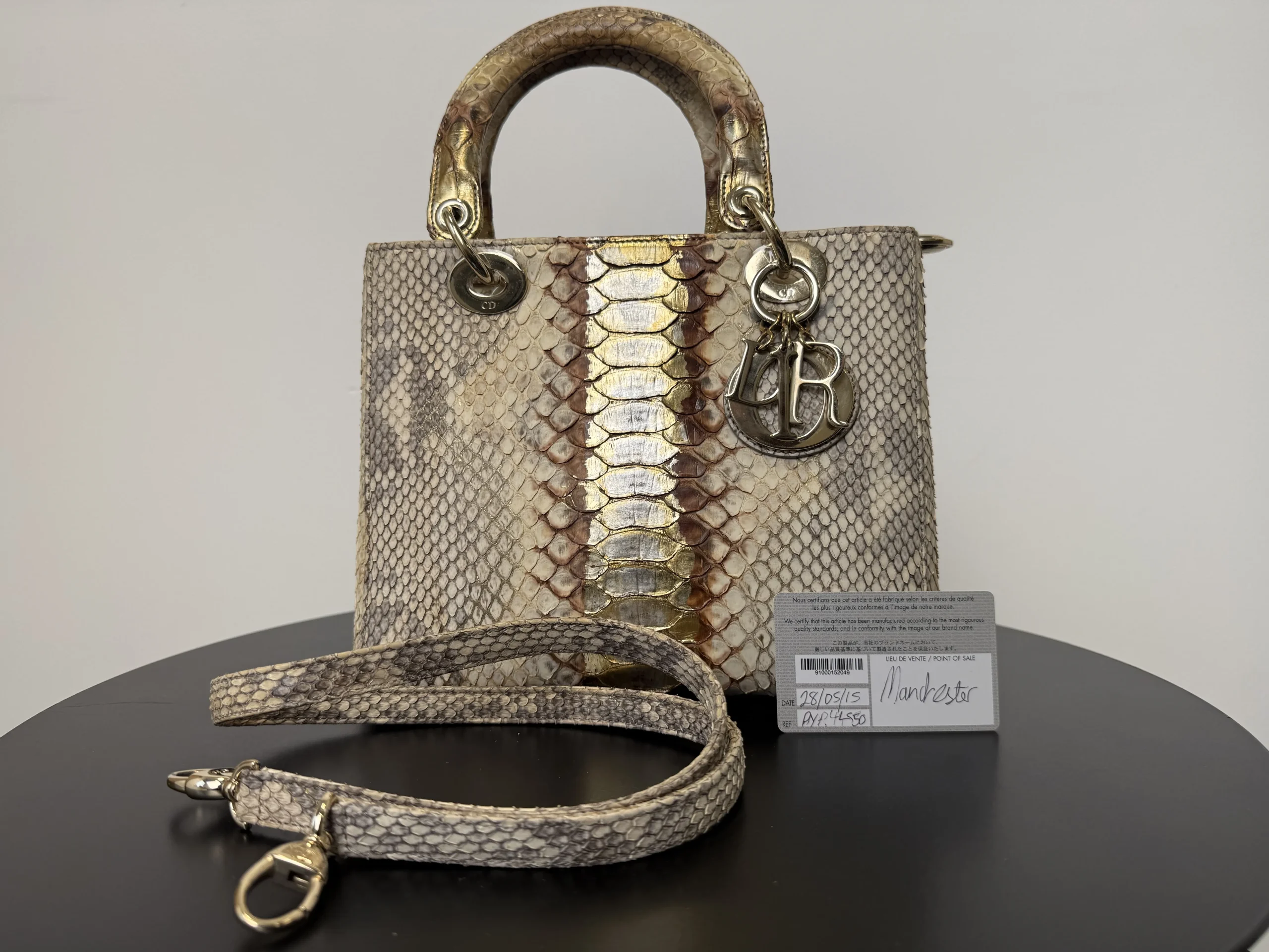 Authentic DIOR Lady Dior Medium in exotic python leather from the Royal Collection, a rare and highly collectible limited edition piece. The unique texture and refined colourway make this bag exceptionally distinctive and unlikely to be seen elsewhere. A timeless yet statement design that remains versatile for both everyday wear and special occasions. Now available at £2,599 — one of the most competitive prices in the UK for this rare piece.