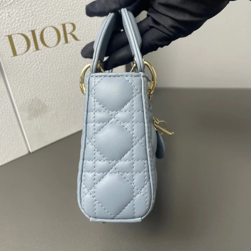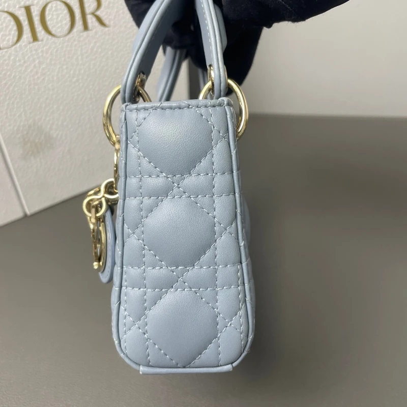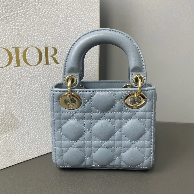Home/WOMENS/ALL BAGS/DIOR Lady Dior Micro Haze Blue Lambskin Cannage Bag Gold Hardware