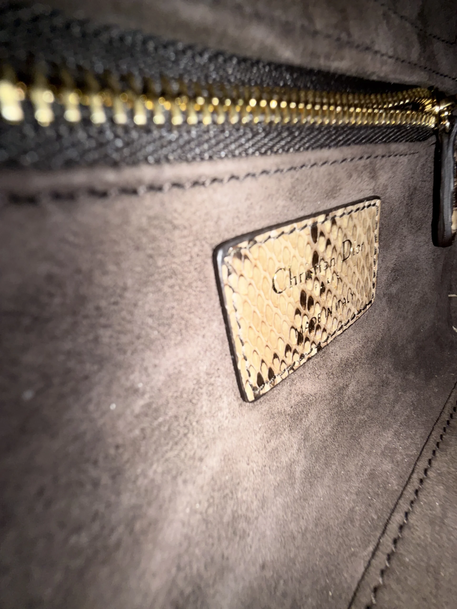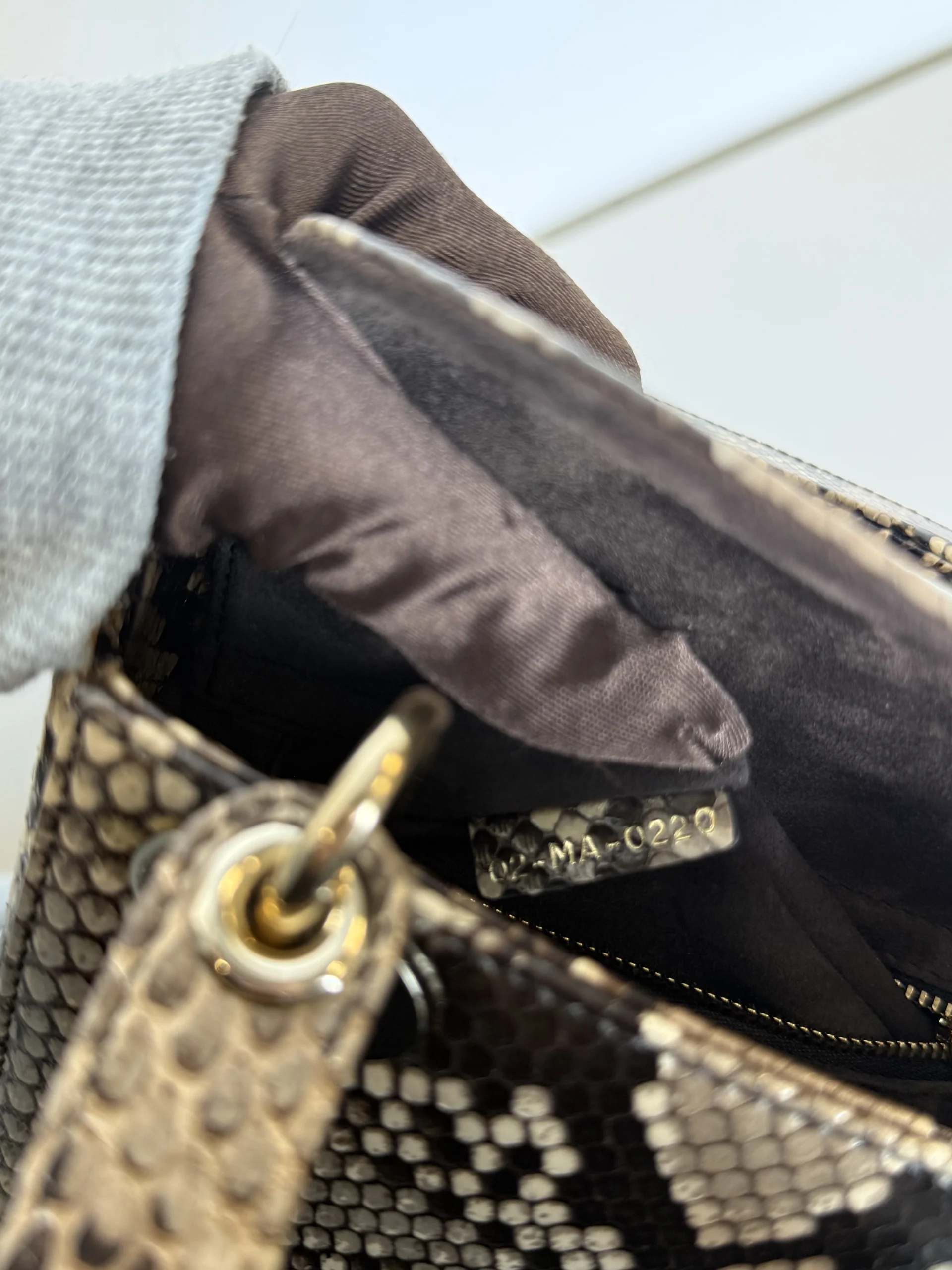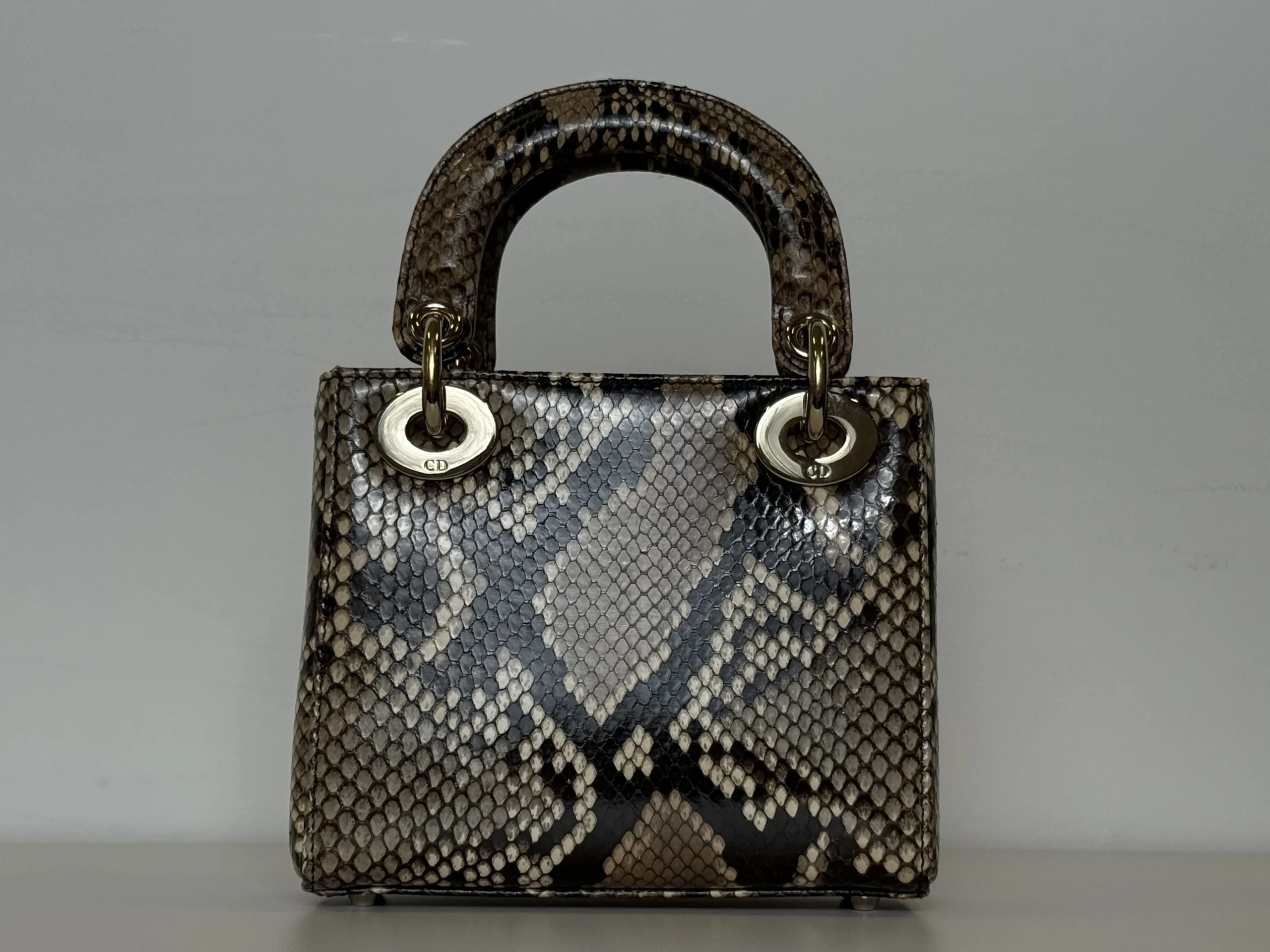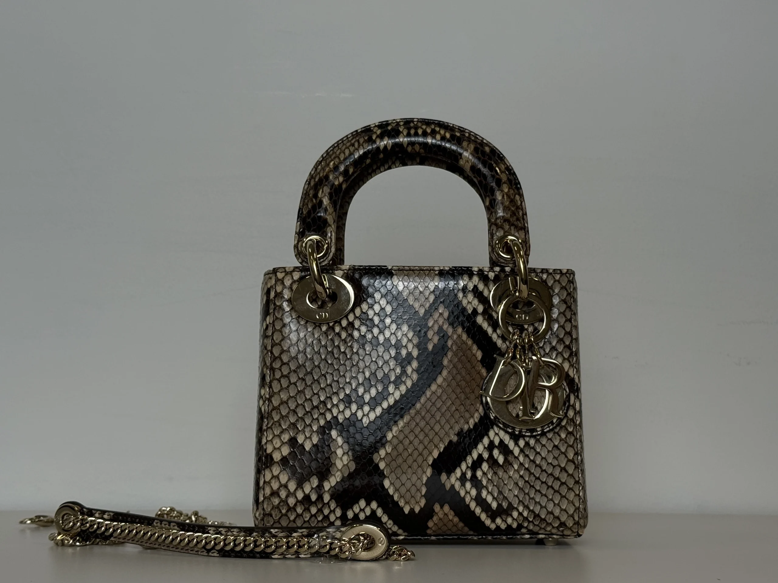 The Dior Lady Dior Mini is crafted from exquisite gradient python exotic leather, offering exceptional elegance and rarity. Each bag is naturally unique due to the individual patterns of genuine python leather, making every piece one of a kind.