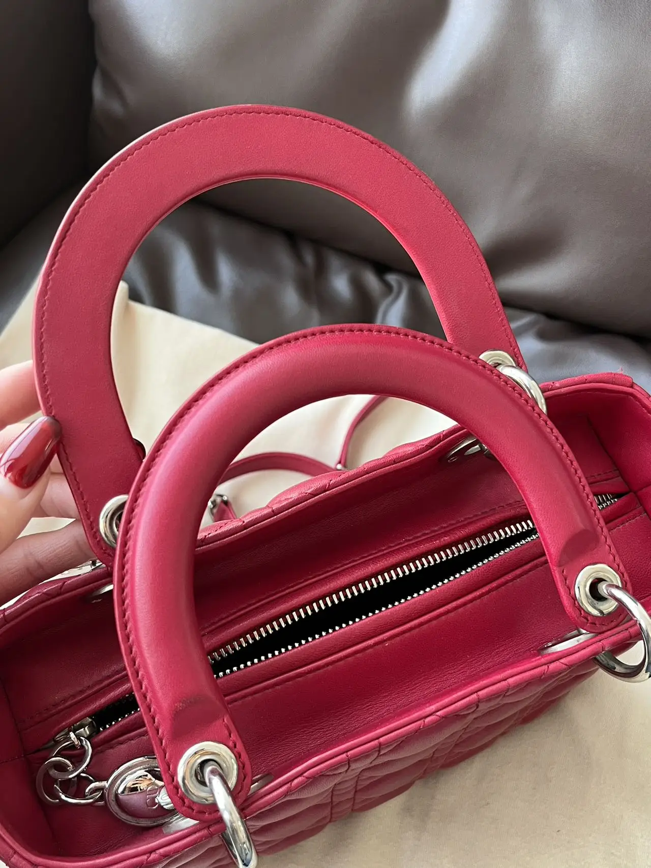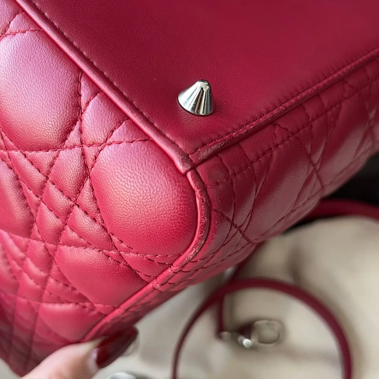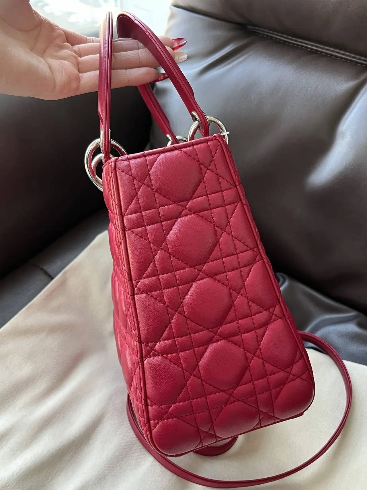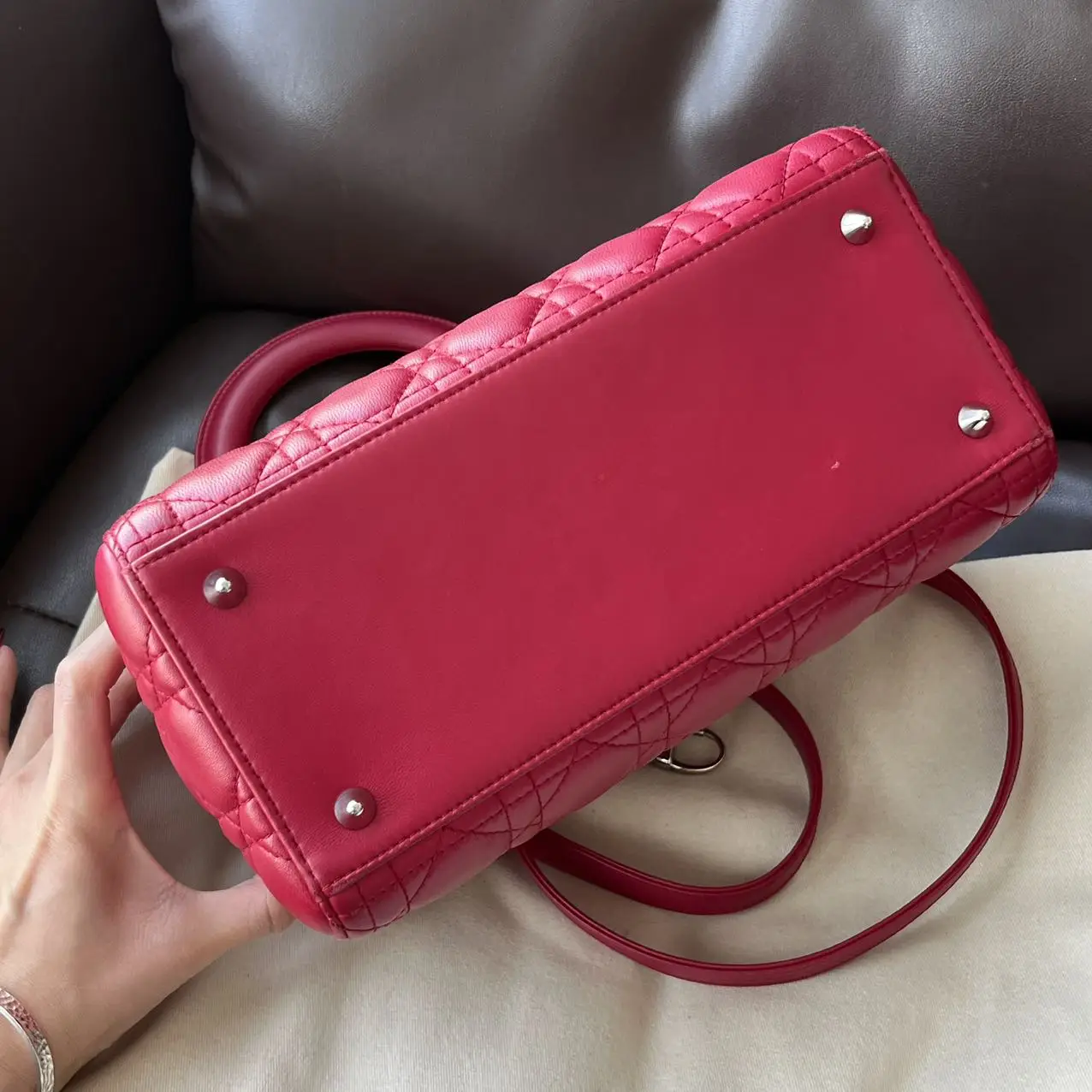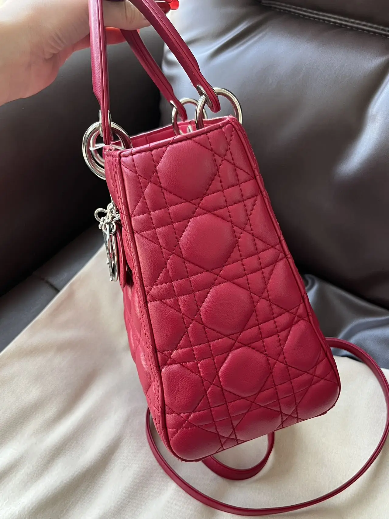 The DIOR Medium Lady Dior Bag in pink lambskin is a soft and timeless statement of elegance, where the delicate hue beautifully highlights the iconic Cannage quilting and polished ‘D.I.O.R.’ charms, offering a perfect blend of classic femininity and modern sophistication.