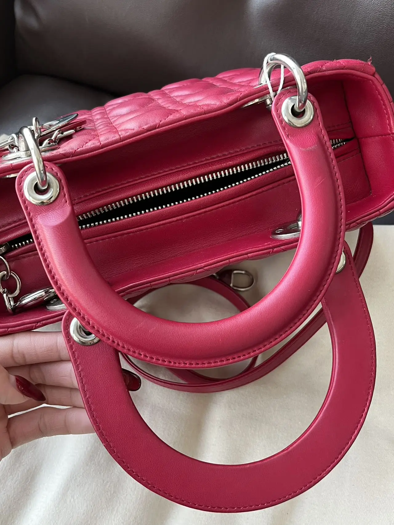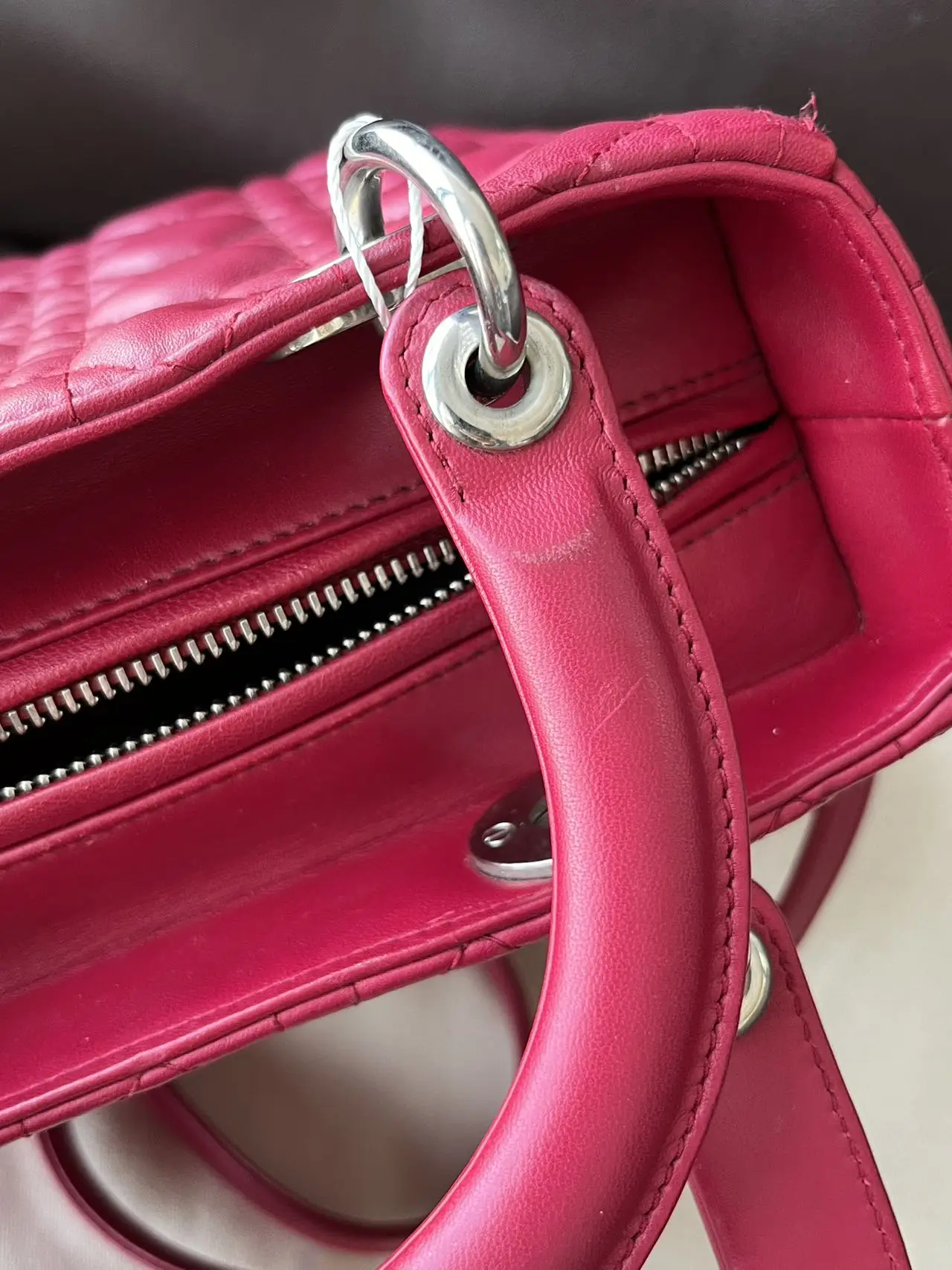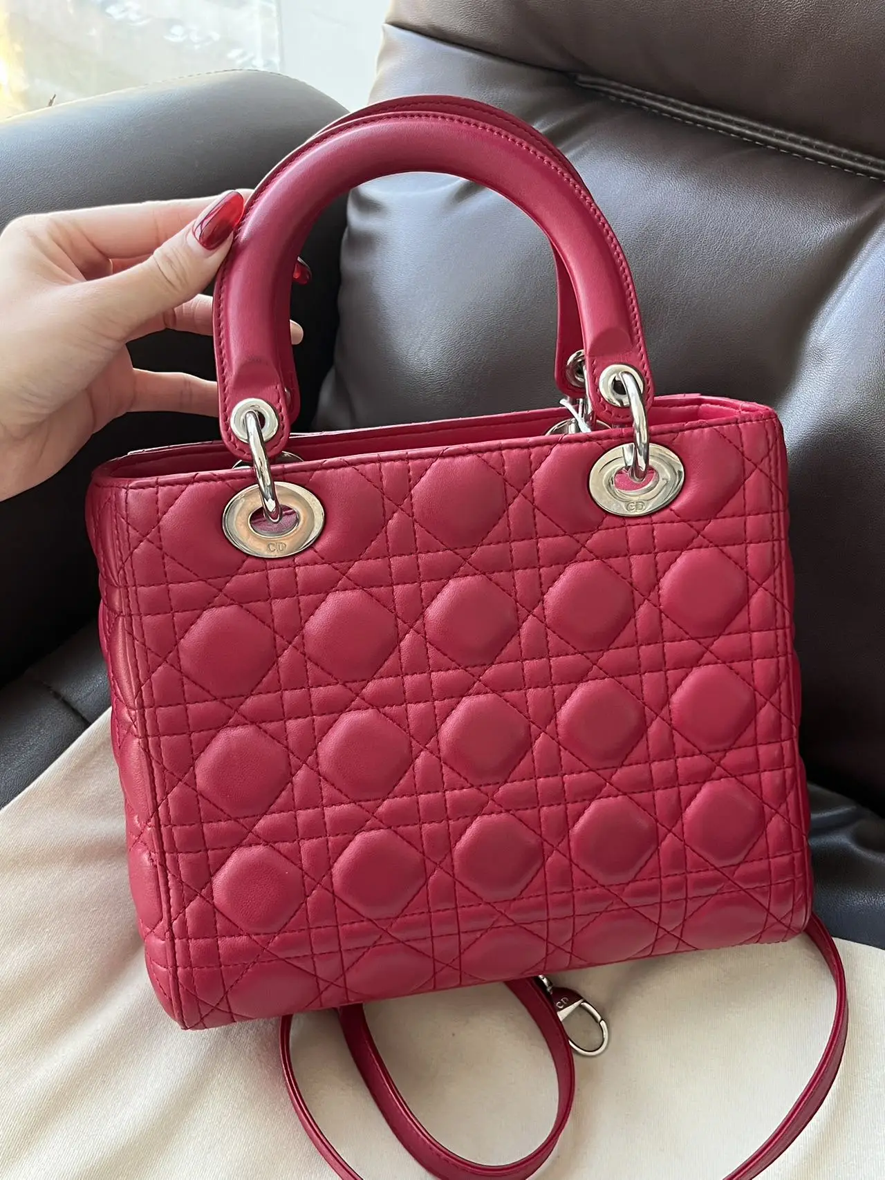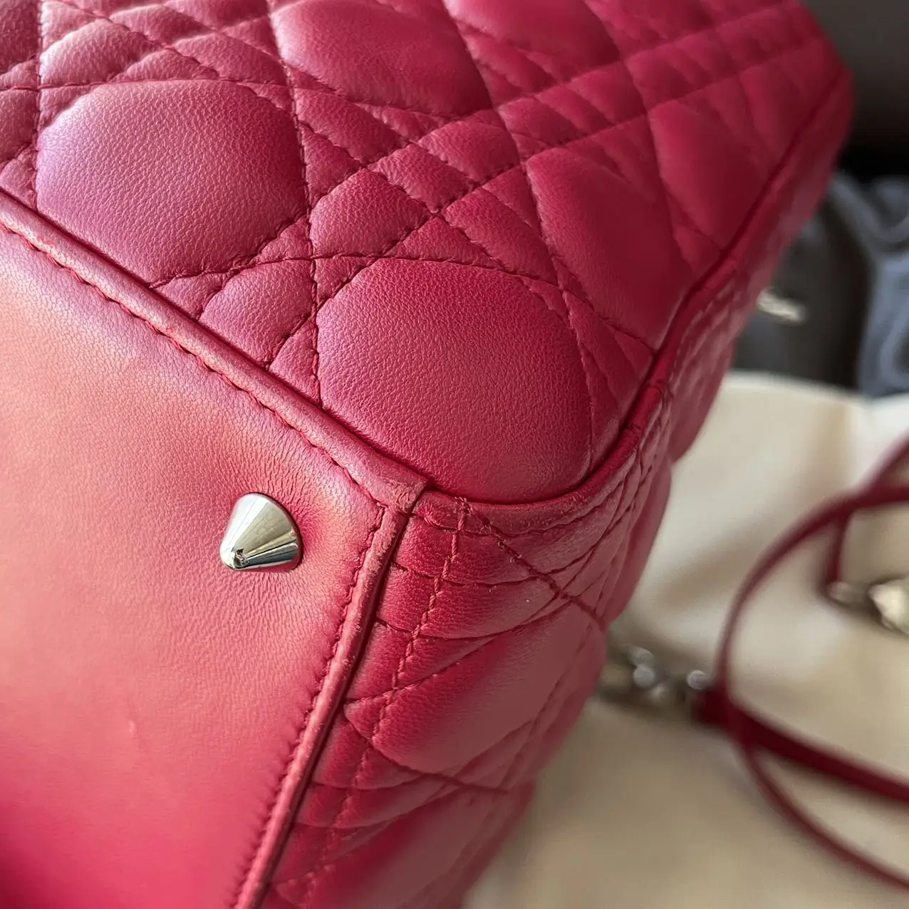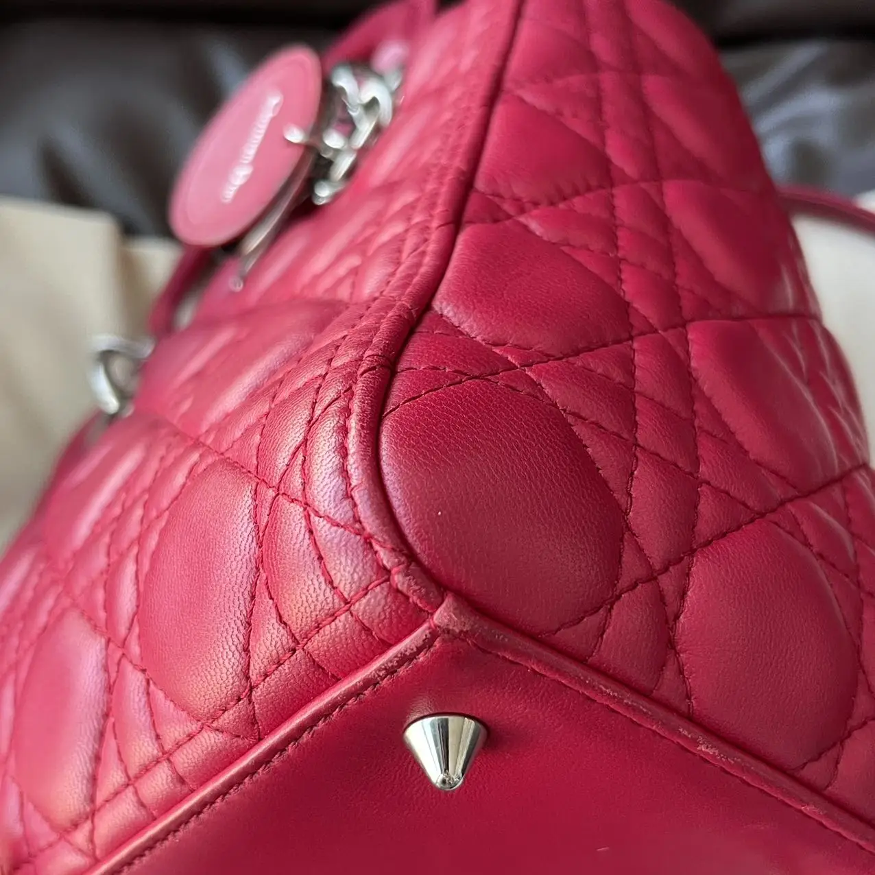 The DIOR Medium Lady Dior Bag in pink lambskin is a soft and timeless statement of elegance, where the delicate hue beautifully highlights the iconic Cannage quilting and polished ‘D.I.O.R.’ charms, offering a perfect blend of classic femininity and modern sophistication.