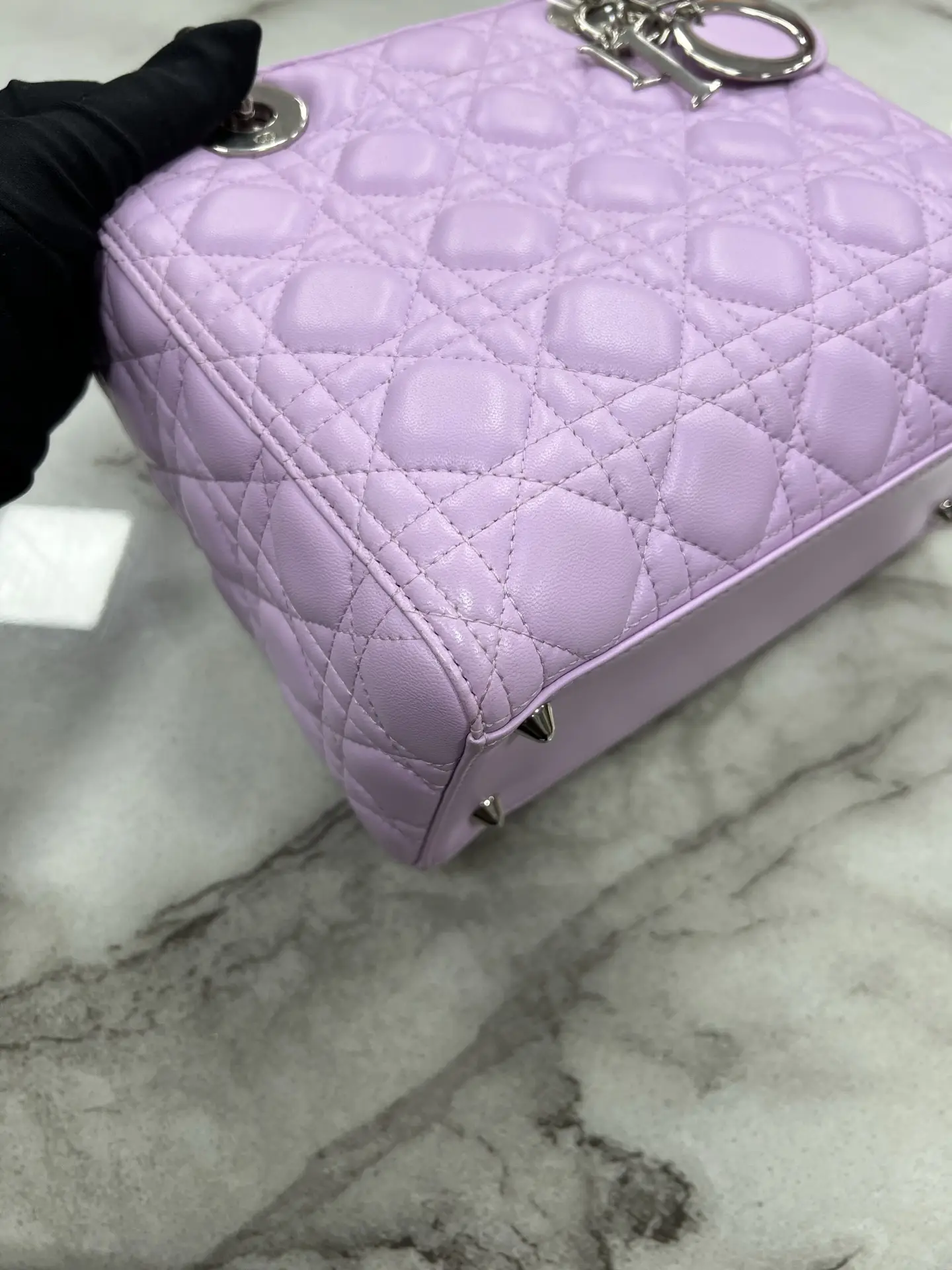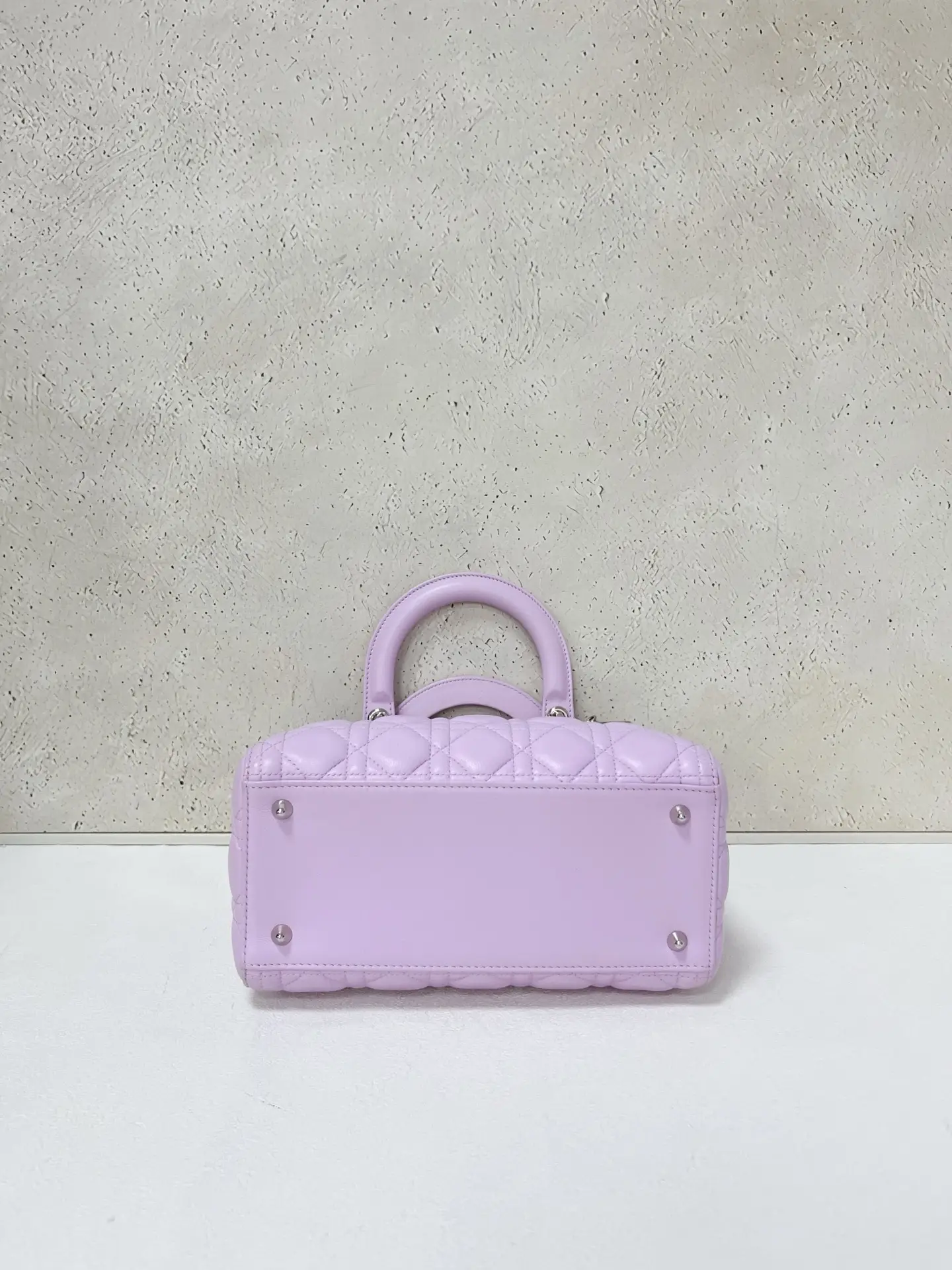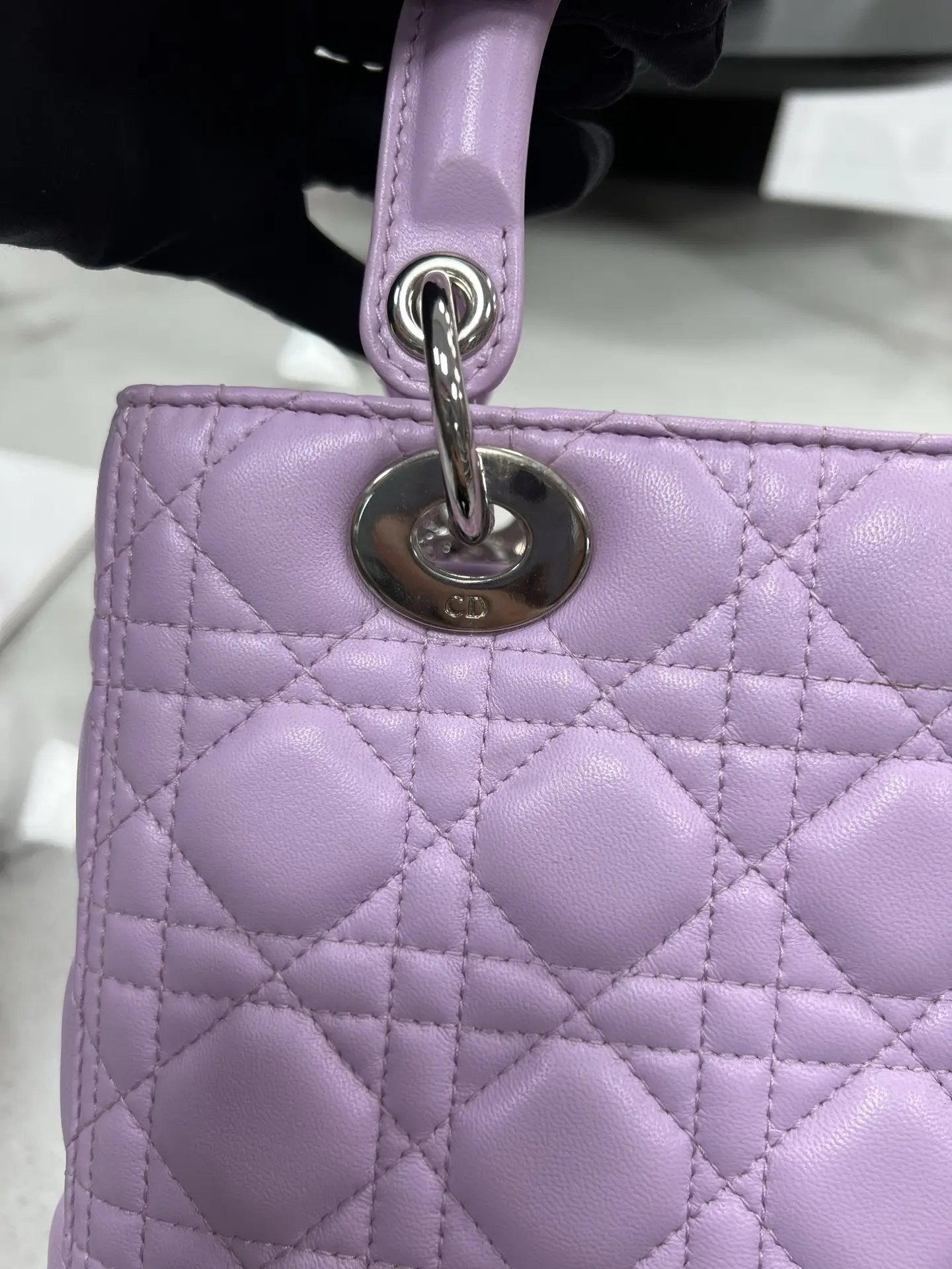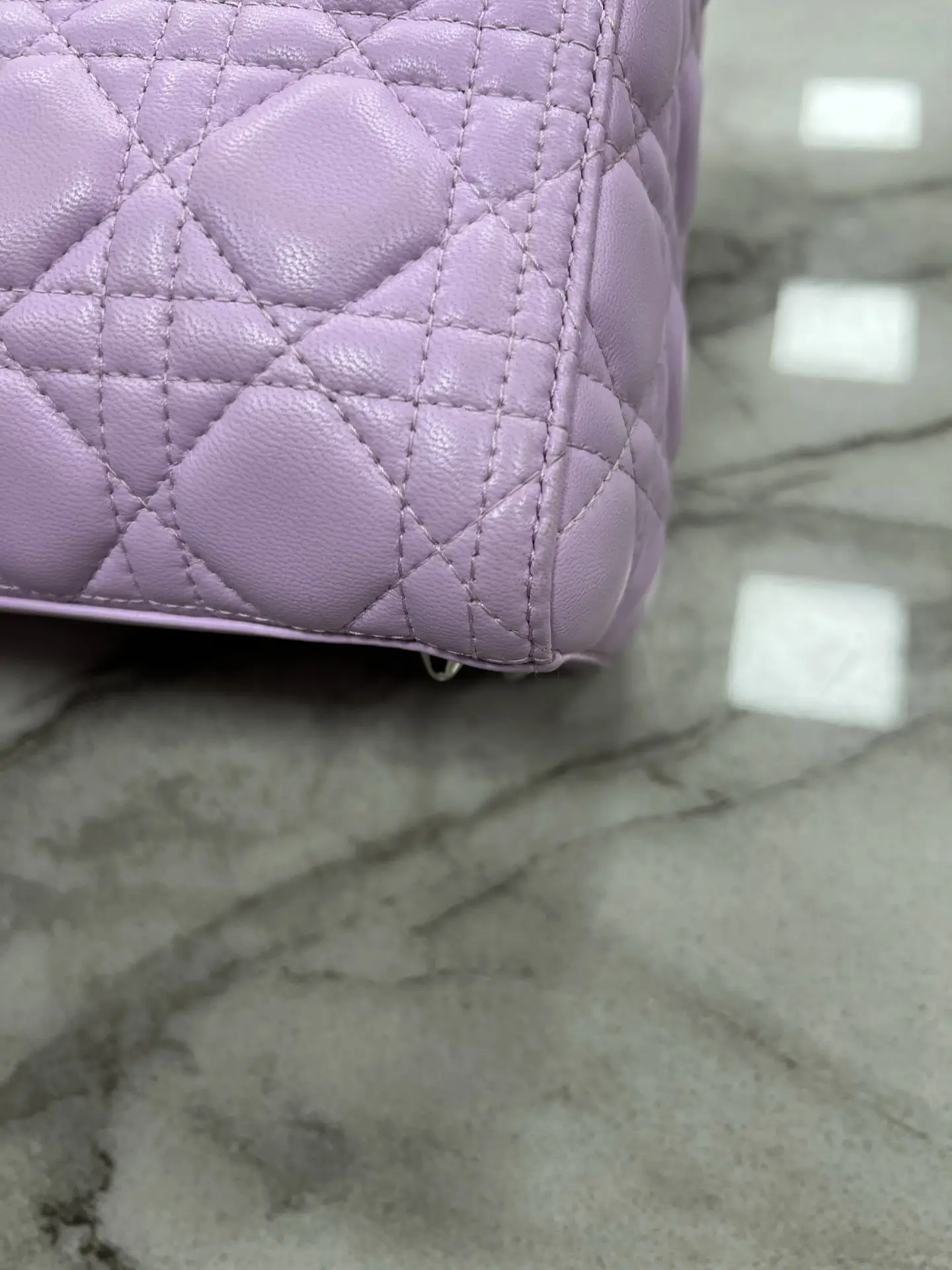 The DIOR Medium Lady Dior Bag in lilac lambskin is a soft and elegant statement, where the delicate pastel hue beautifully highlights the iconic Cannage quilting and polished ‘D.I.O.R.’ charms, offering a fresh and feminine interpretation of timeless luxury.