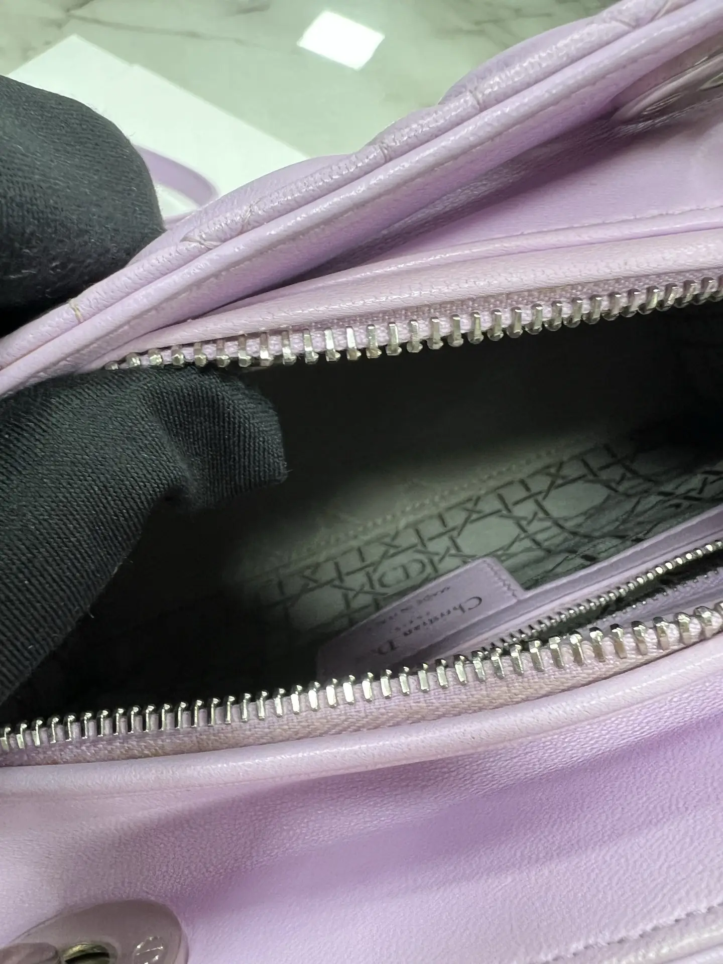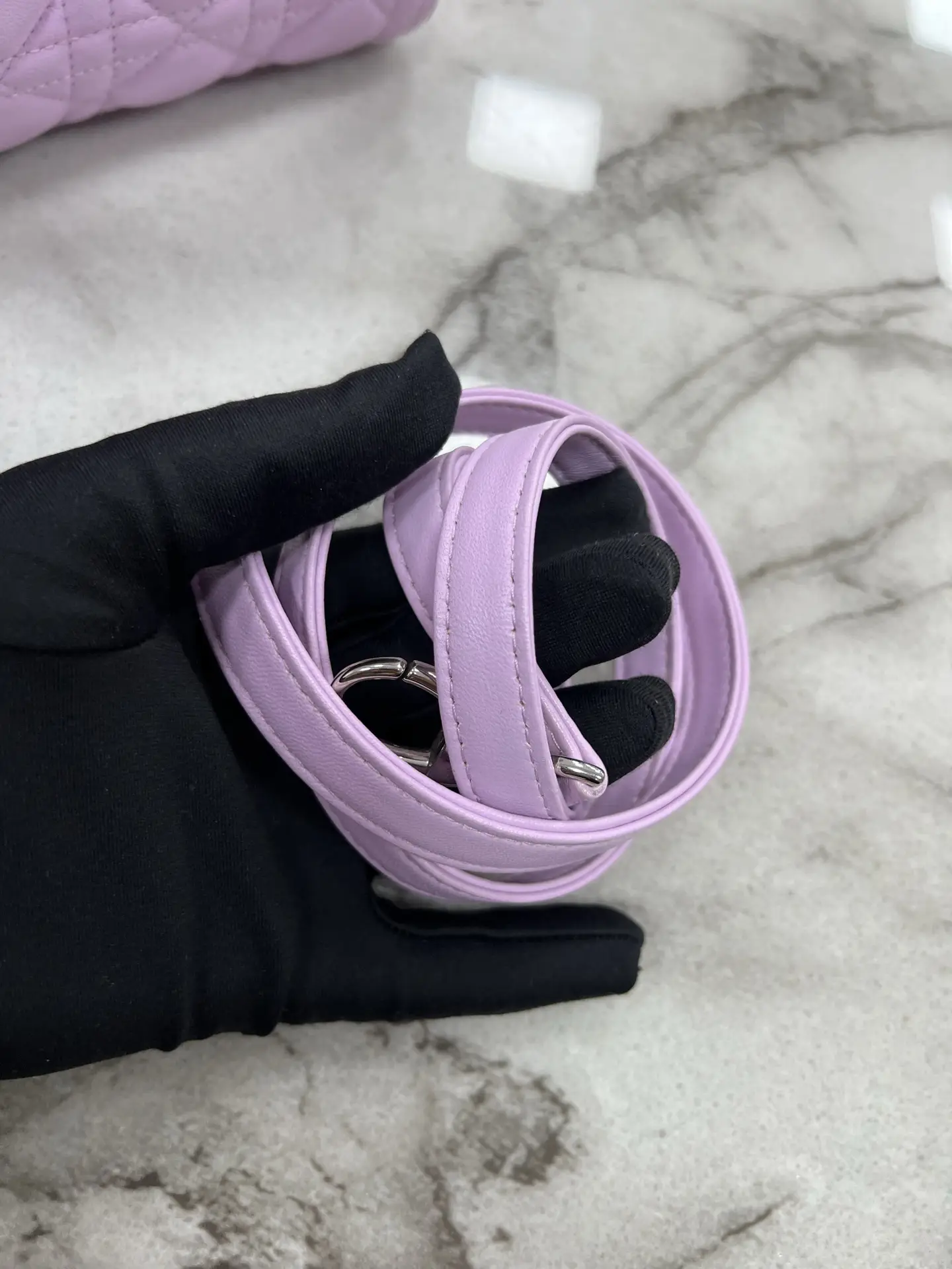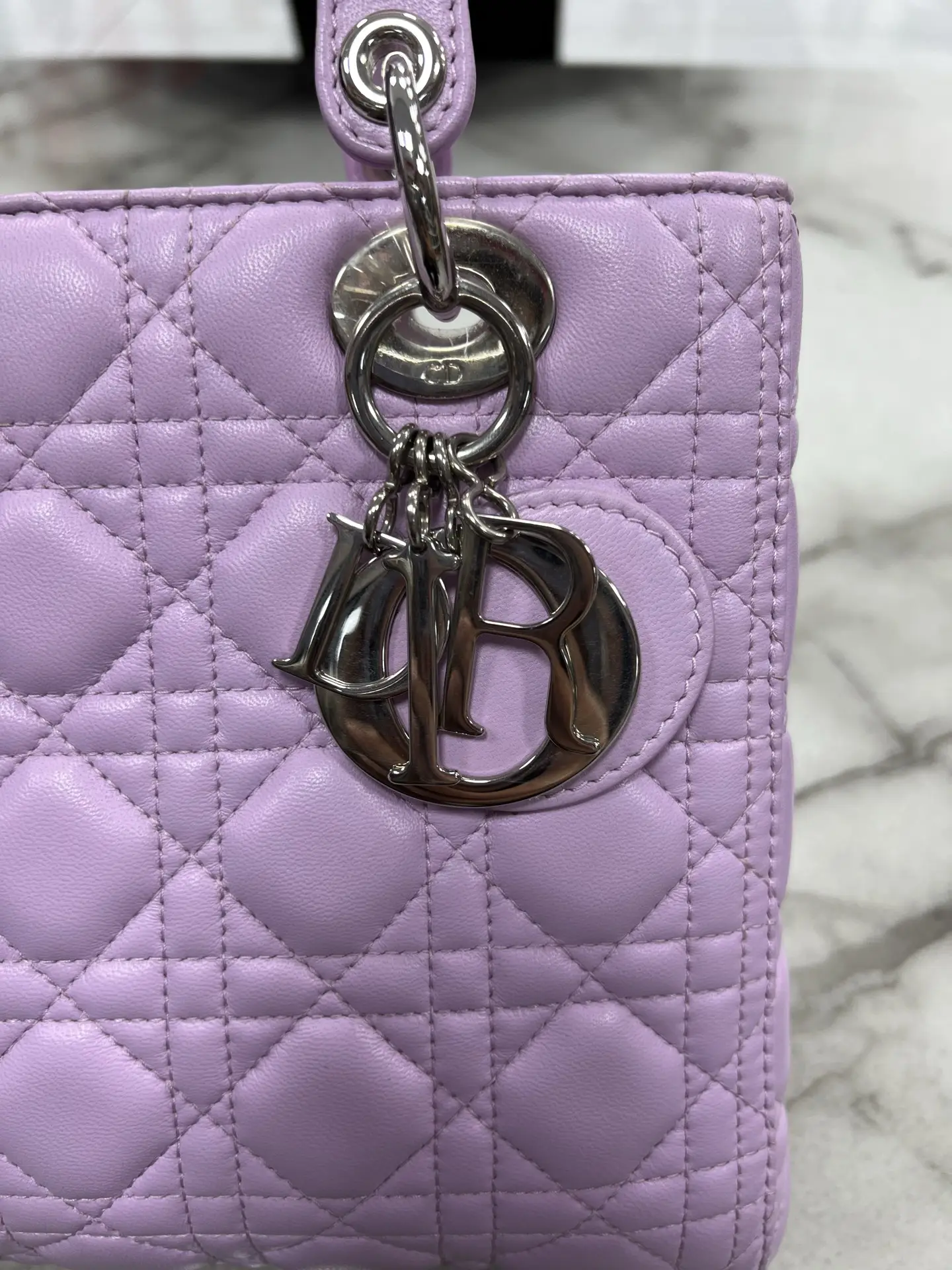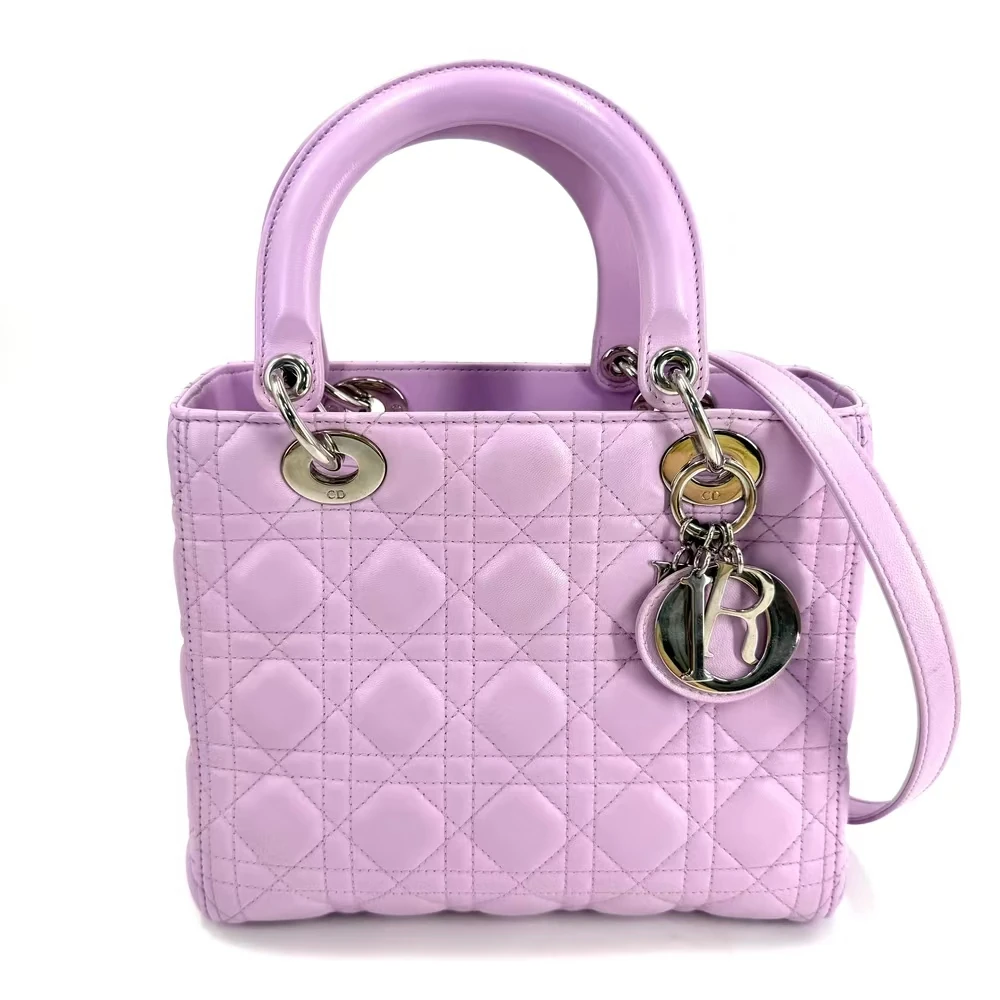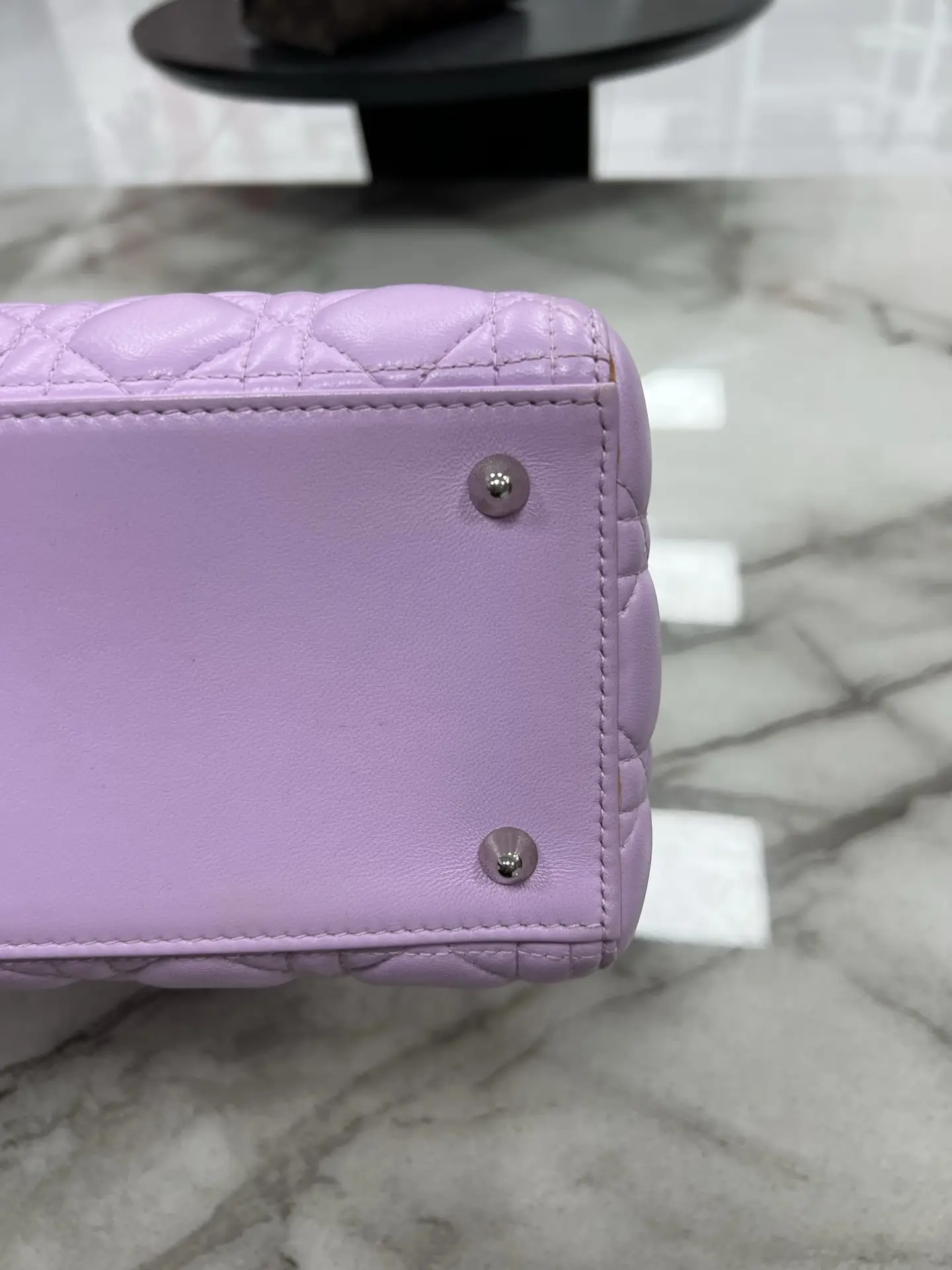 The DIOR Medium Lady Dior Bag in lilac lambskin is a soft and elegant statement, where the delicate pastel hue beautifully highlights the iconic Cannage quilting and polished ‘D.I.O.R.’ charms, offering a fresh and feminine interpretation of timeless luxury.
