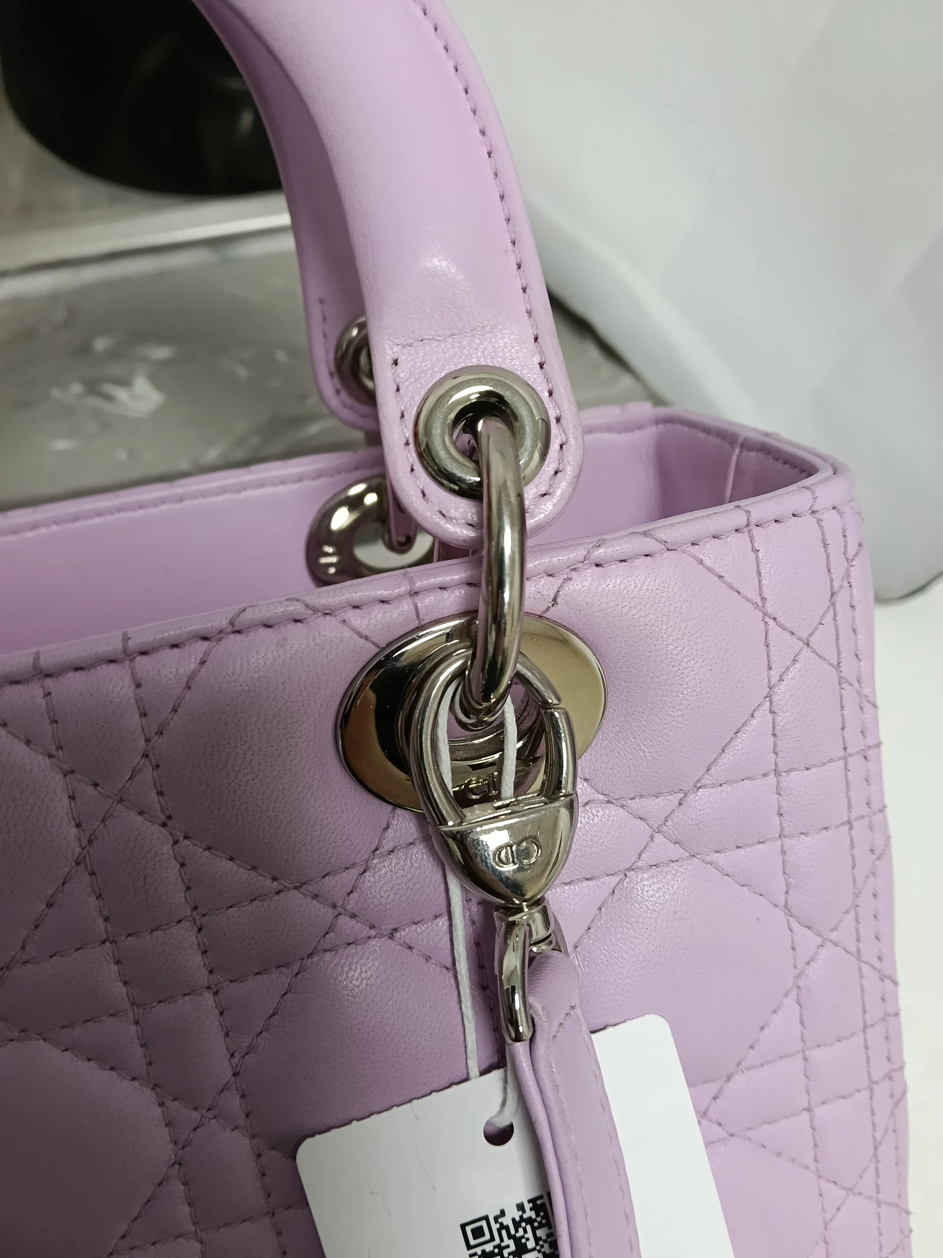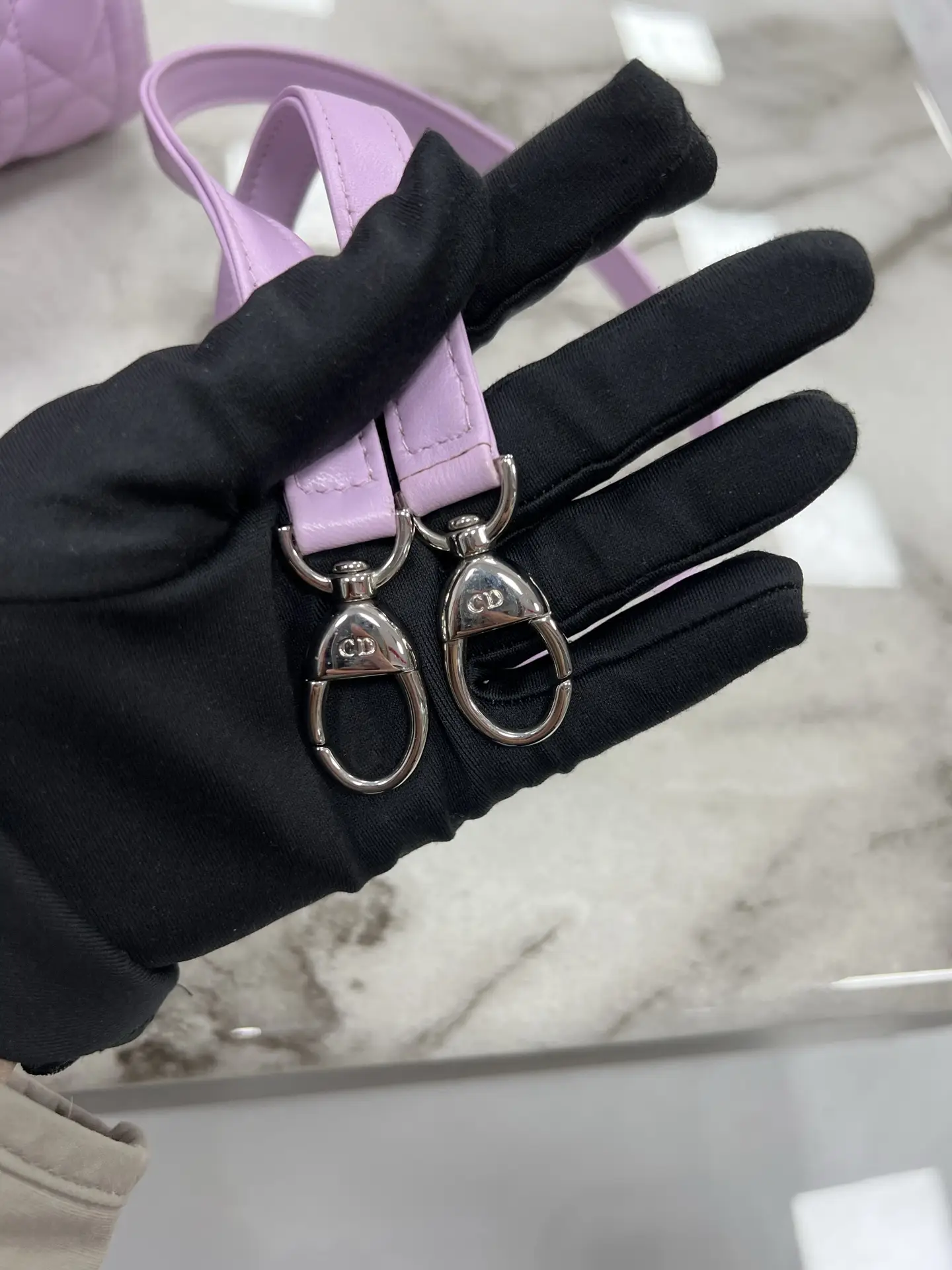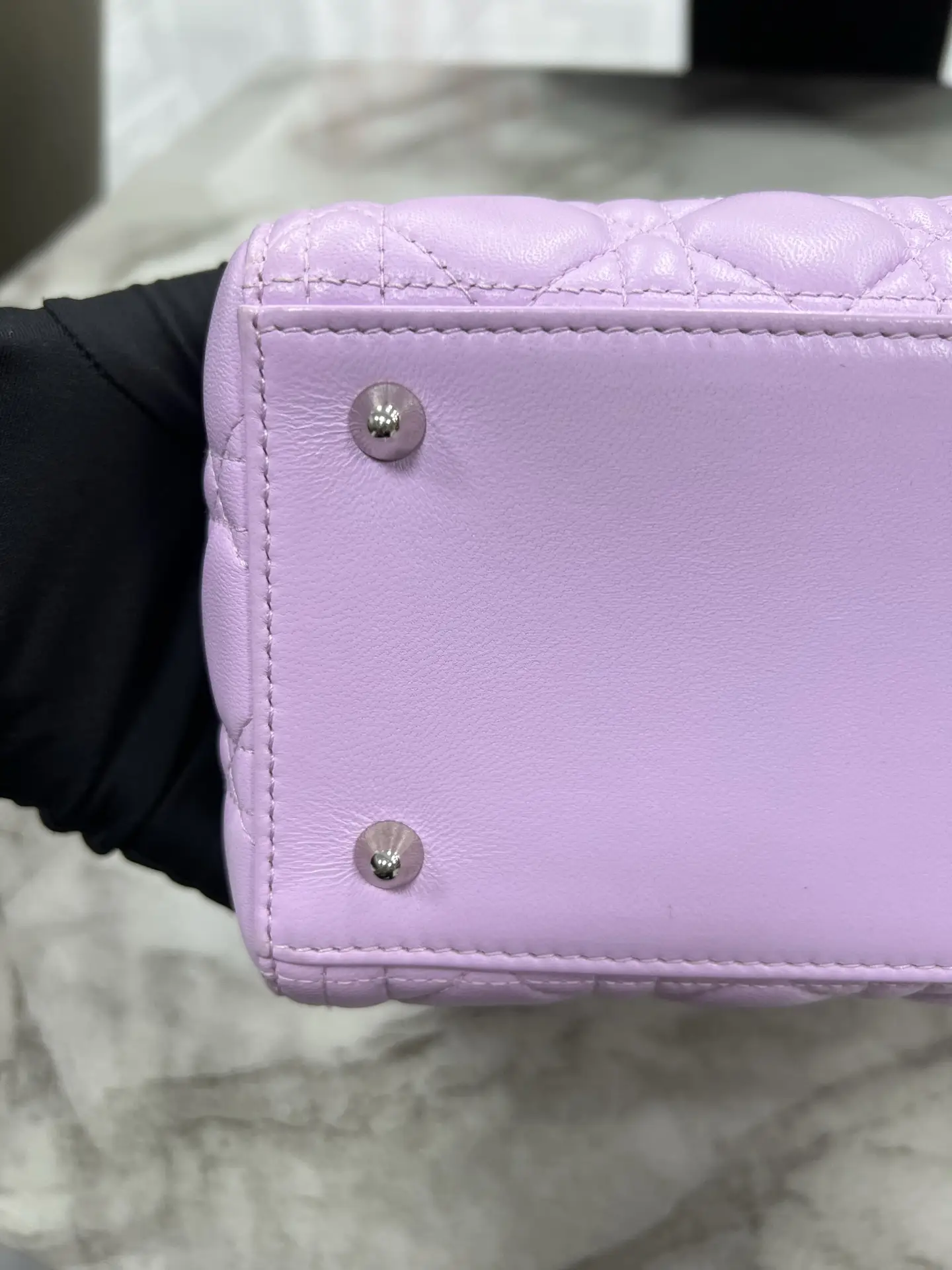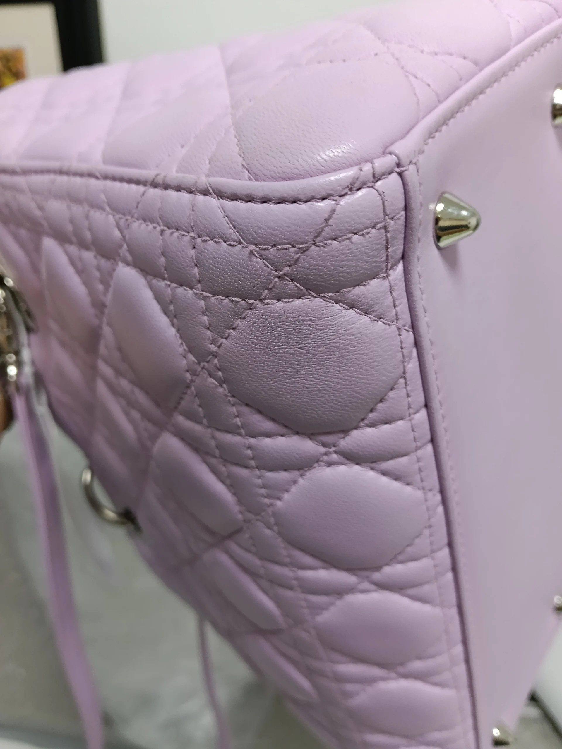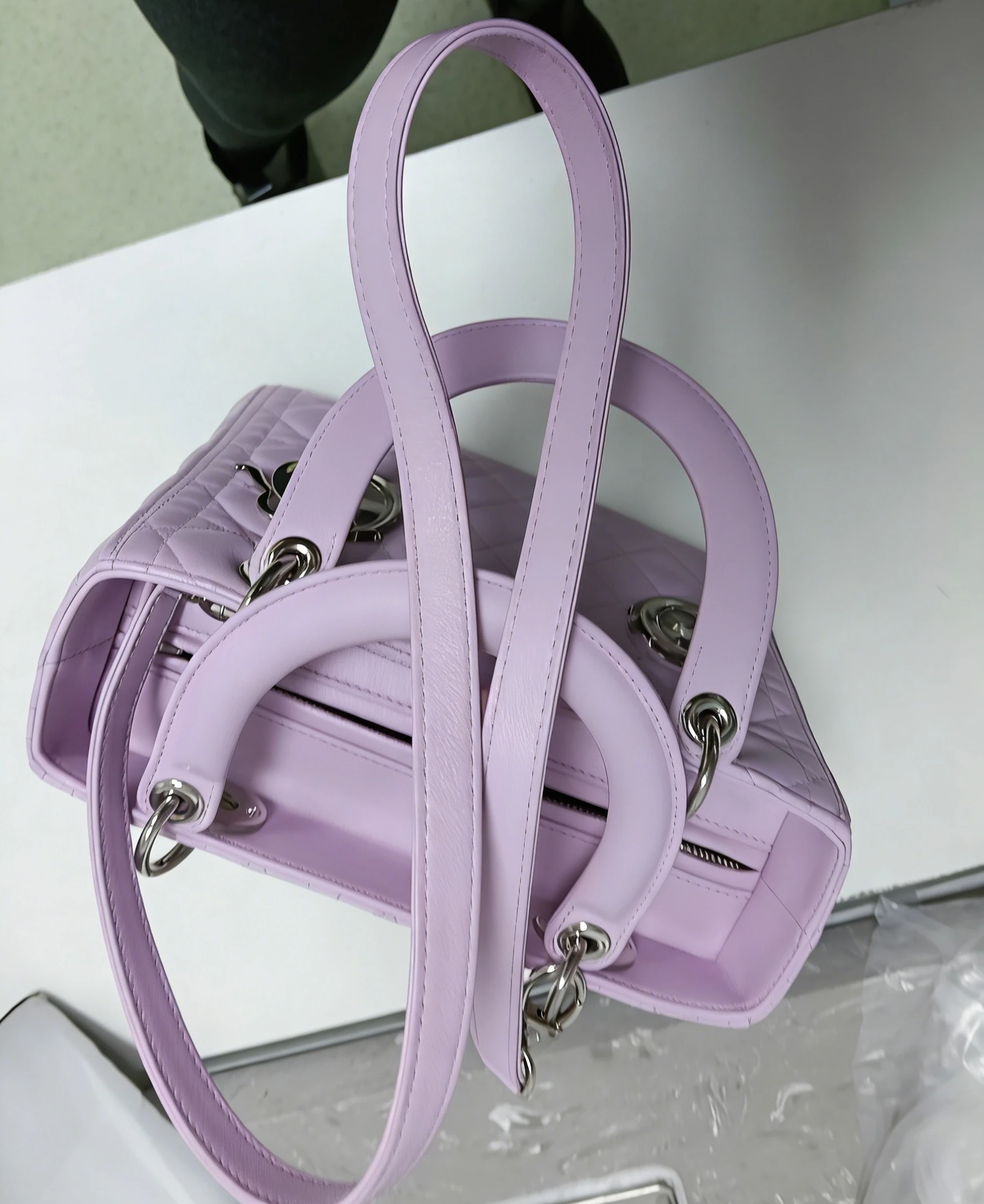 The DIOR Medium Lady Dior Bag in lilac lambskin is a soft and elegant statement, where the delicate pastel hue beautifully highlights the iconic Cannage quilting and polished ‘D.I.O.R.’ charms, offering a fresh and feminine interpretation of timeless luxury.
