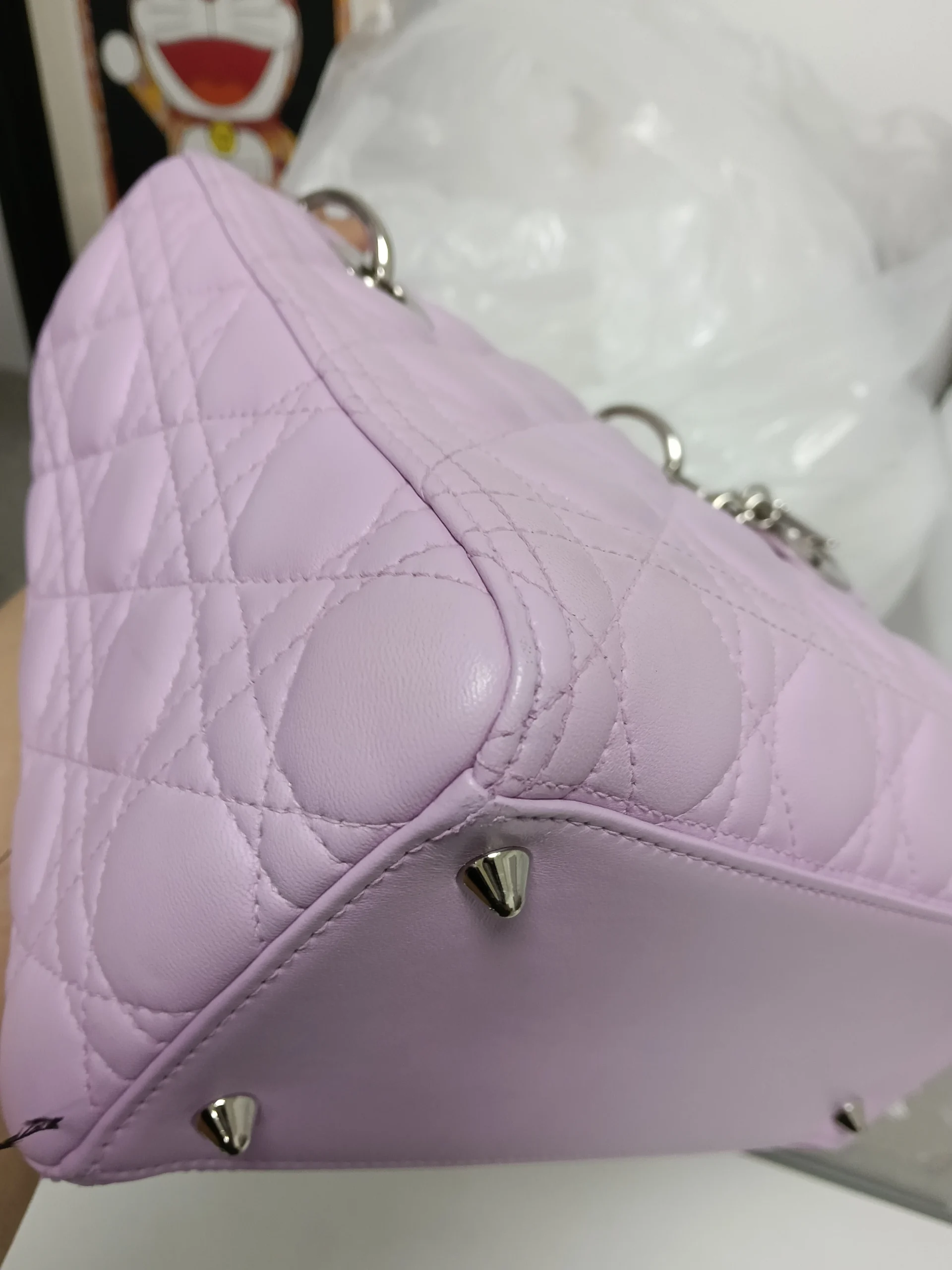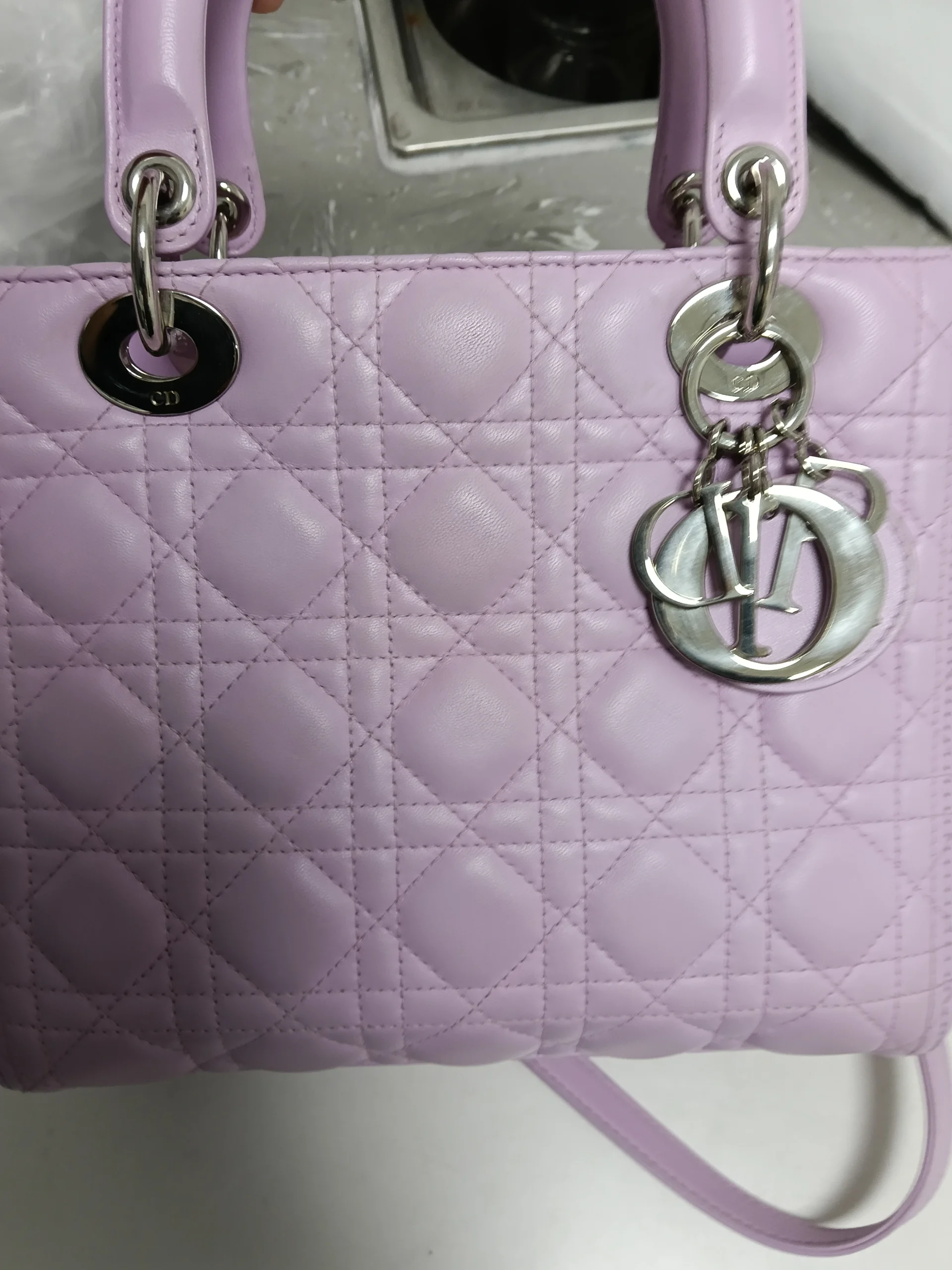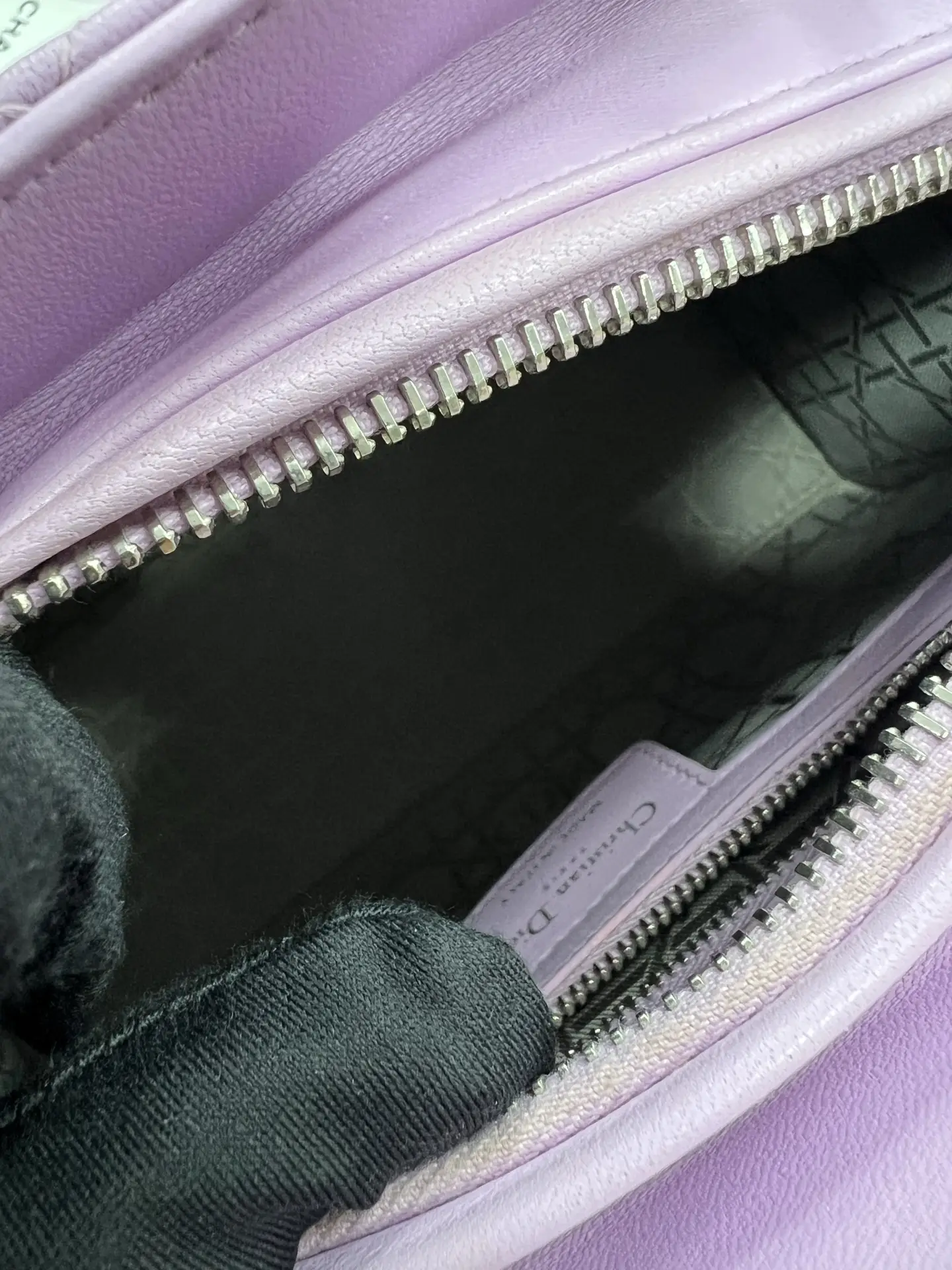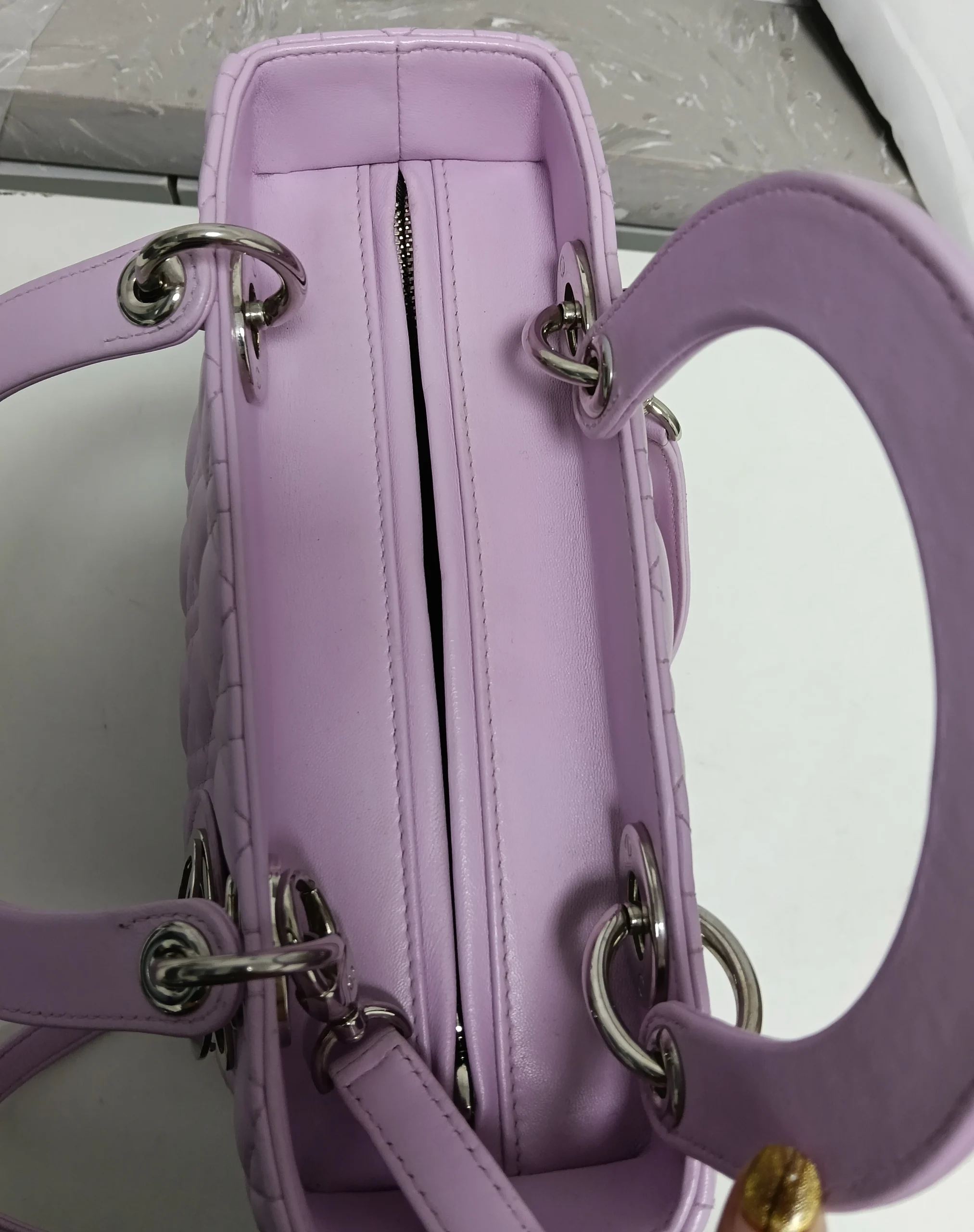 The DIOR Medium Lady Dior Bag in lilac lambskin is a soft and elegant statement, where the delicate pastel hue beautifully highlights the iconic Cannage quilting and polished ‘D.I.O.R.’ charms, offering a fresh and feminine interpretation of timeless luxury.