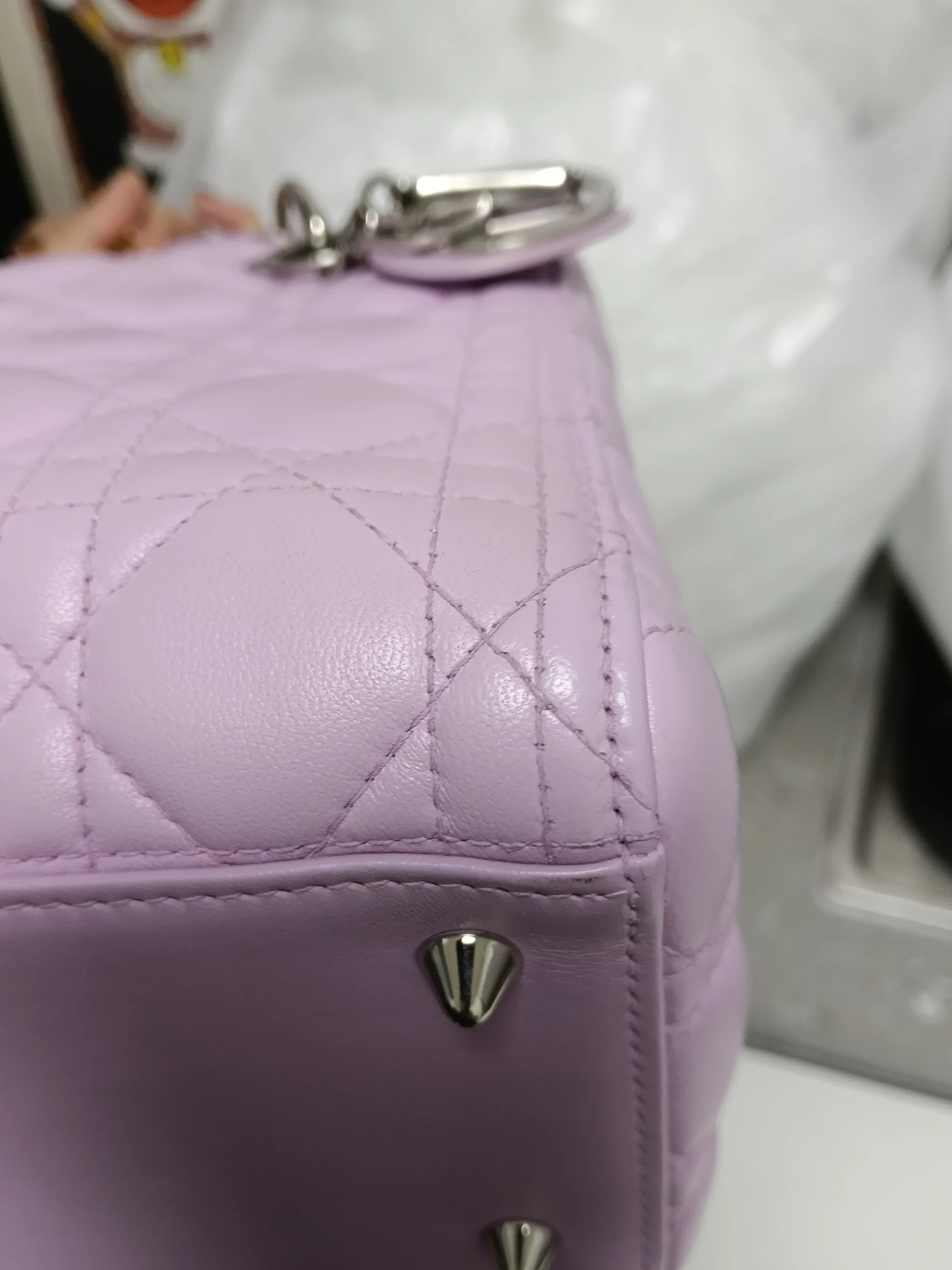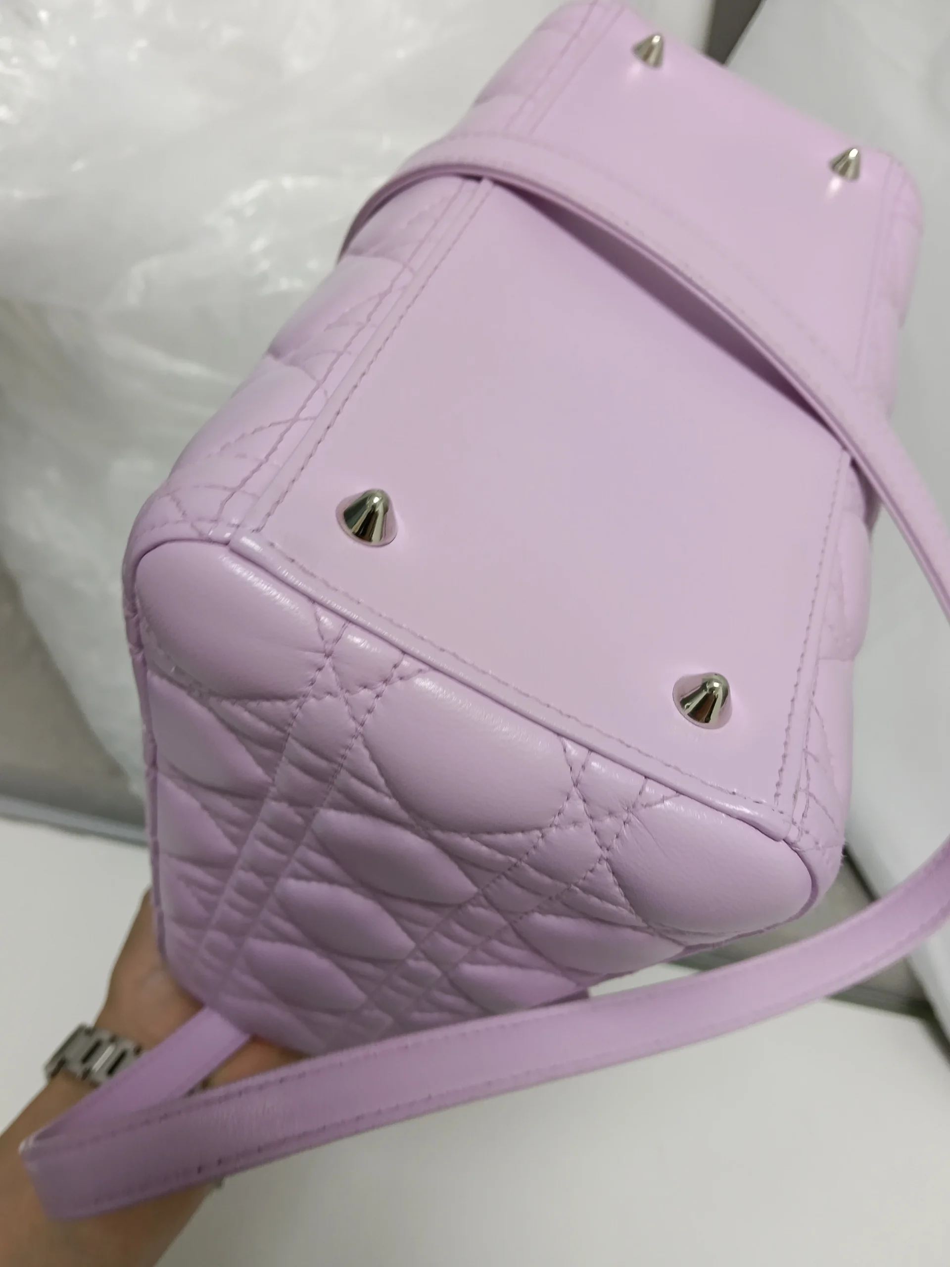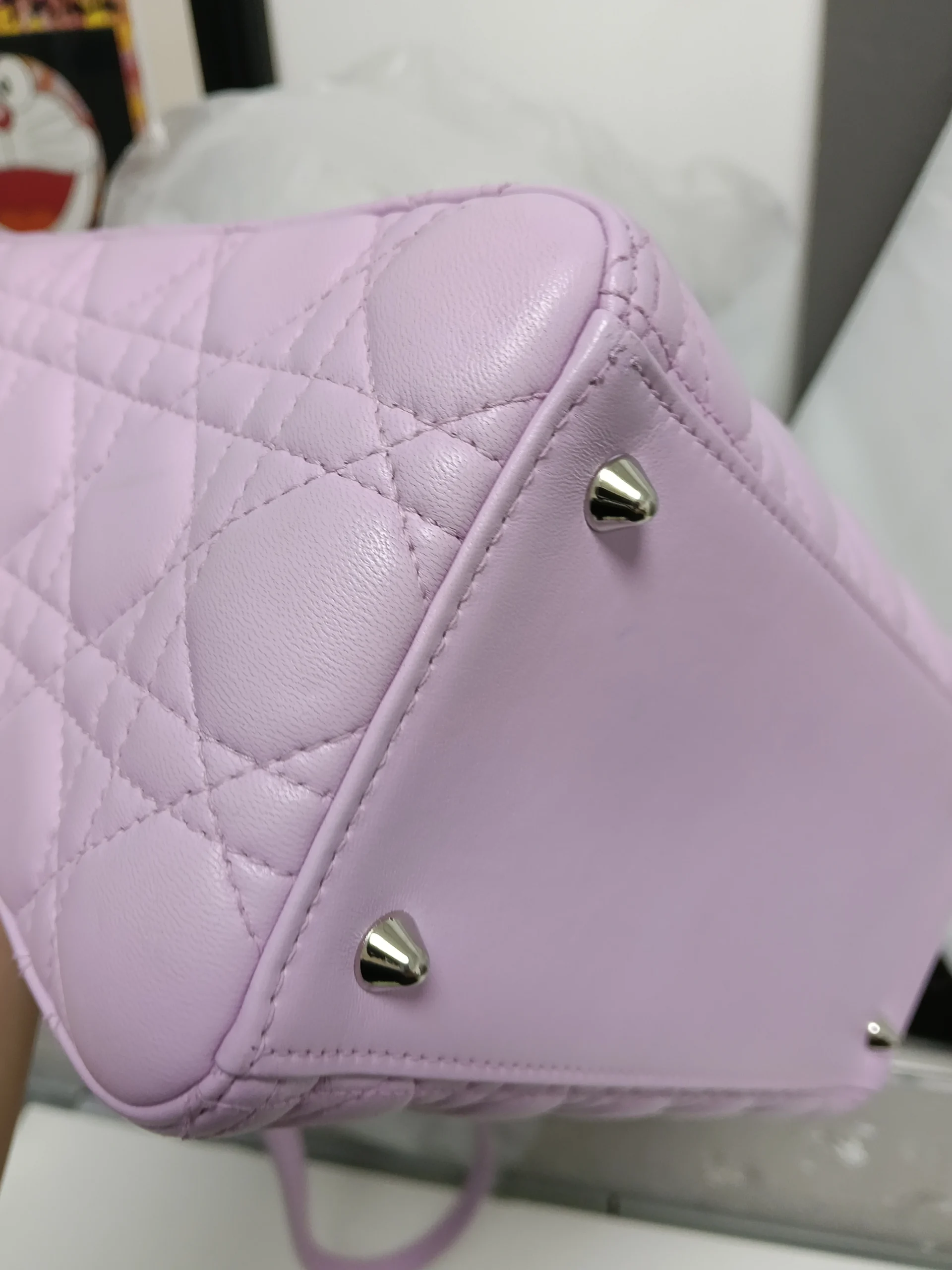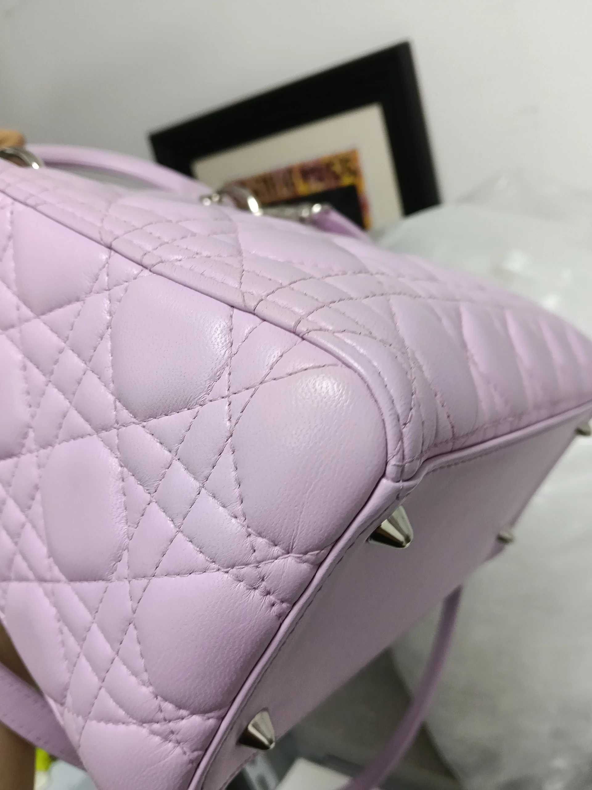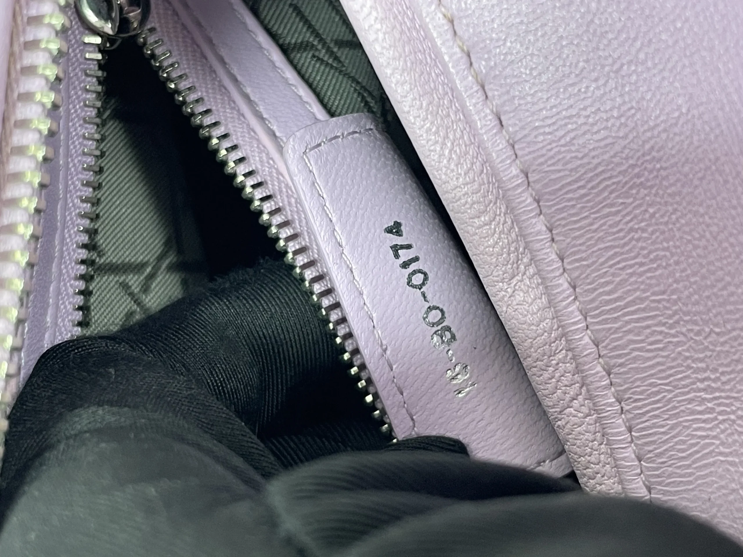 The DIOR Medium Lady Dior Bag in lilac lambskin is a soft and elegant statement, where the delicate pastel hue beautifully highlights the iconic Cannage quilting and polished ‘D.I.O.R.’ charms, offering a fresh and feminine interpretation of timeless luxury.