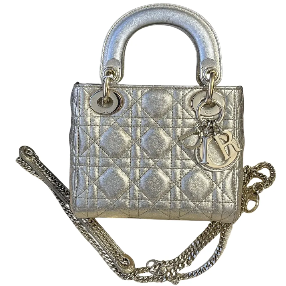 DIOR Lady Dior Mini Gold Calfskin Leather with Grystals Gold Hardware
