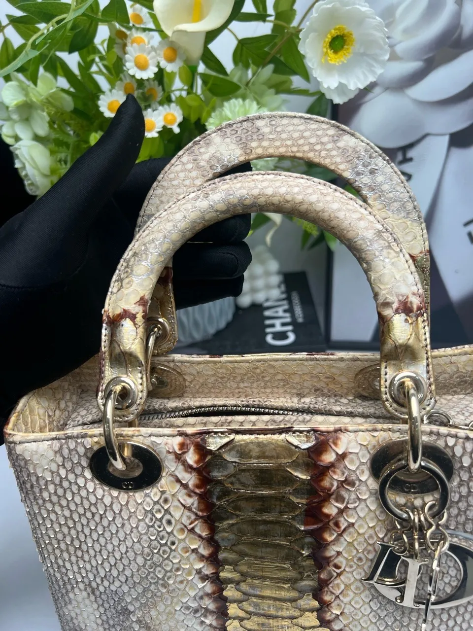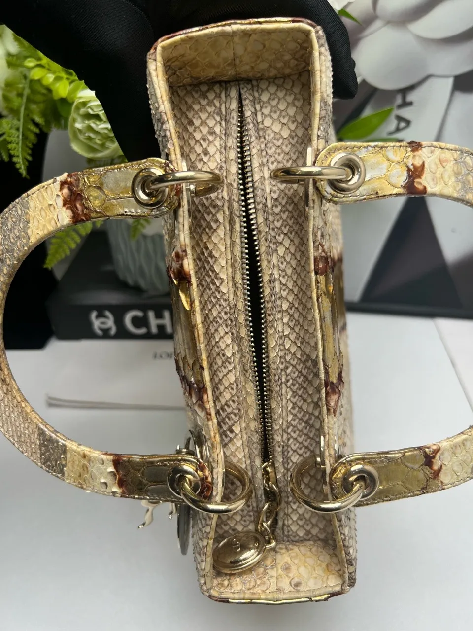 DIOR Signature Lady Dior Medium Python Leather Royal Collection Bag in special exotic leather is an exceptionally rare piece — the kind that even long-time collectors may only encounter once in their lives. Its unique texture and refined craftsmanship give it a quietly powerful elegance, making it a true statement bag without ever feeling loud. Because of its limited production and distinctive material, it’s almost impossible to see someone carrying the same one. A timeless, standout Lady Dior for those who appreciate rarity, sophistication, and pieces that truly set them apart.