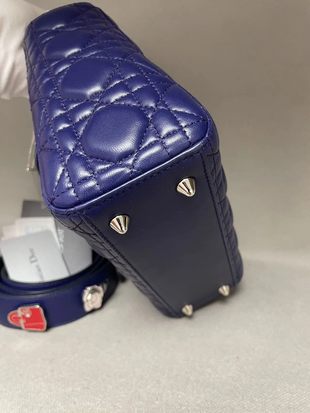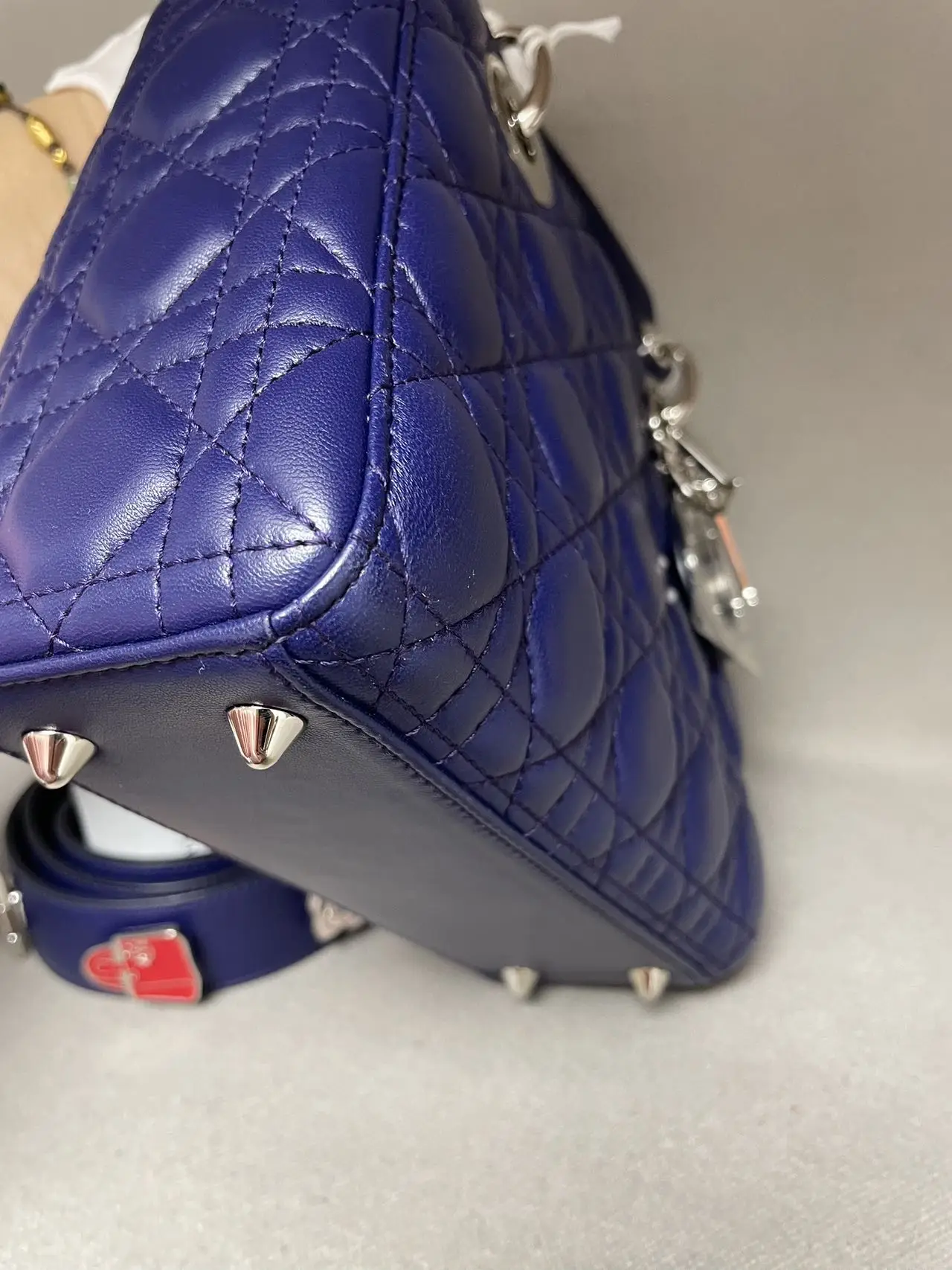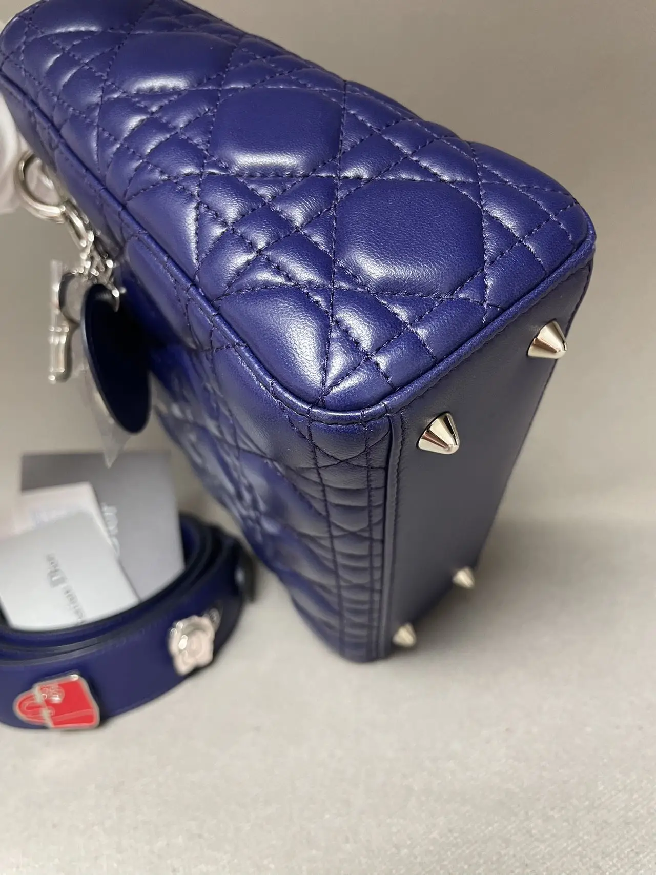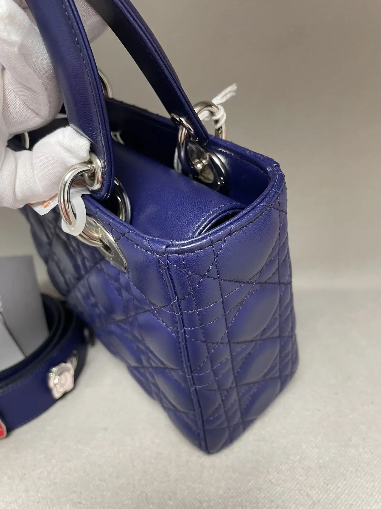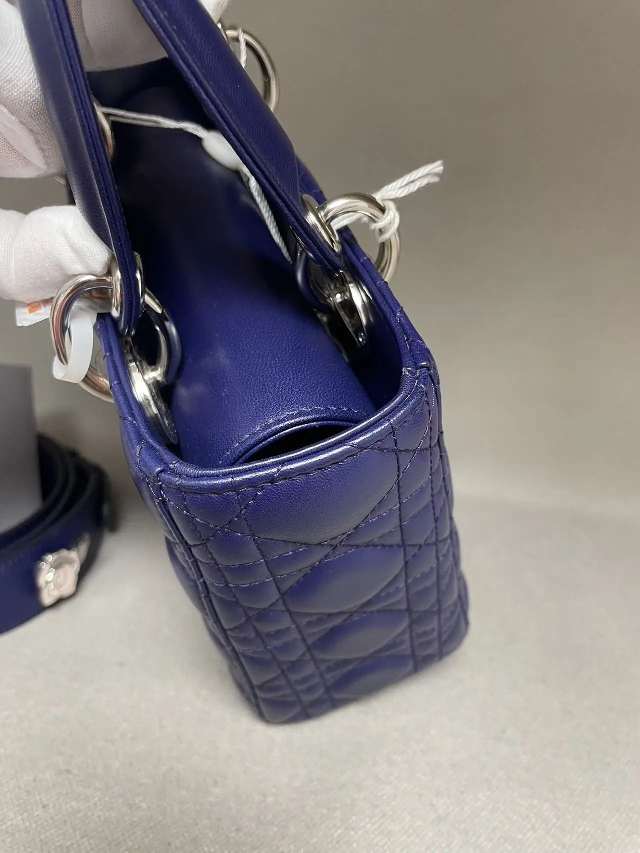 The DIOR Small Lady Dior Bag in purple lambskin is a vibrant statement of contemporary elegance, where the rich jewel tone accentuates the iconic Cannage quilting and polished ‘D.I.O.R.’ charms, offering a perfect blend of timeless design and modern allure.