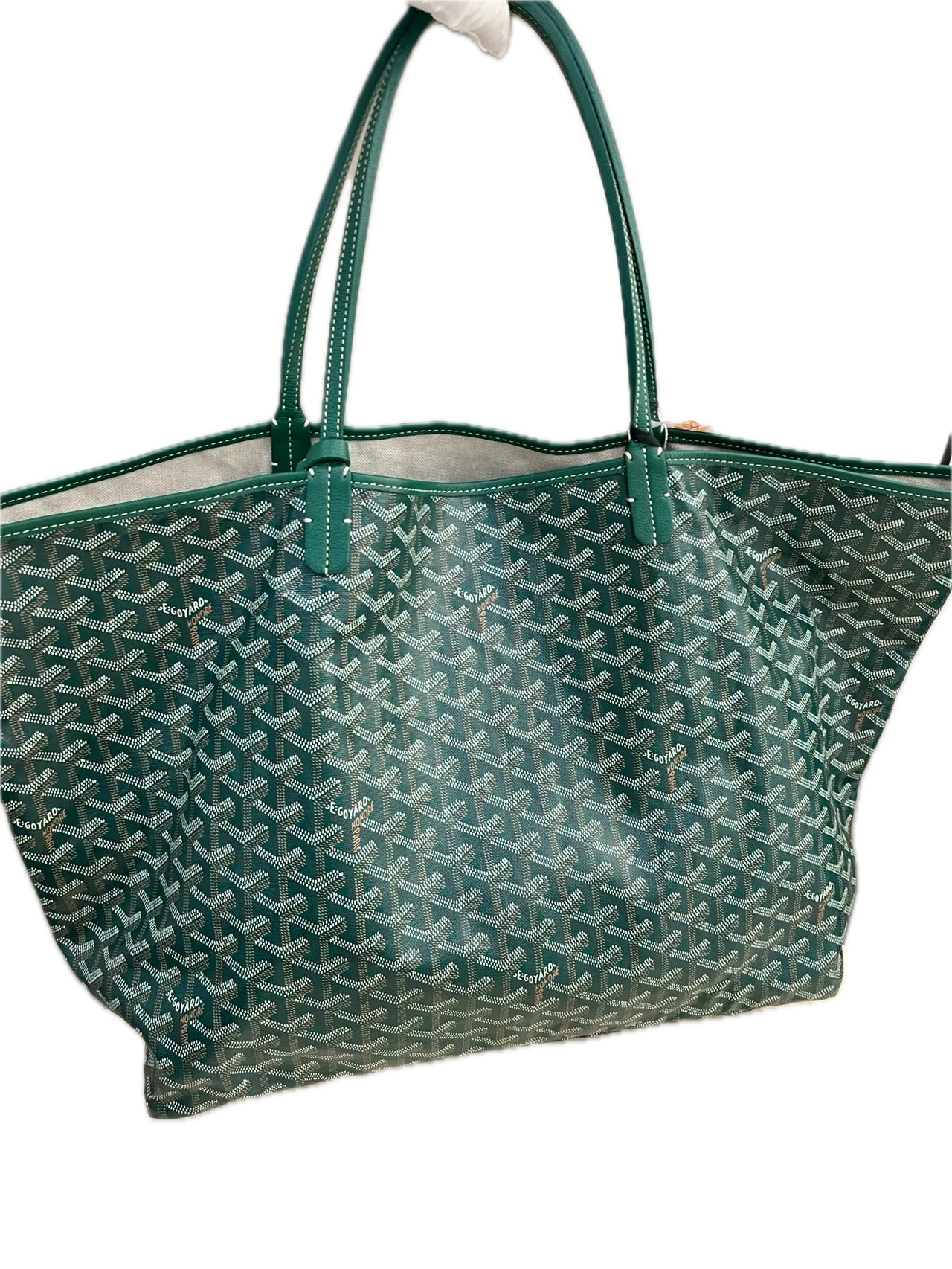 GOYARD Saint Louis GM tote crafted in iconic green Goyardine canvas with leather handles. Known for its lightweight and reversible design, this timeless tote is perfect for everyday use and travel.