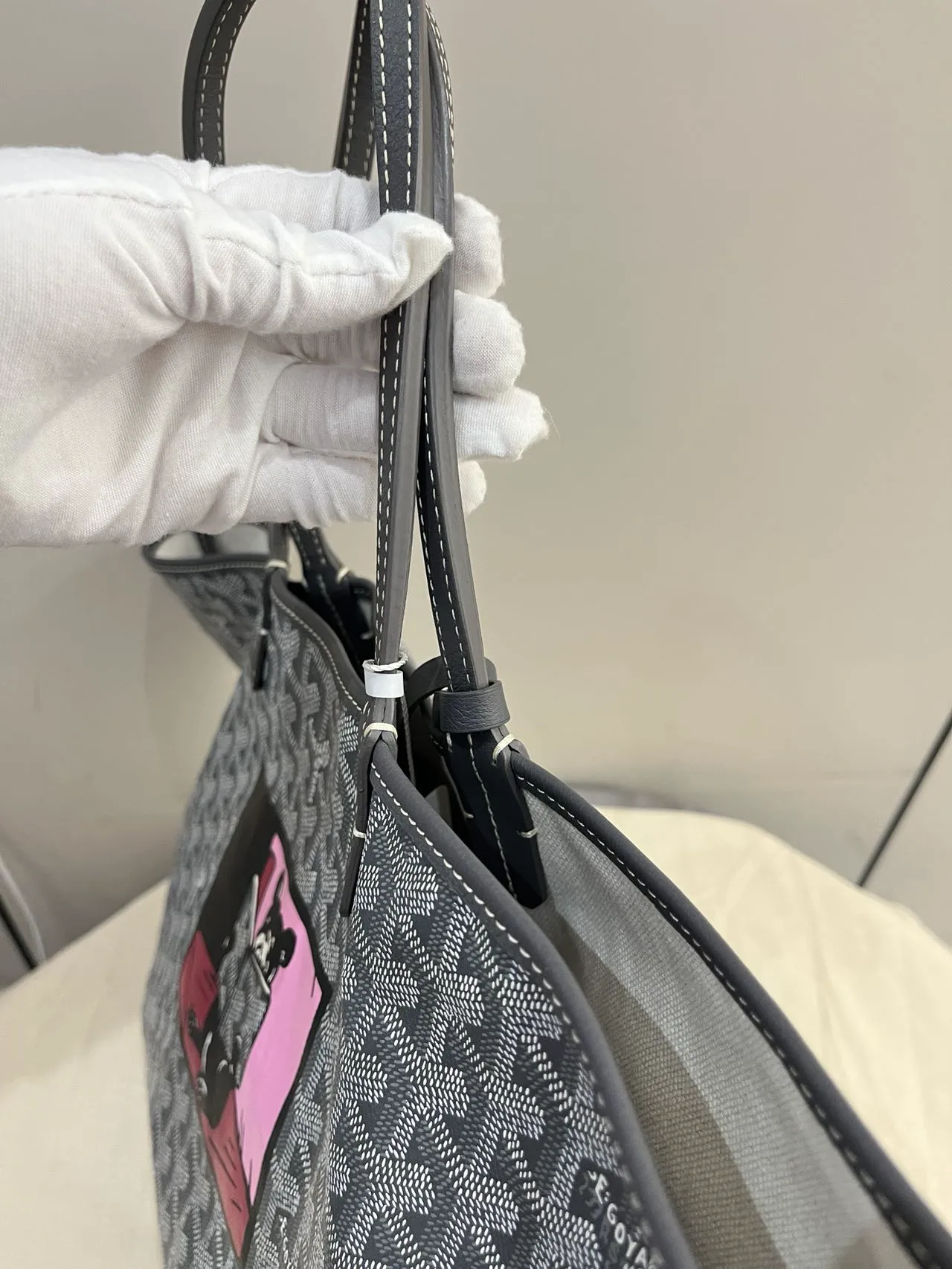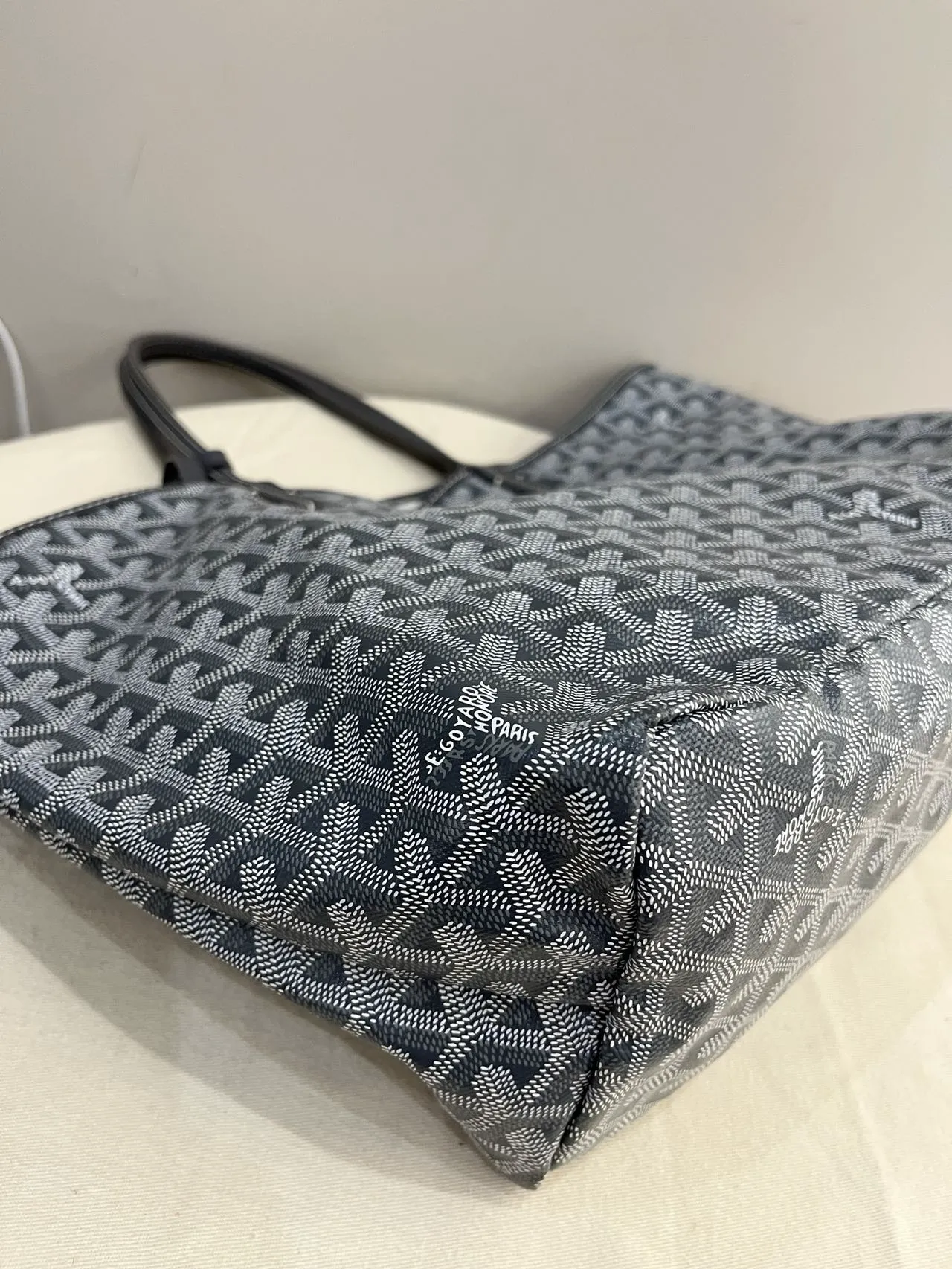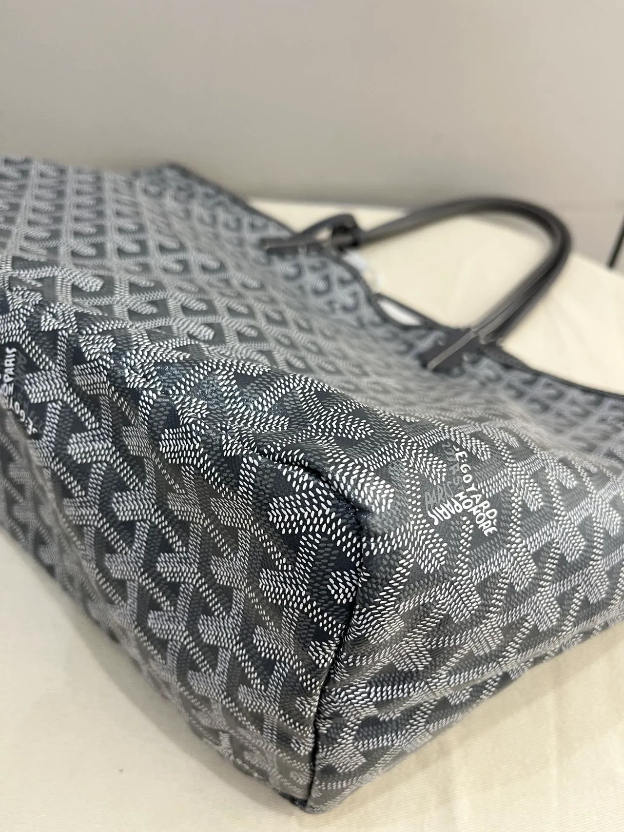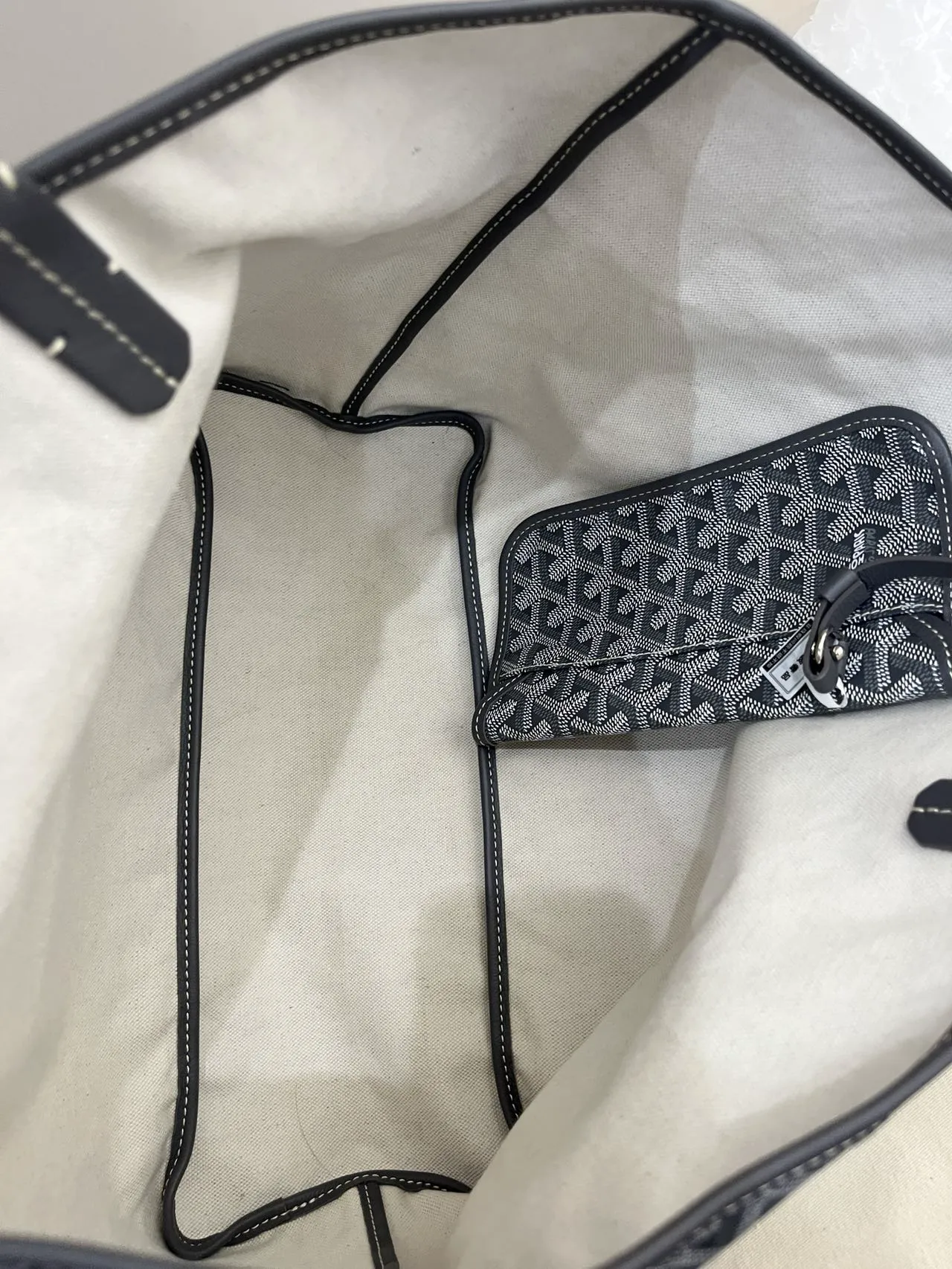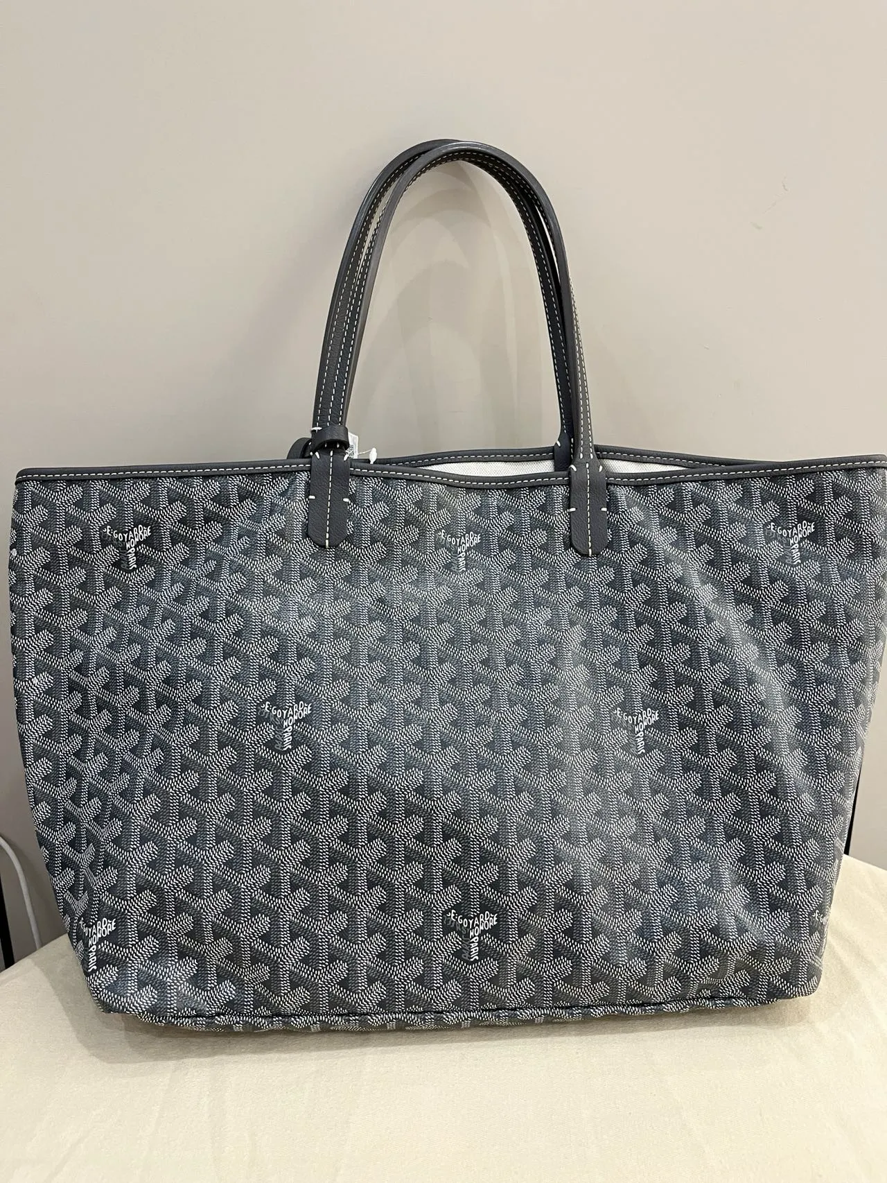 The GOYARD Saint Louis GM bag is made from Goyardine Canvas and is unlined. It is extremely light and completely reversible. Wear it showing the Goyardine fabric or inside out, showing the linen and cotton mix. Its two leather handles with their progressive thickness mean it can be worn in different ways. It has a removable inside pocket attached to one of the handles for quick and easy access.