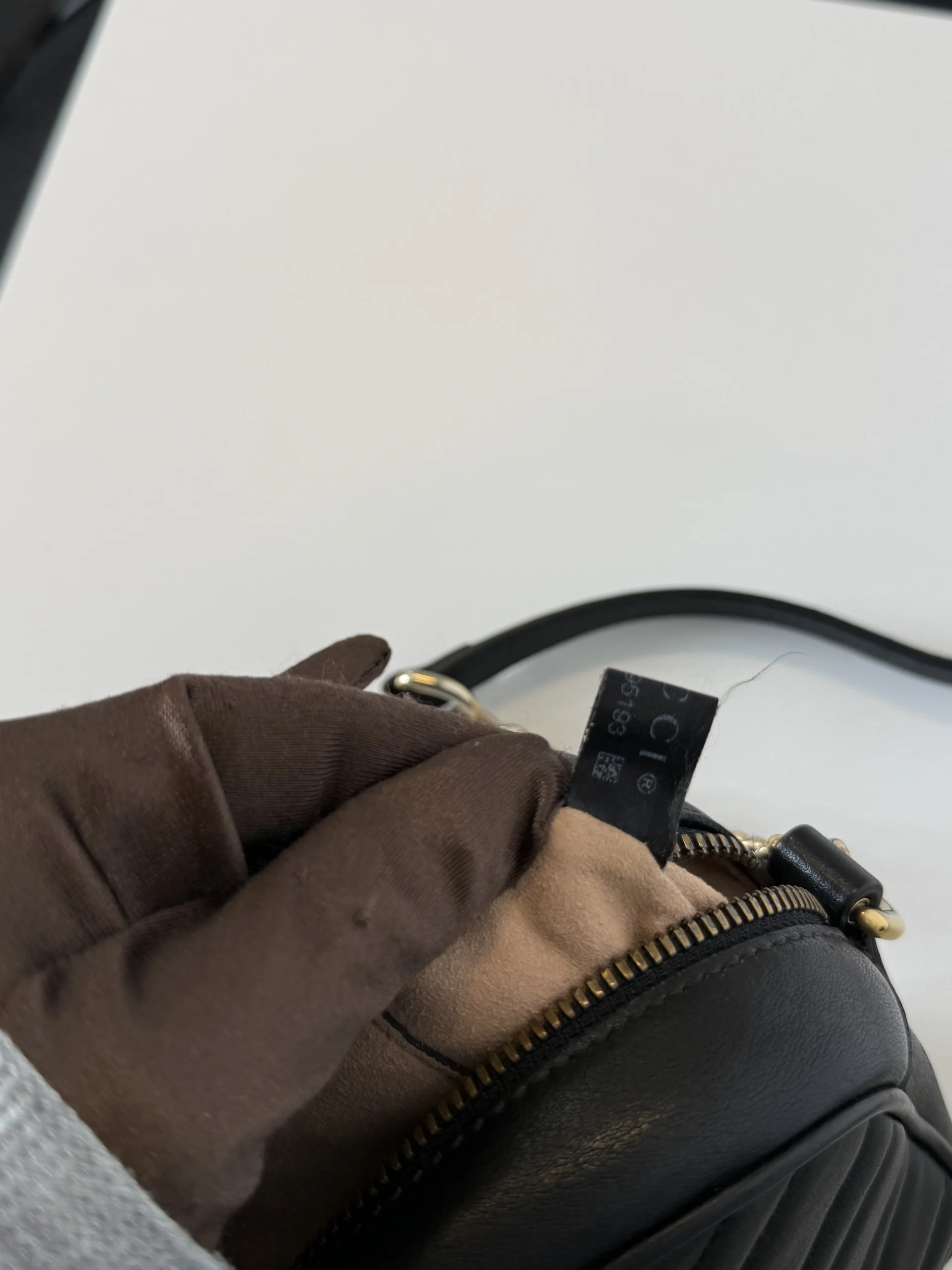 • Black matelassé chevron nappa leather