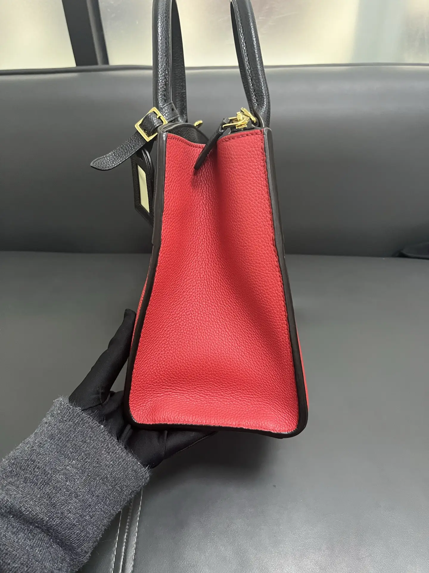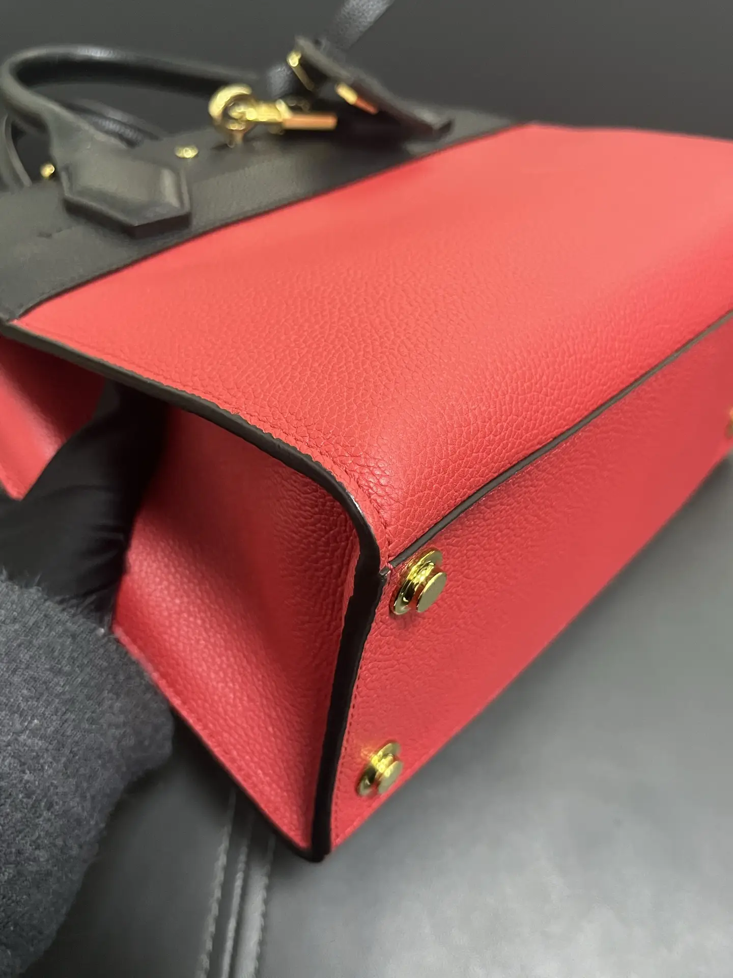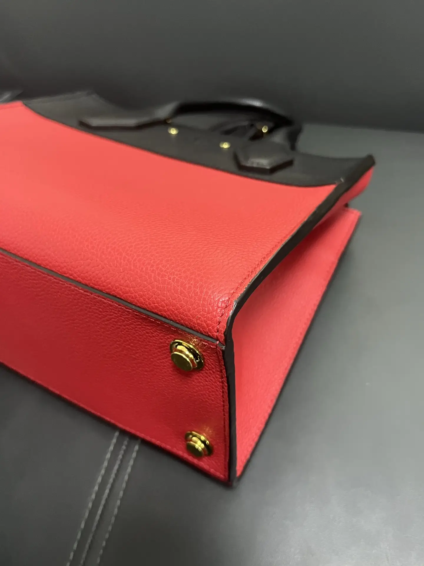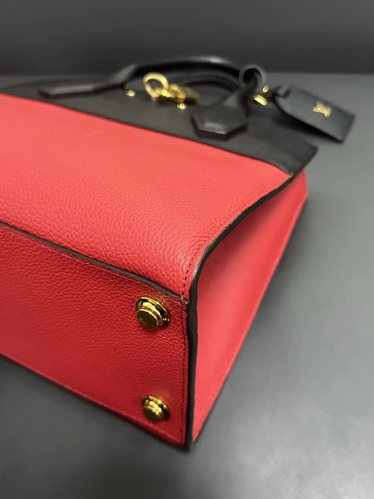 The LOUIS VUITTON City Steamer PM Bag in red and black leather is a statement of structured modern luxury, combining the brand’s signature trunk-inspired silhouette and padlock closure with a bold two-tone color palette for a powerful and sophisticated urban accessory.