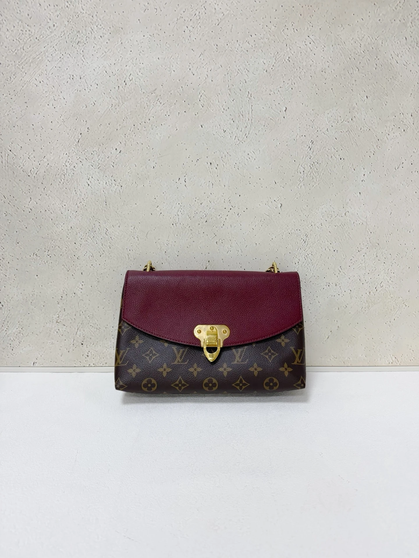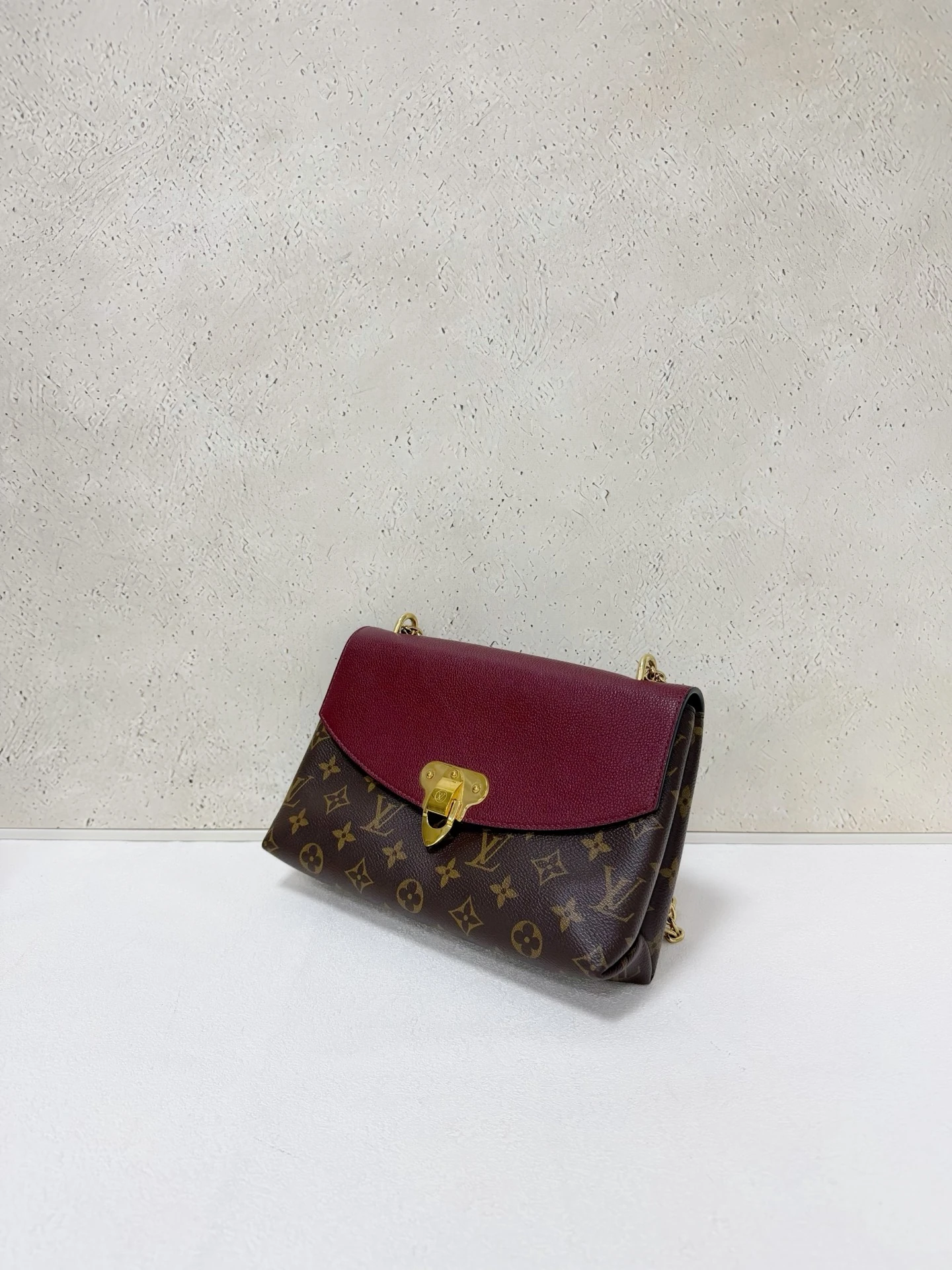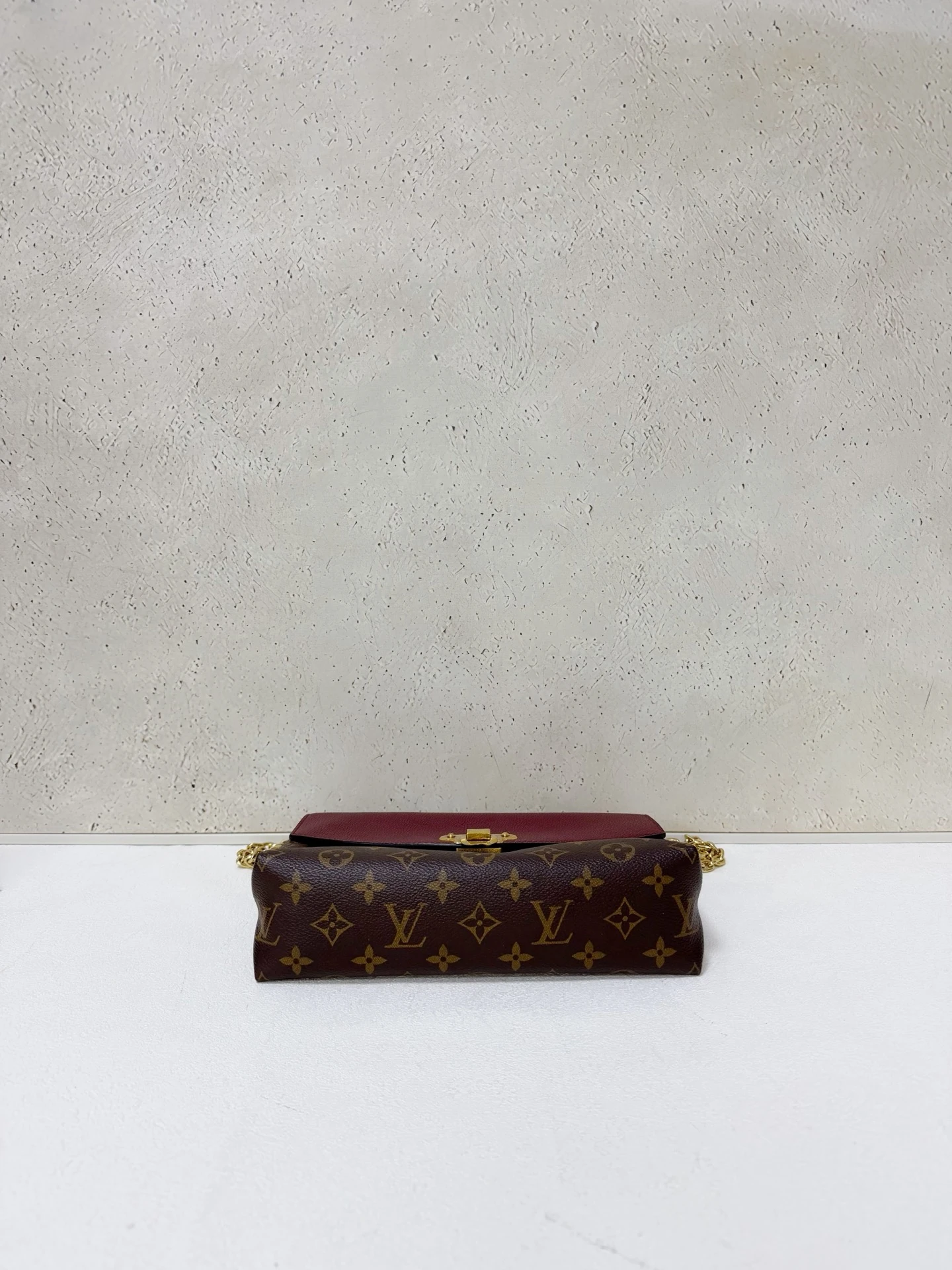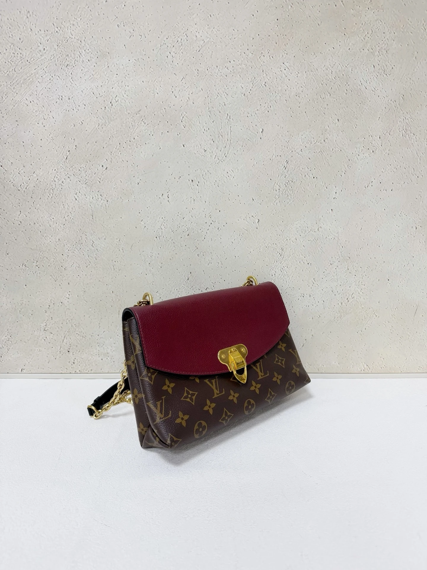 LOUIS VUITTON Saint Placide Monogram Canvas Burgundy Leather is a chic envelope-style bag combining iconic monogram canvas with rich burgundy leather. Elegant yet practical, perfect for everyday and evening use.