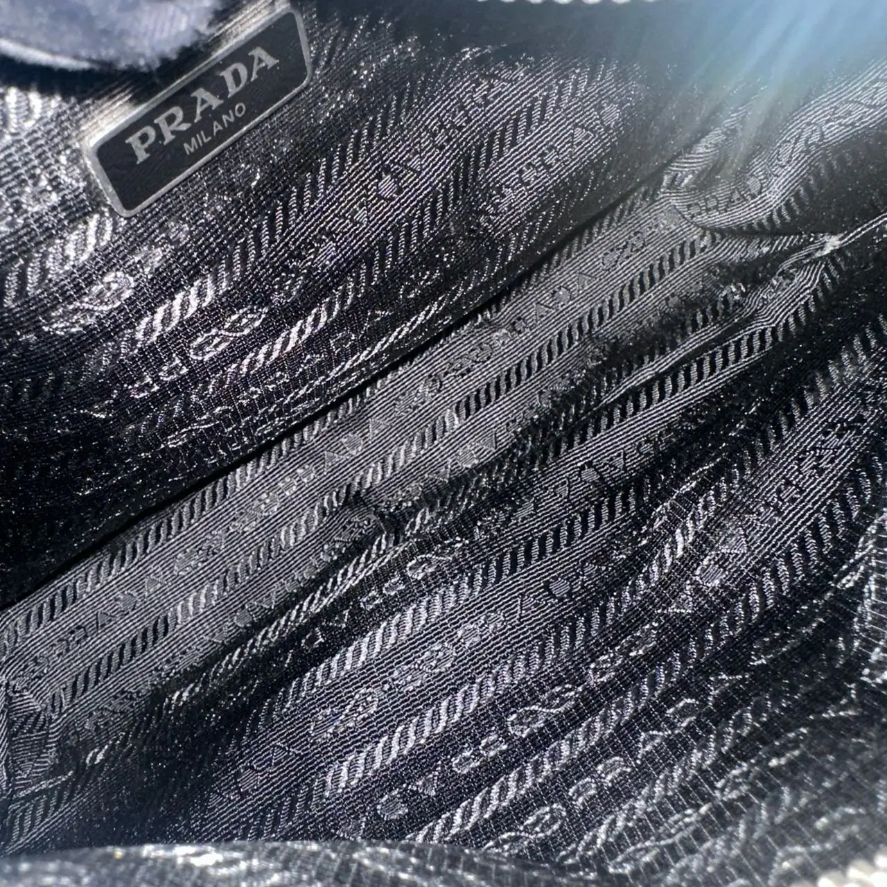 The PRADA Re-Edition 2005 Mini Bag in Re-Nylon and Saffiano leather is a modern icon of utilitarian chic, faithfully recreating the archival silhouette with durable nylon, structured leather trim, and the signature triangular logo plaque for a timeless yet contemporary statement.